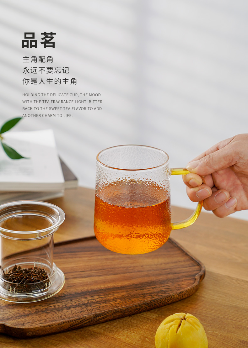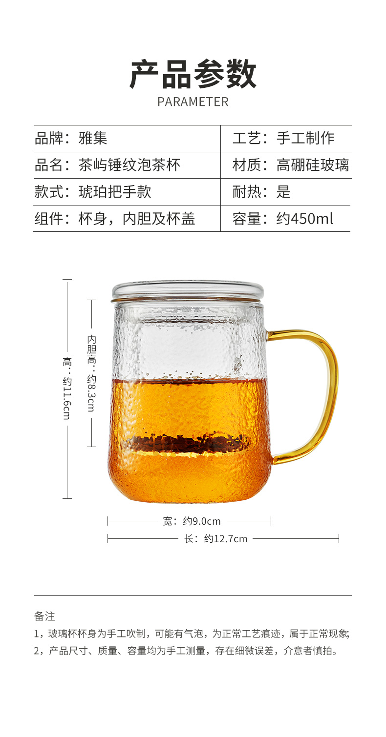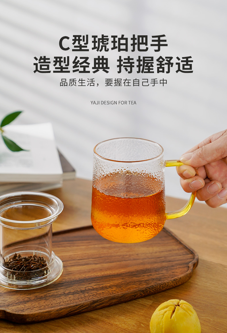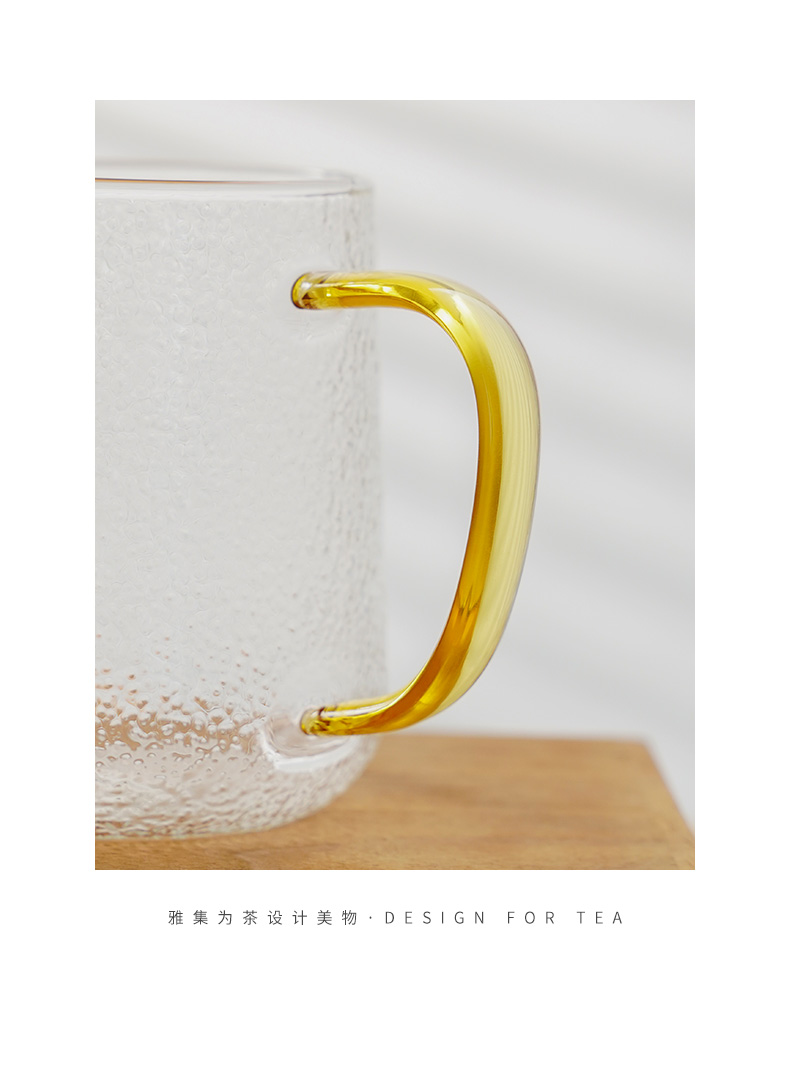 雅集玻璃杯锤纹茶屿悠觉杯450ml(琥珀把)送杯刷