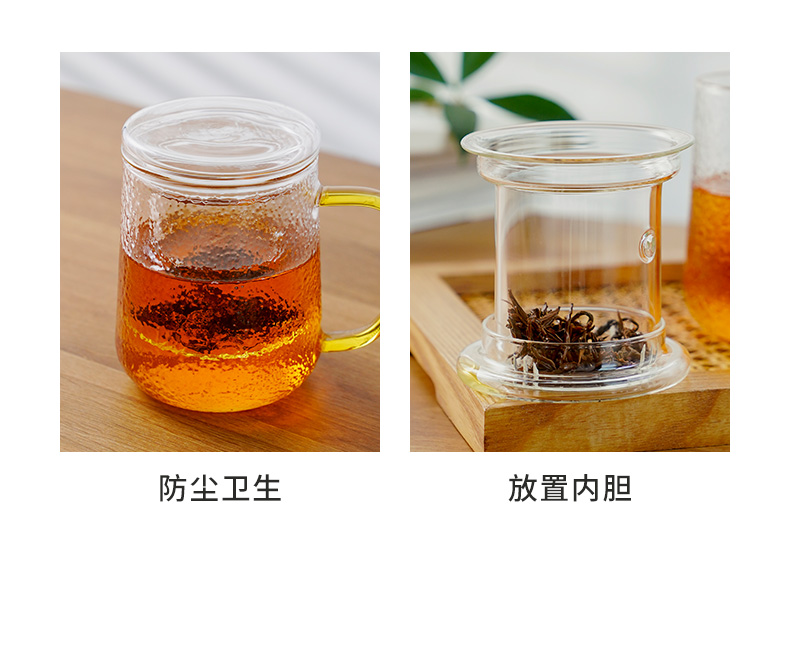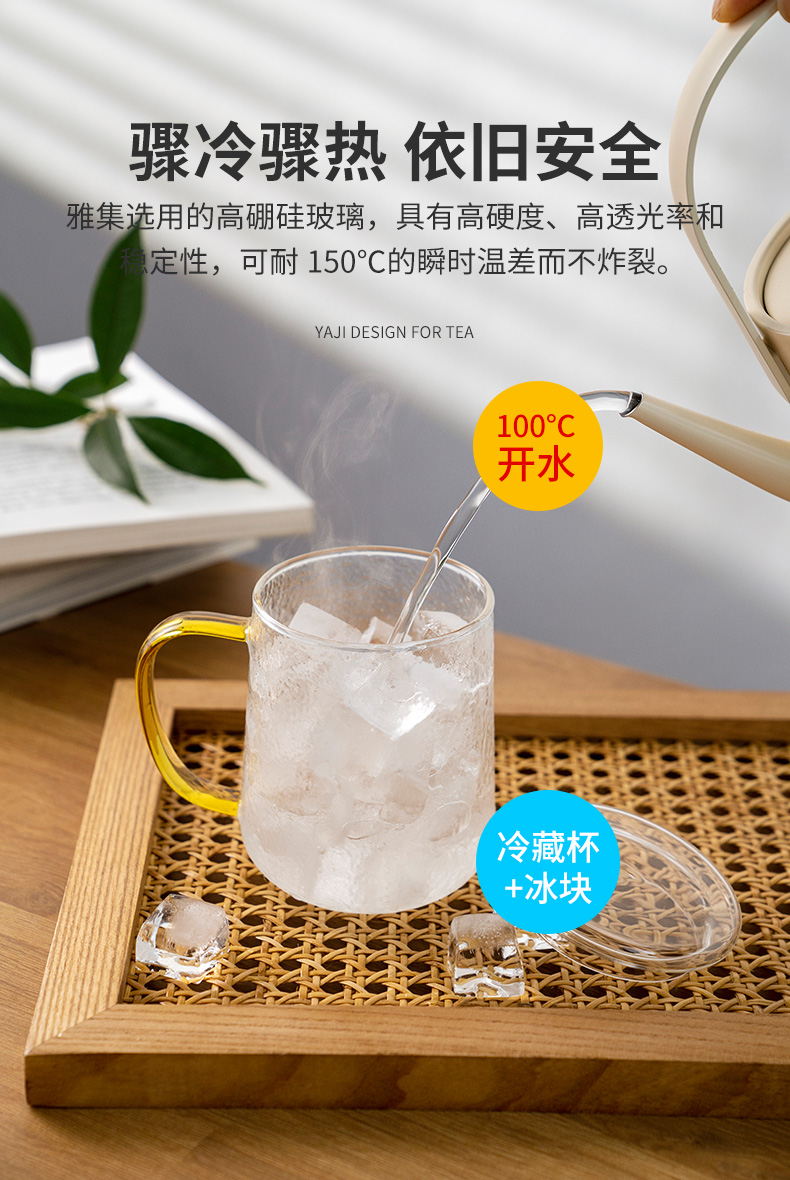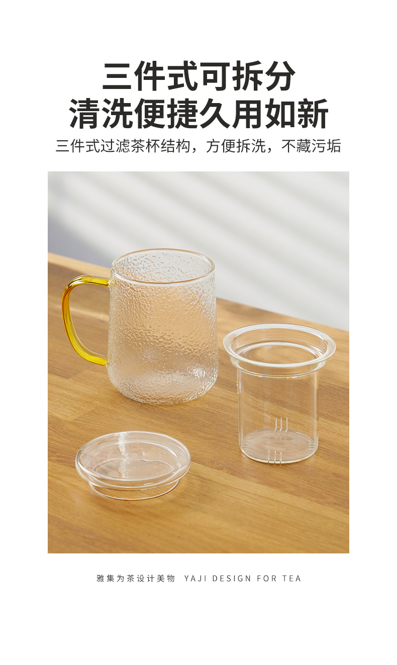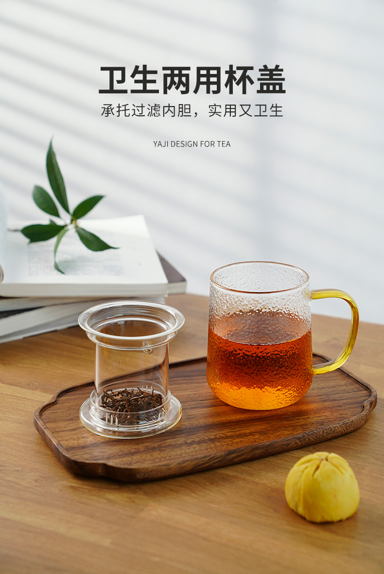 雅集玻璃杯锤纹茶屿悠觉杯450ml(琥珀把)送杯刷