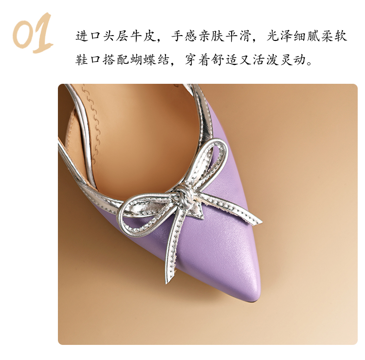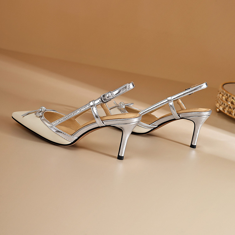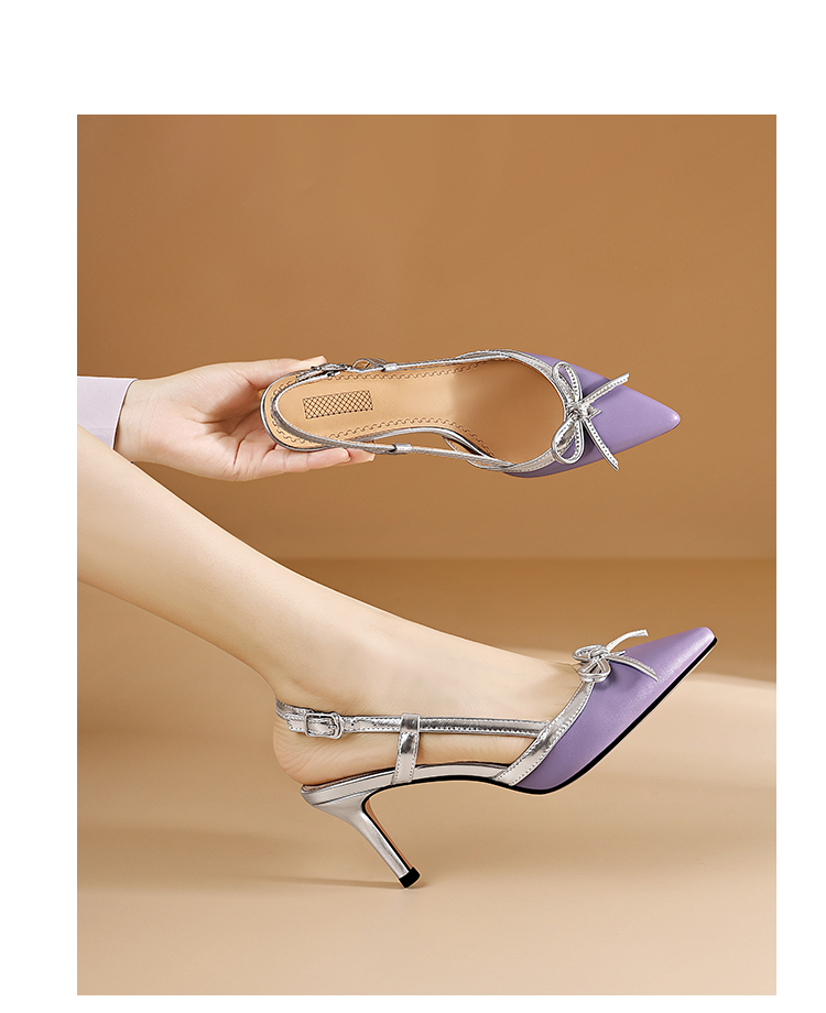 【预售5天】法式小众设计感蝴蝶结包头后空凉鞋女夏新款细跟尖头高跟鞋JZX&L09-33