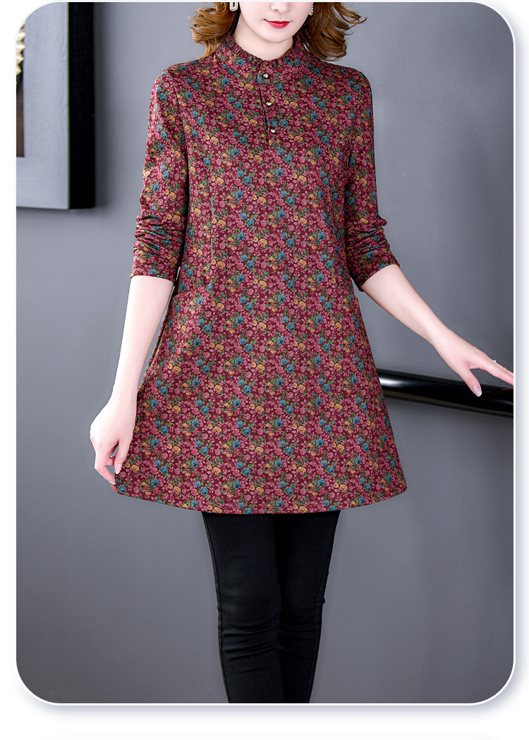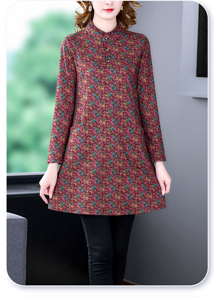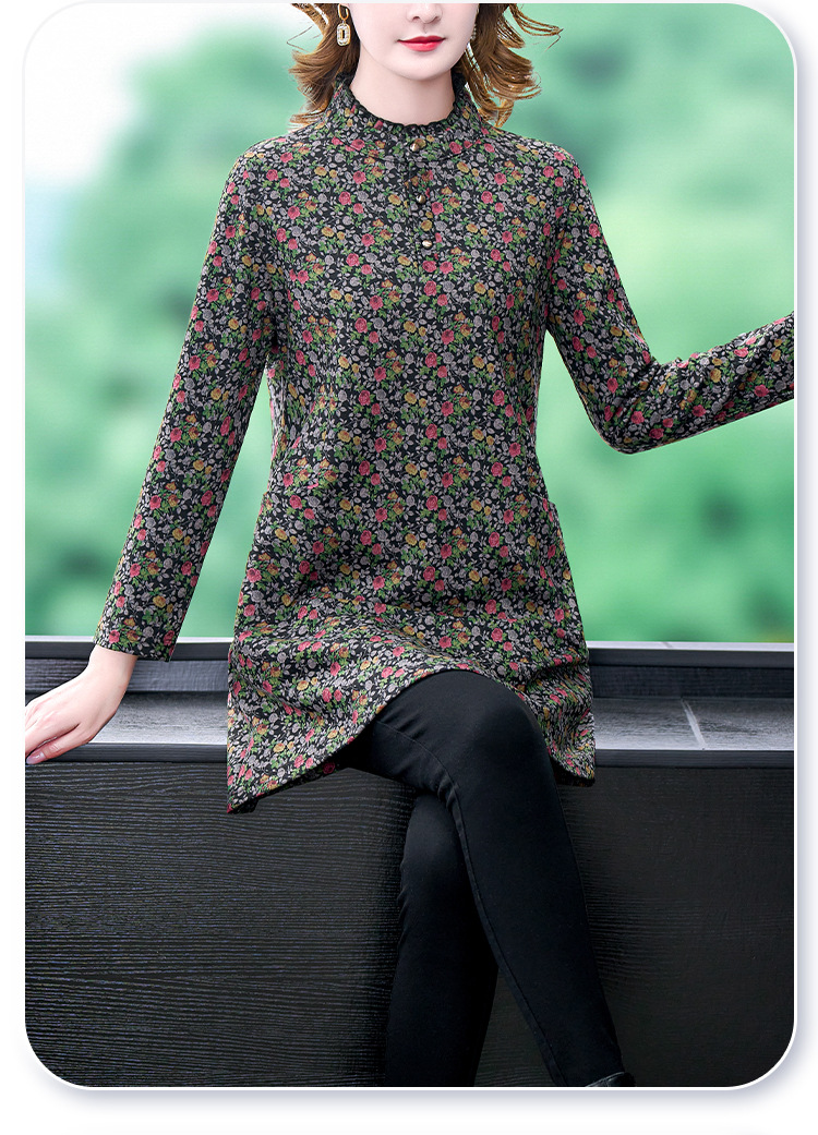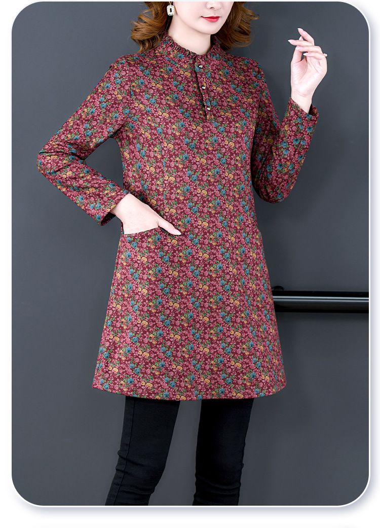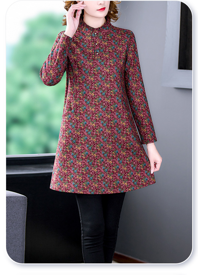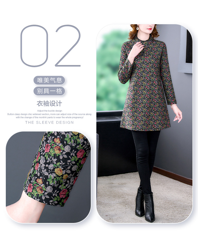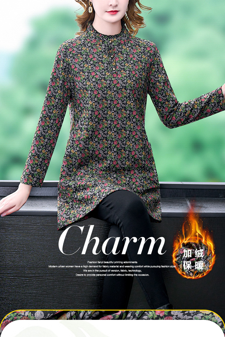 秋冬新款,中长款立领印花加厚德绒连衣裙KQL-818