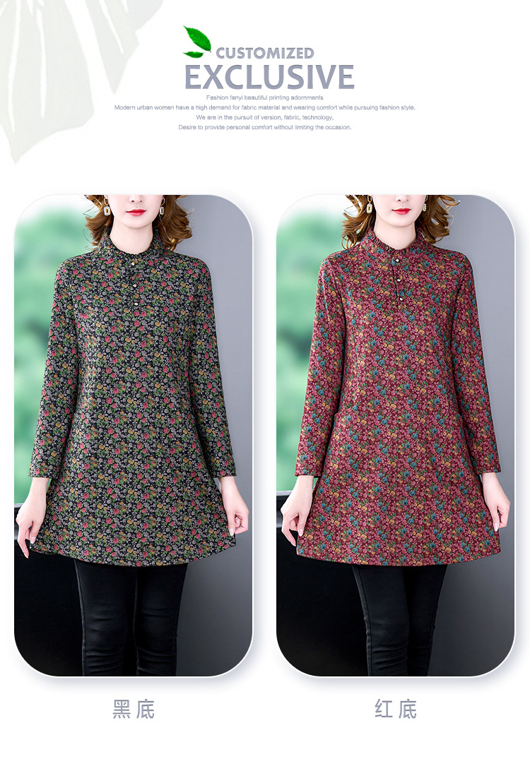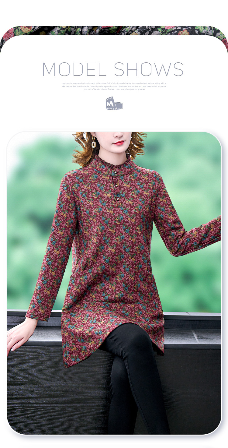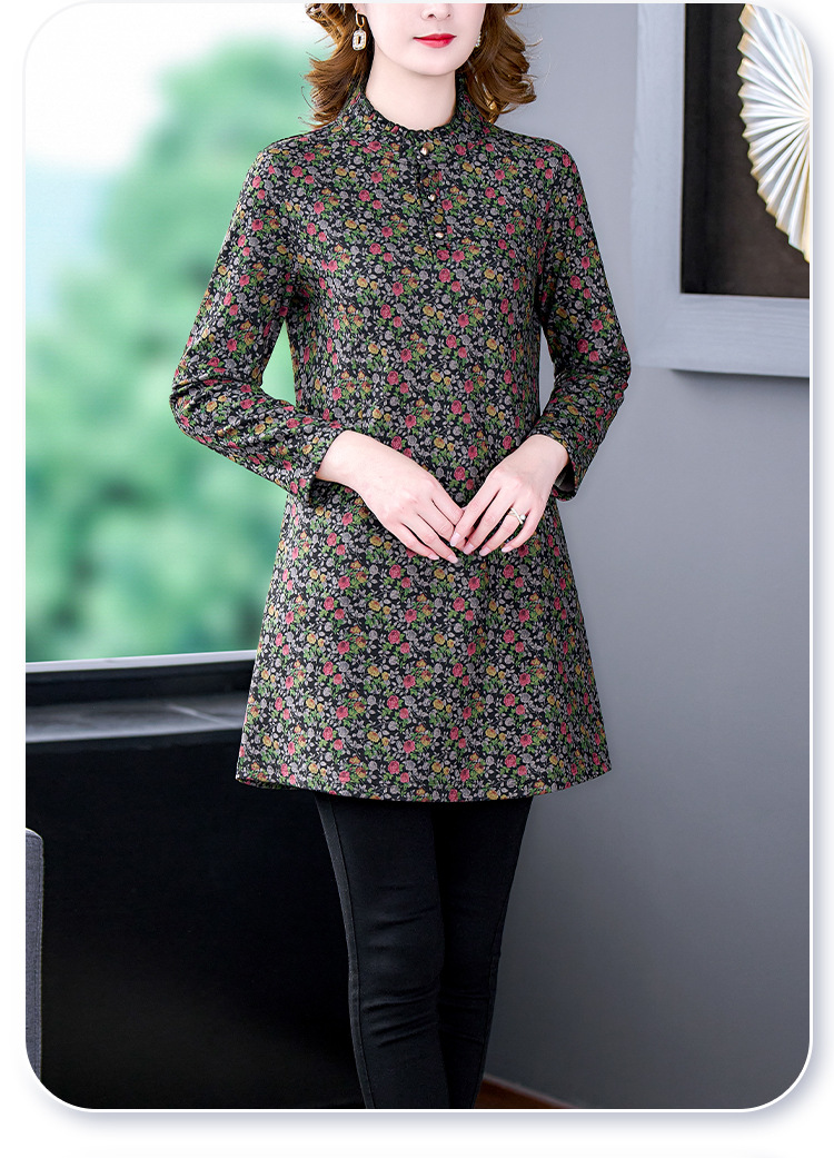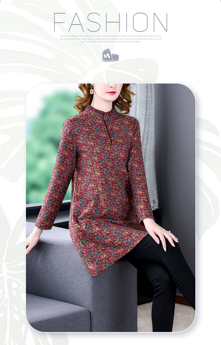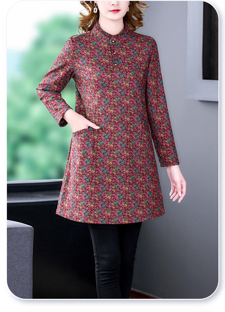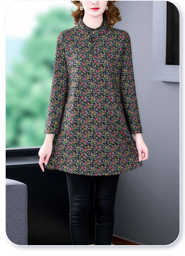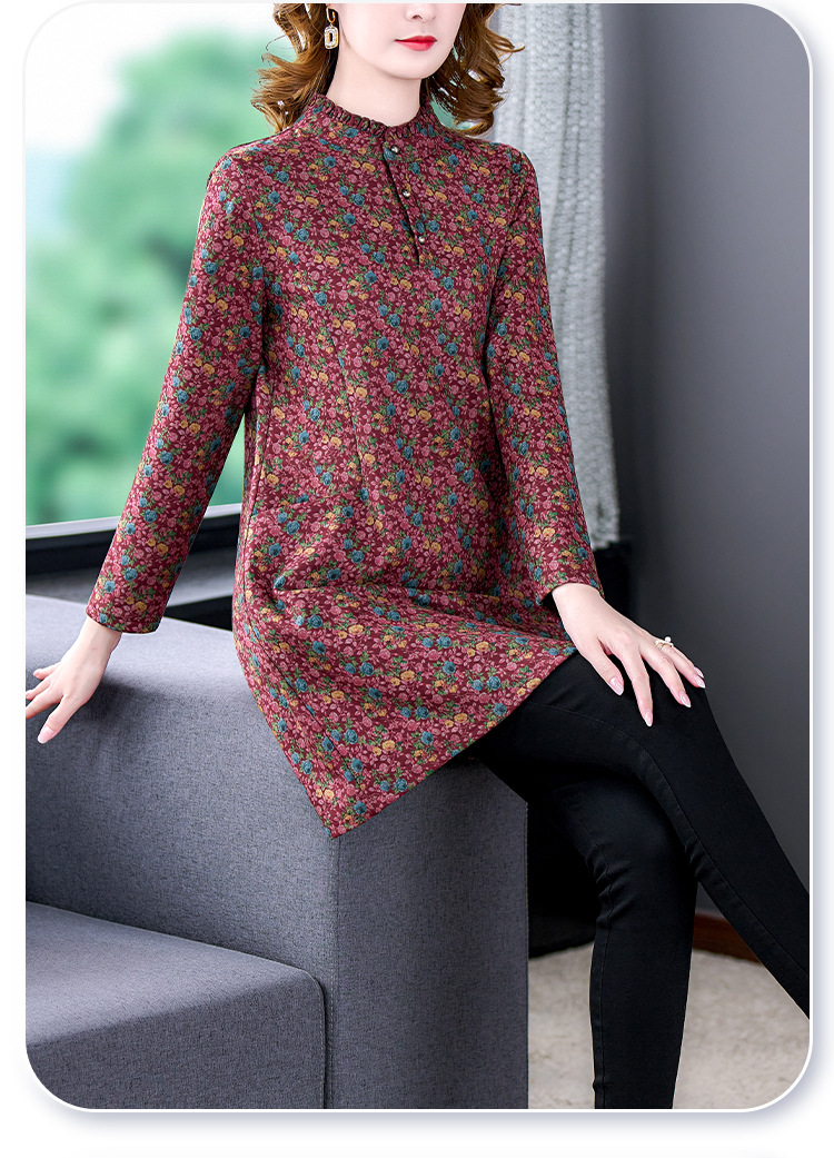 秋冬新款,中长款立领印花加厚德绒连衣裙KQL-818