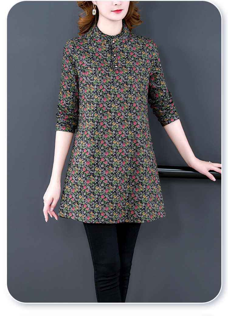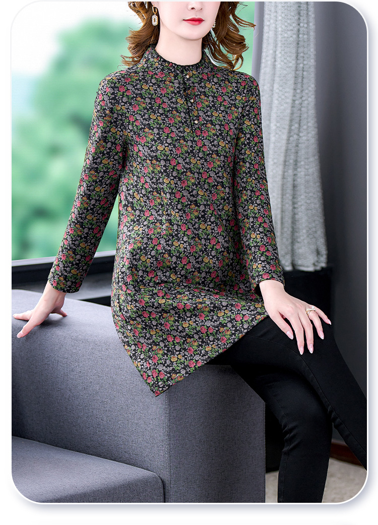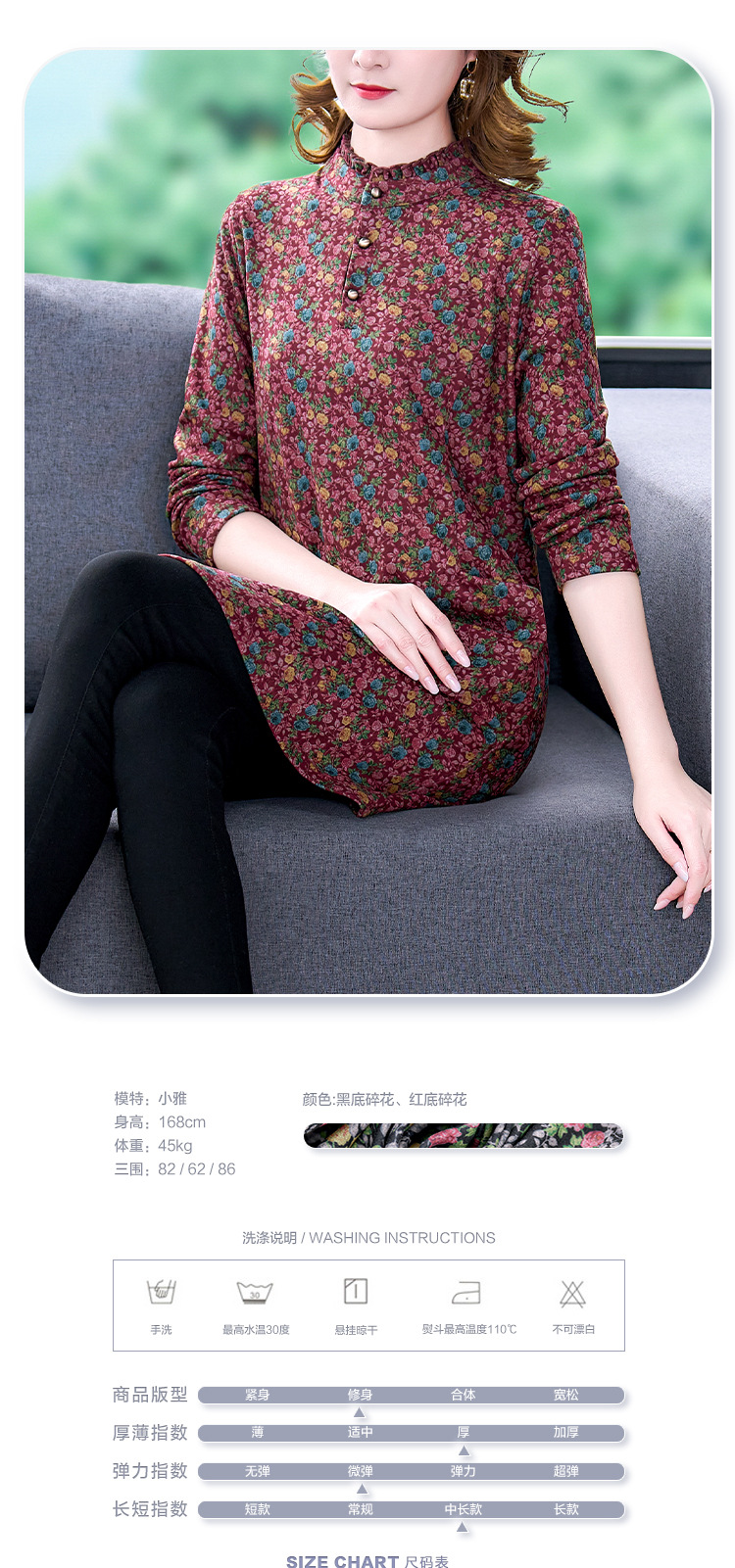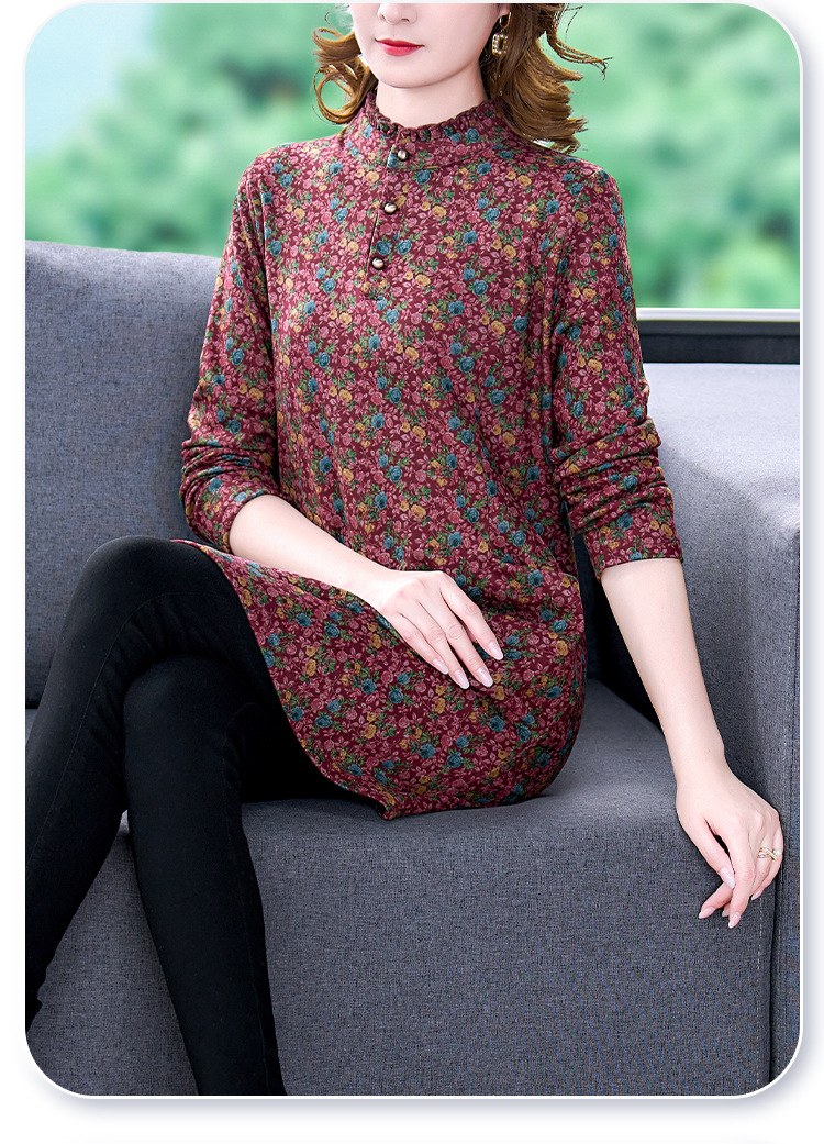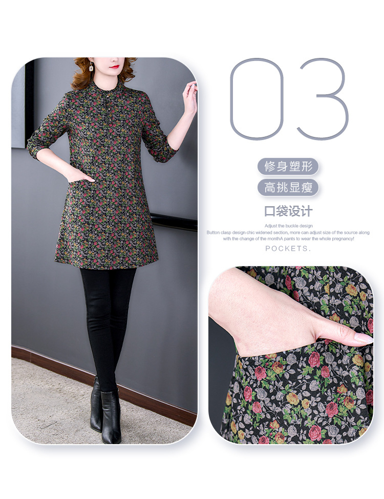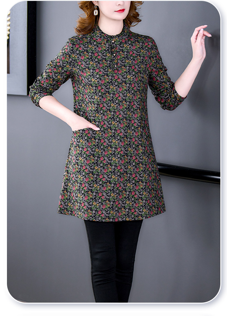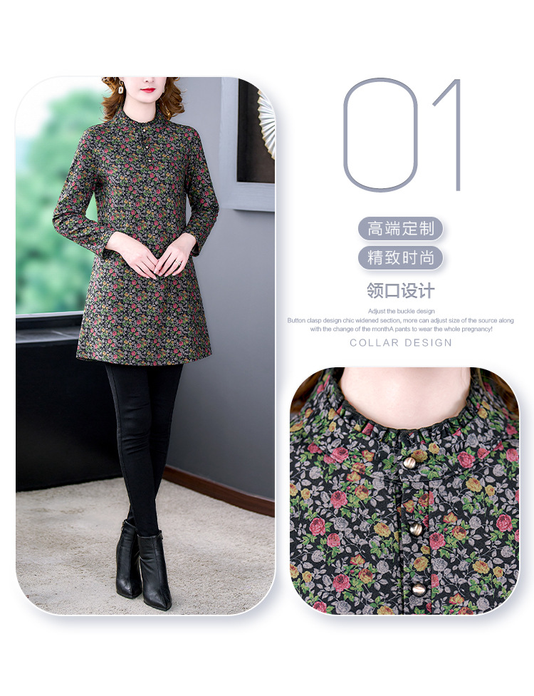 秋冬新款,中长款立领印花加厚德绒连衣裙KQL-818