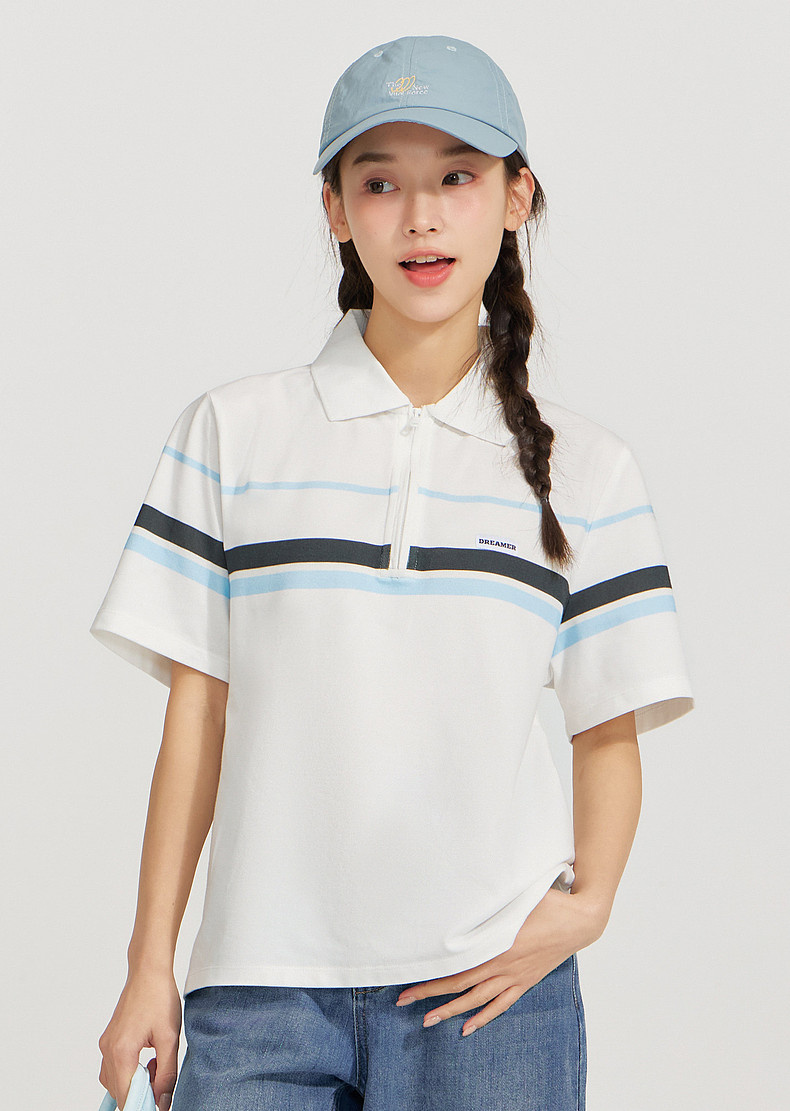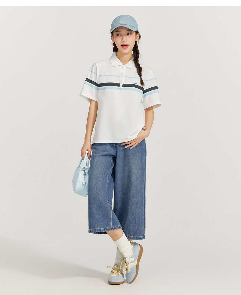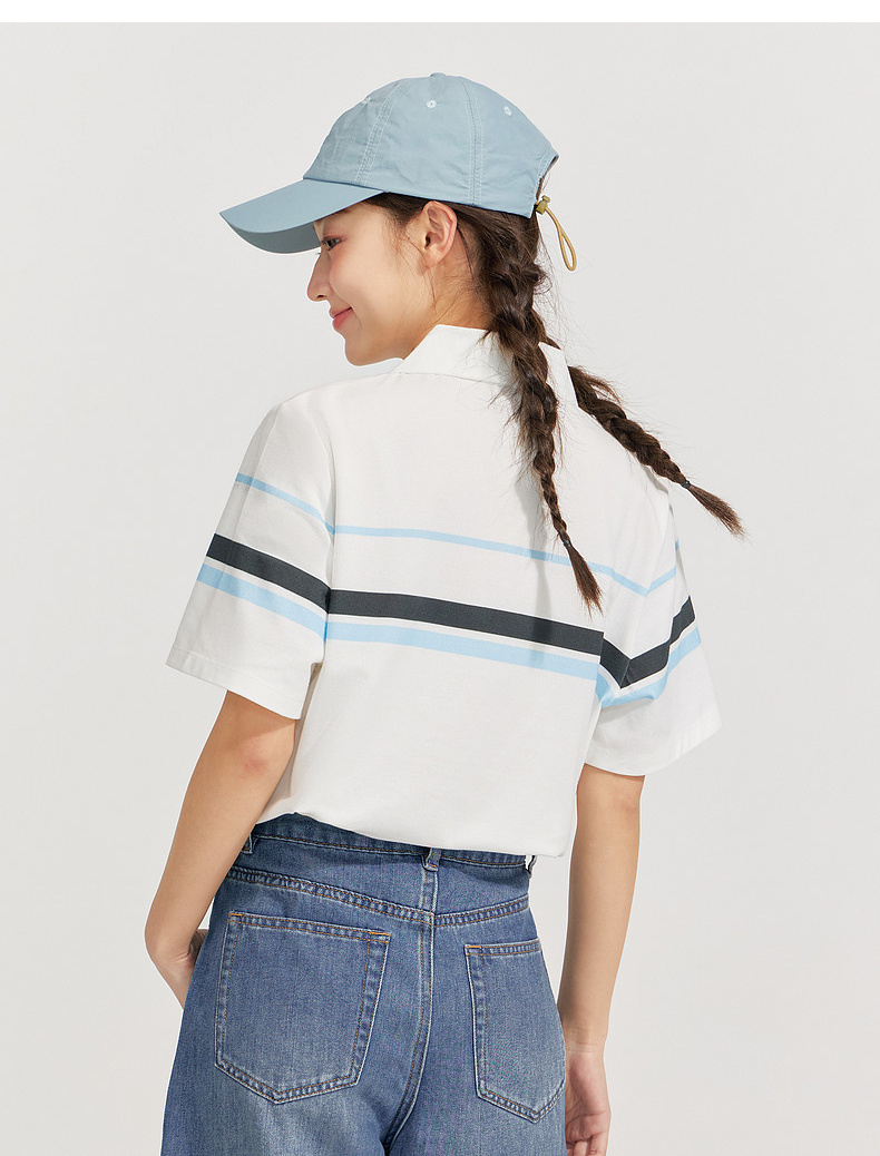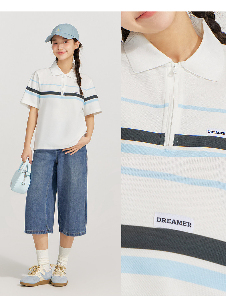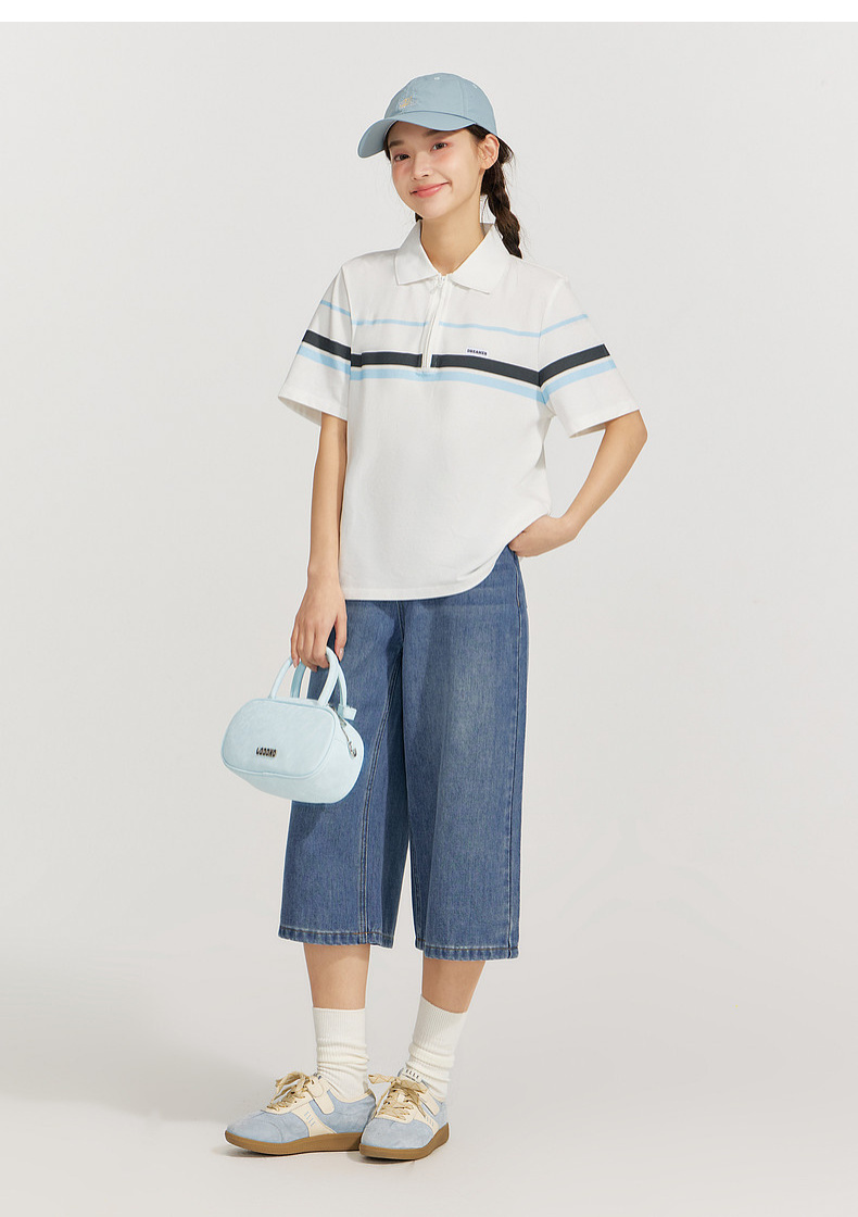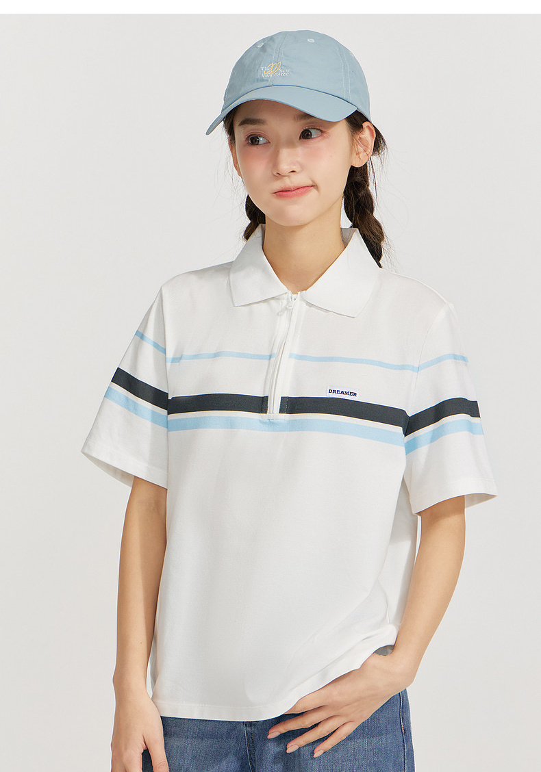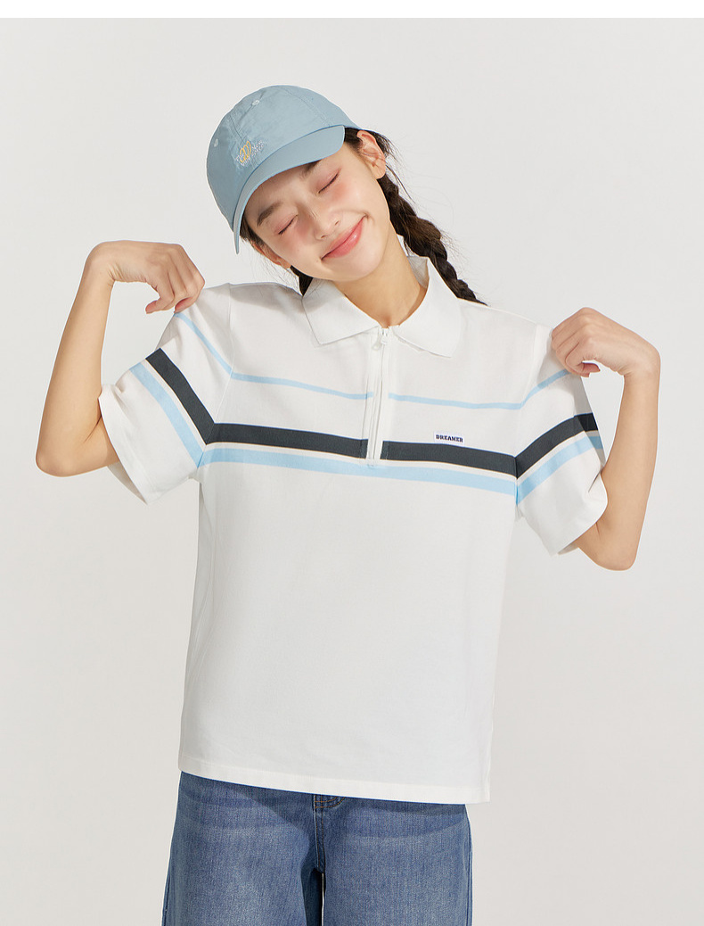 笛莎Deesha 2026年夏季新款青少年polo领学院风条纹T恤