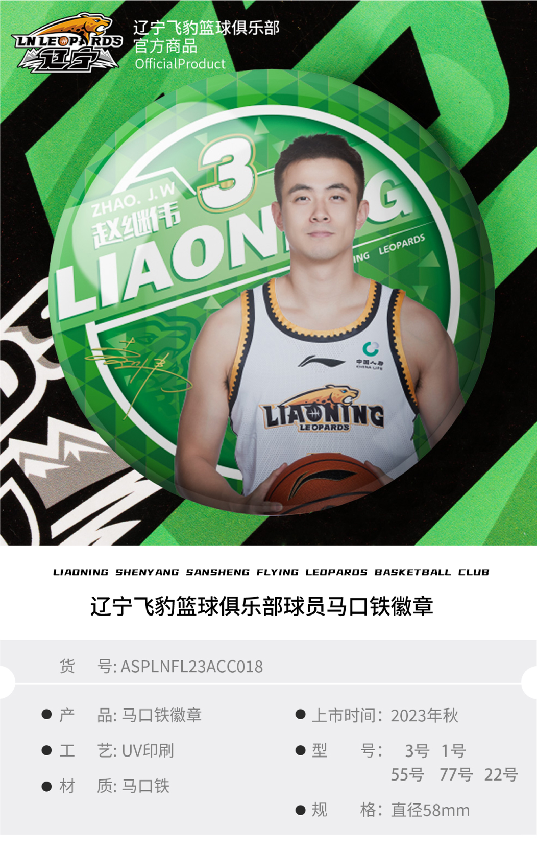 辽宁飞豹男篮官方商品丨辽篮本钢队球员马口铁徽章