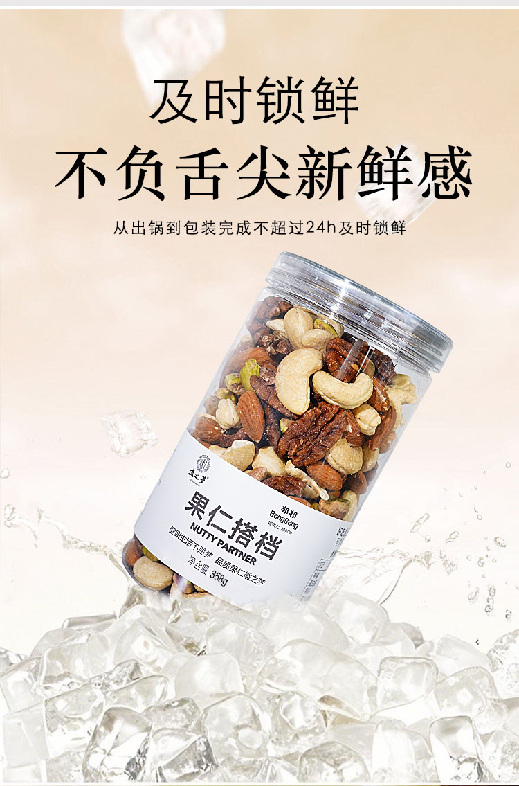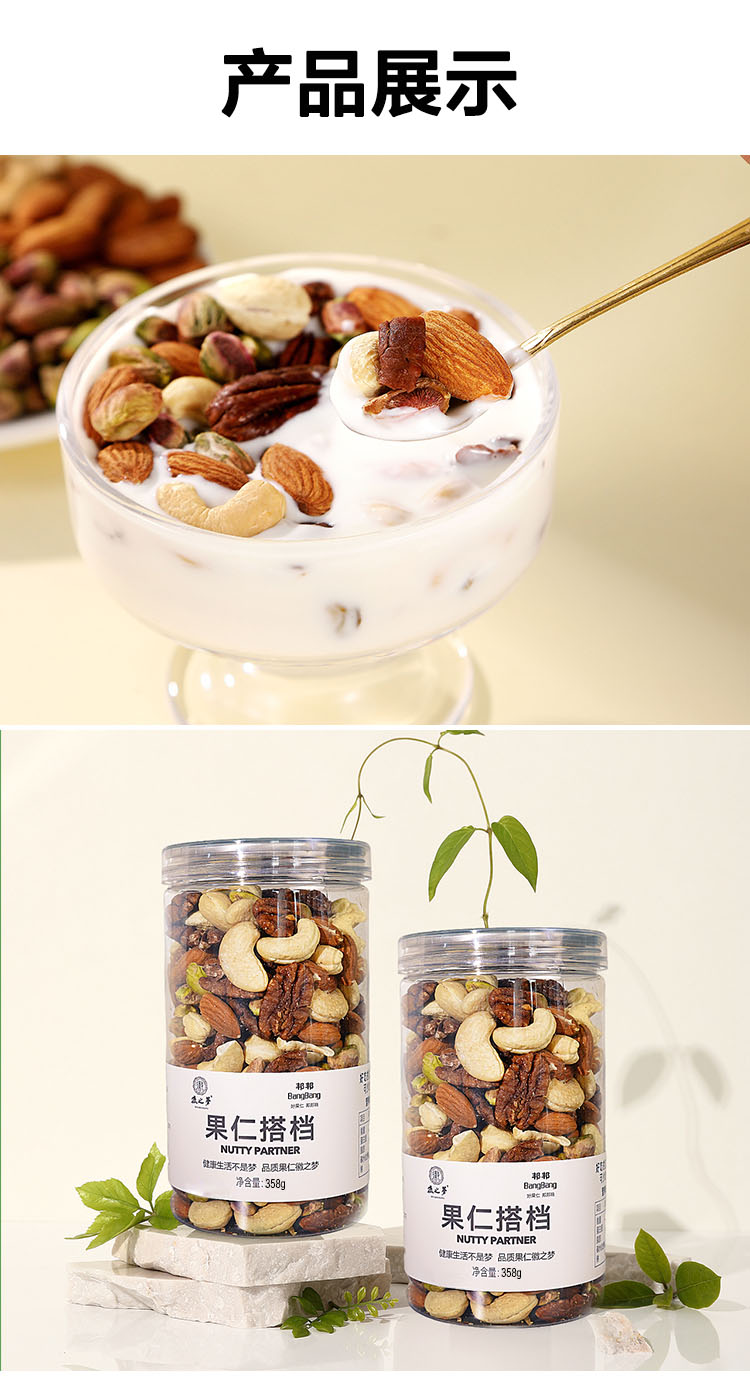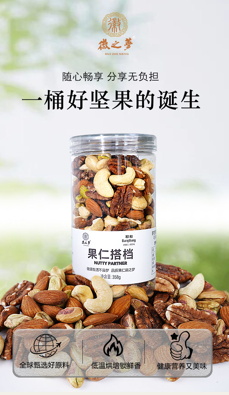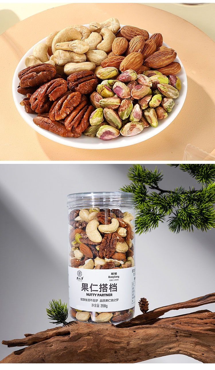 徽之梦 果仁搭档 开心果仁碧根果仁腰果仁巴旦木仁罐装 混合坚果果干桶装 大罐装358克 新鲜健康儿童休闲零食