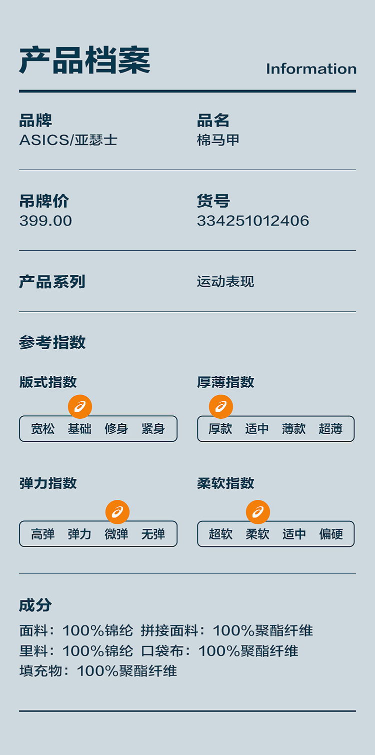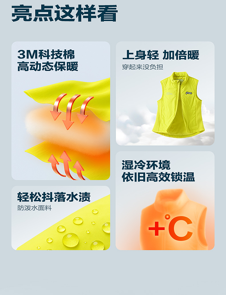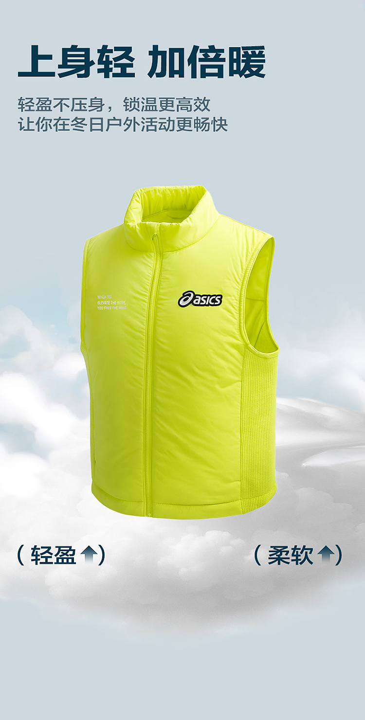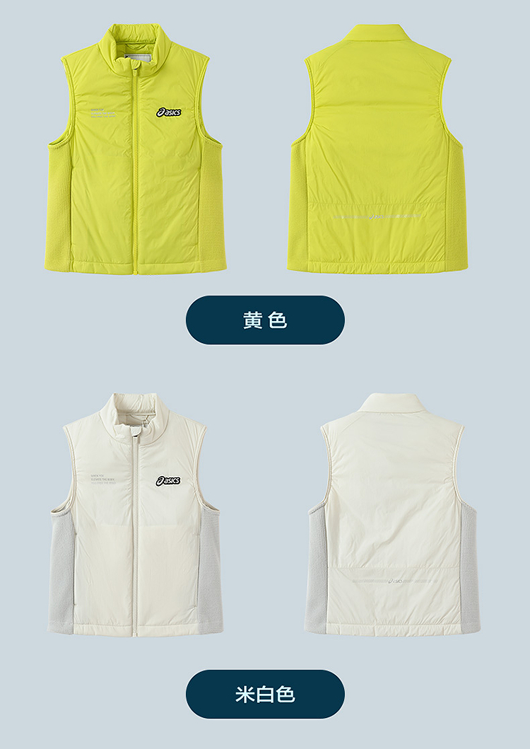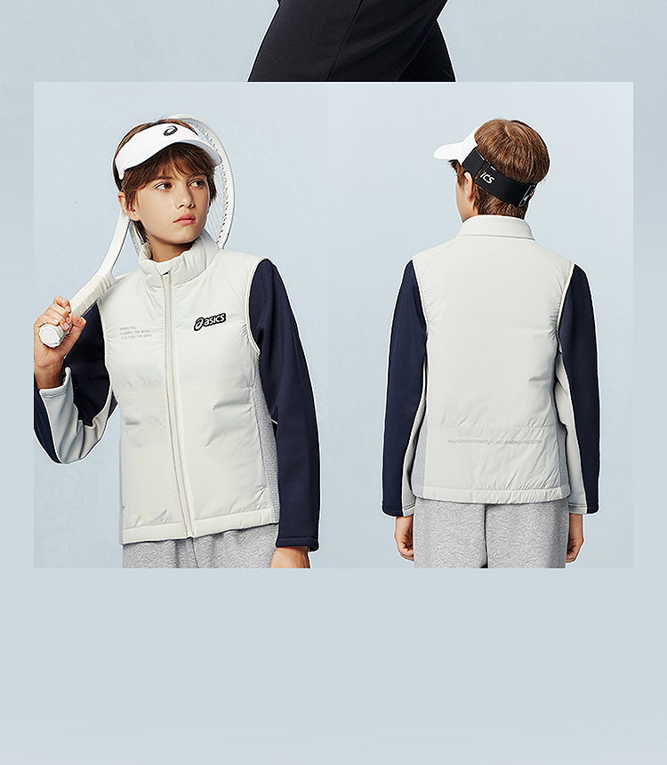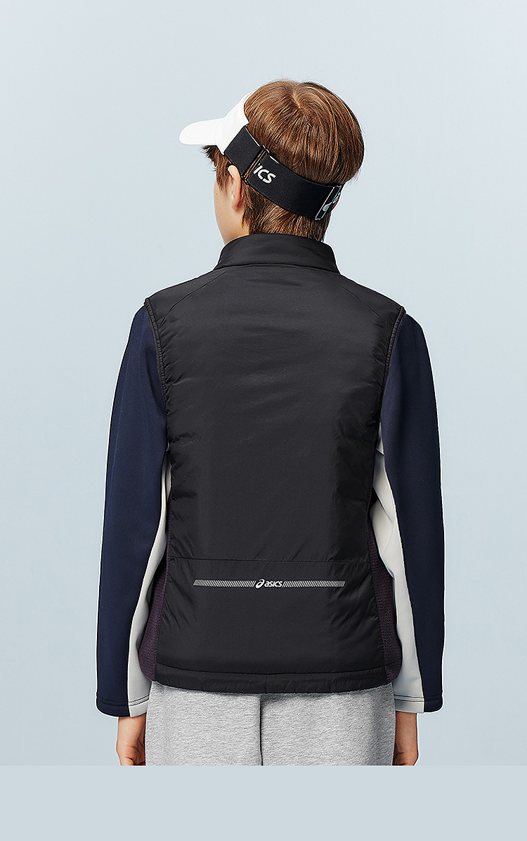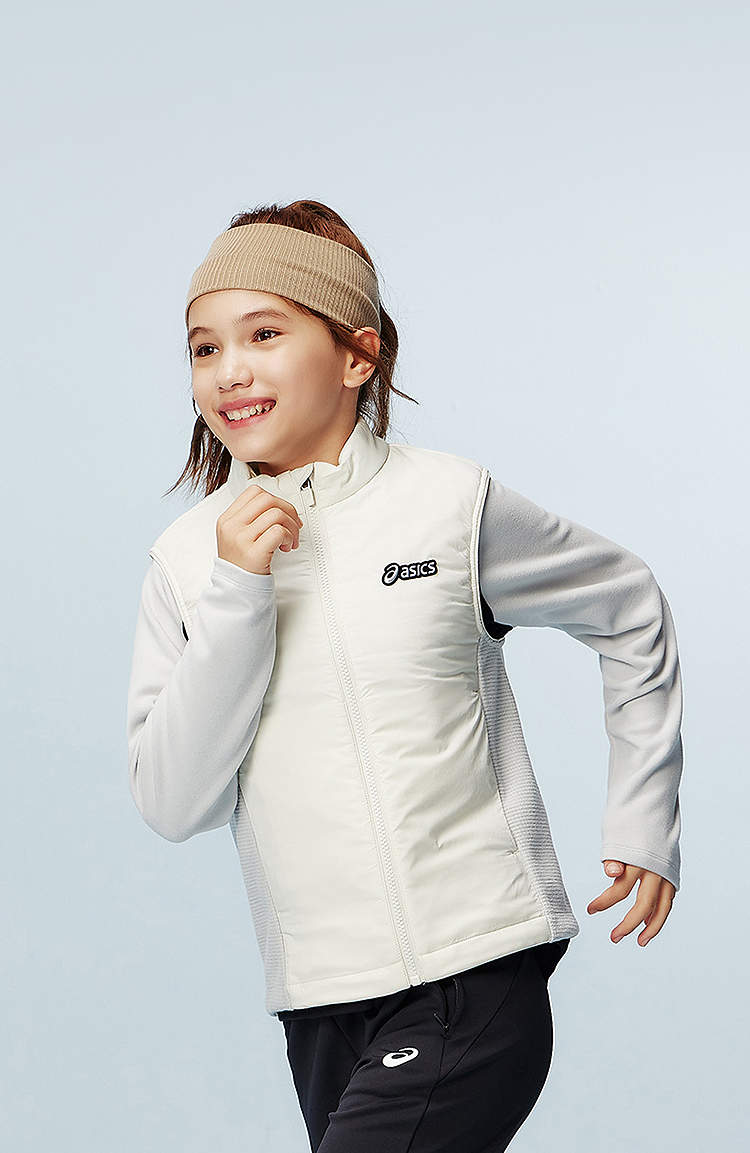 ASICS/亚瑟士童装25年冬季儿童运动保暖棉马甲防泼水轻量时尚百搭