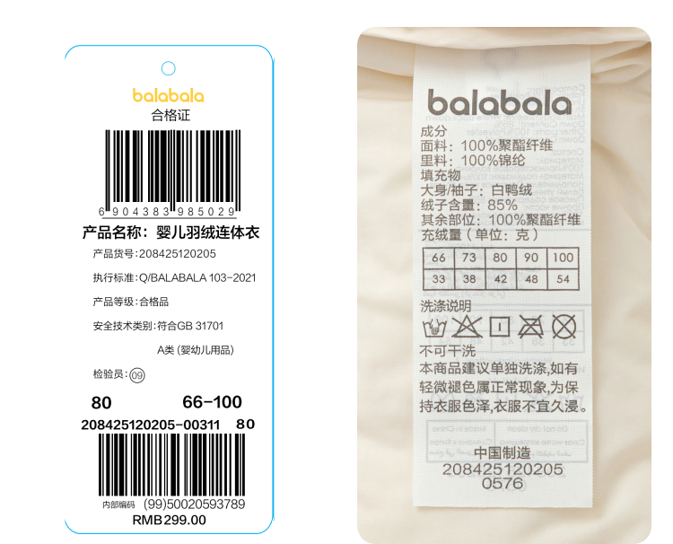 巴拉巴拉儿童轻薄羽绒服男女童冬季连体衣2025新款造型可爱时尚萌