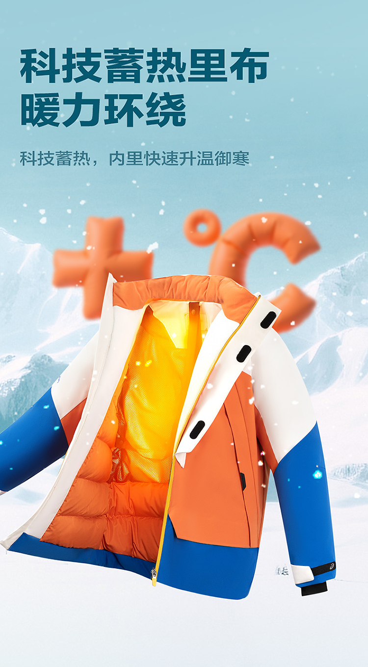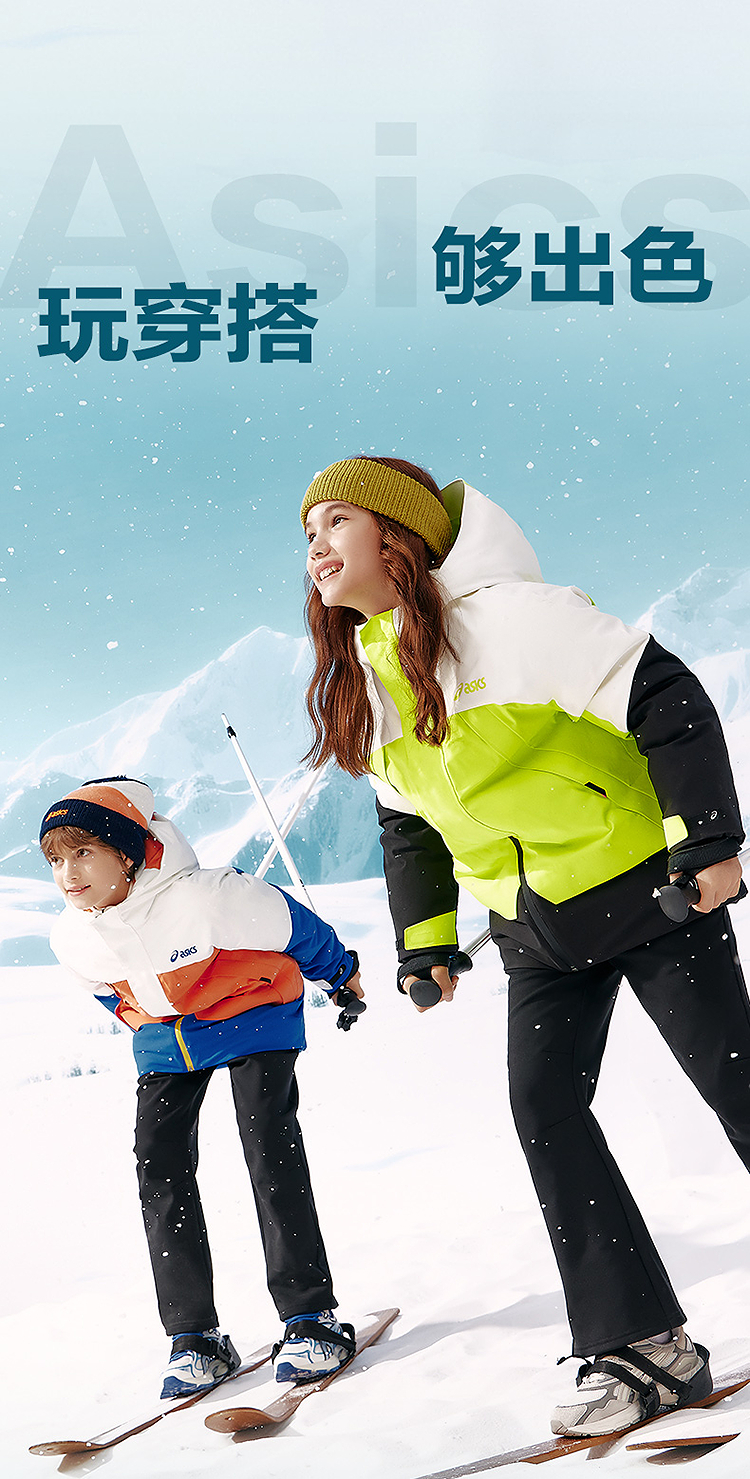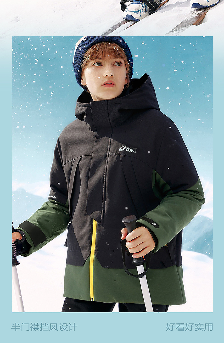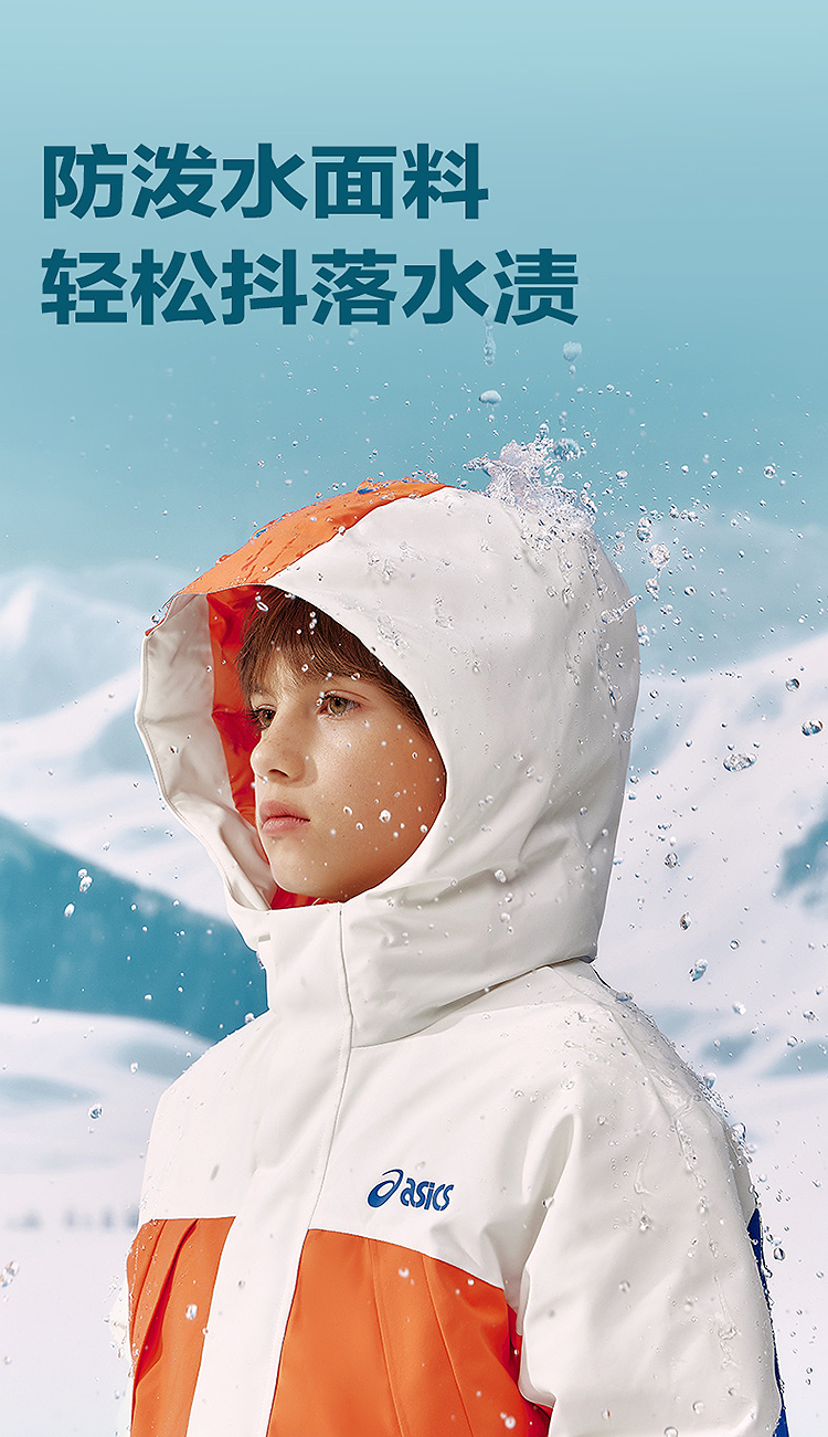 ASICS/亚瑟士童装25年冬季儿童中长款户外冲锋羽绒服防水防风透湿