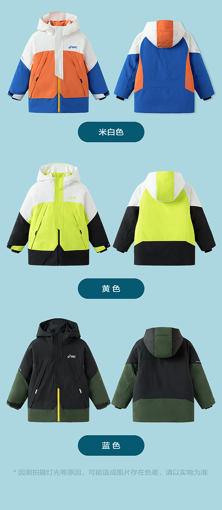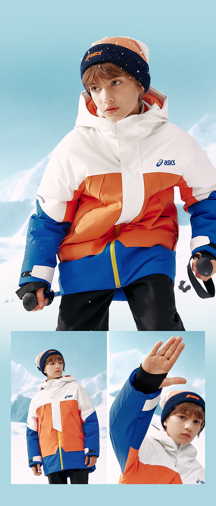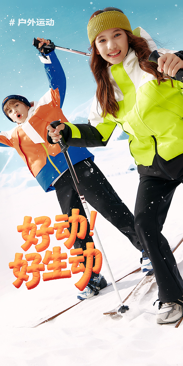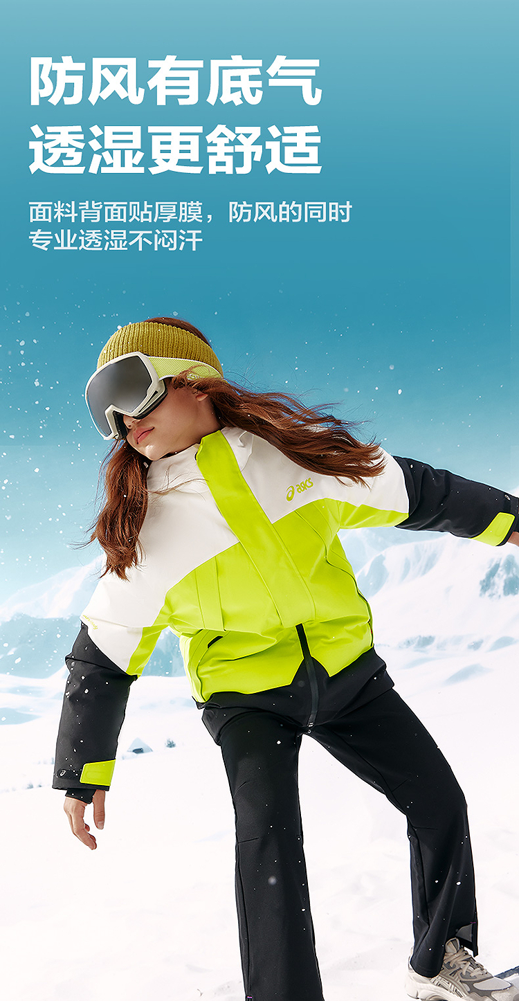 ASICS/亚瑟士童装25年冬季儿童中长款户外冲锋羽绒服防水防风透湿