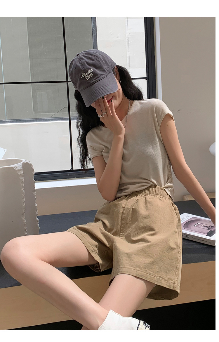 2024棉麻工装短裤 夏季薄款高腰A字休闲显瘦阔腿短裤