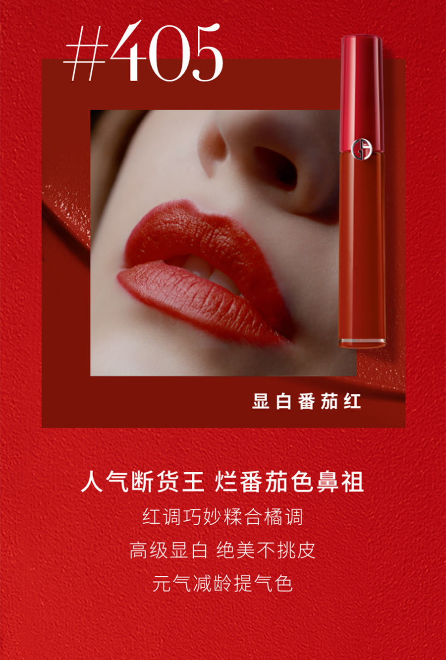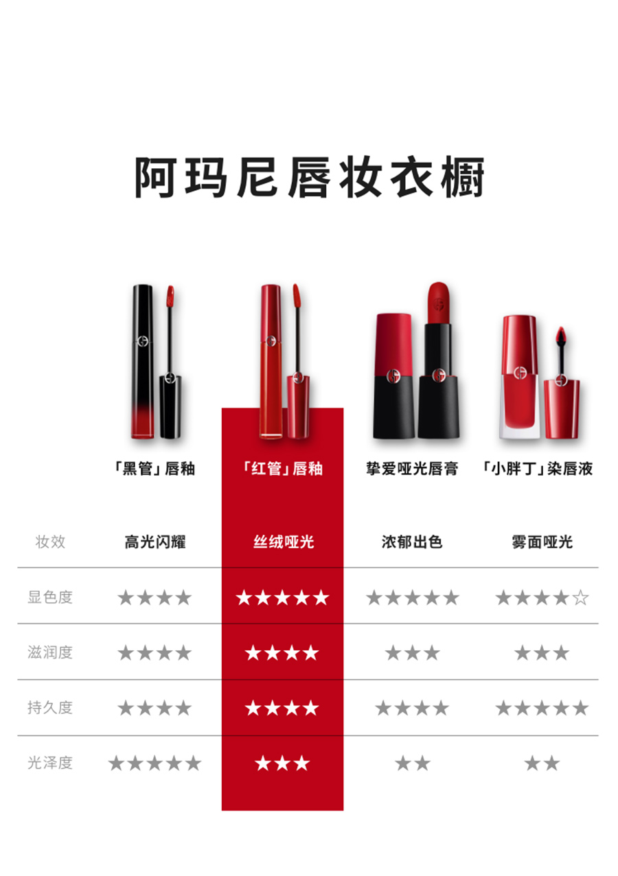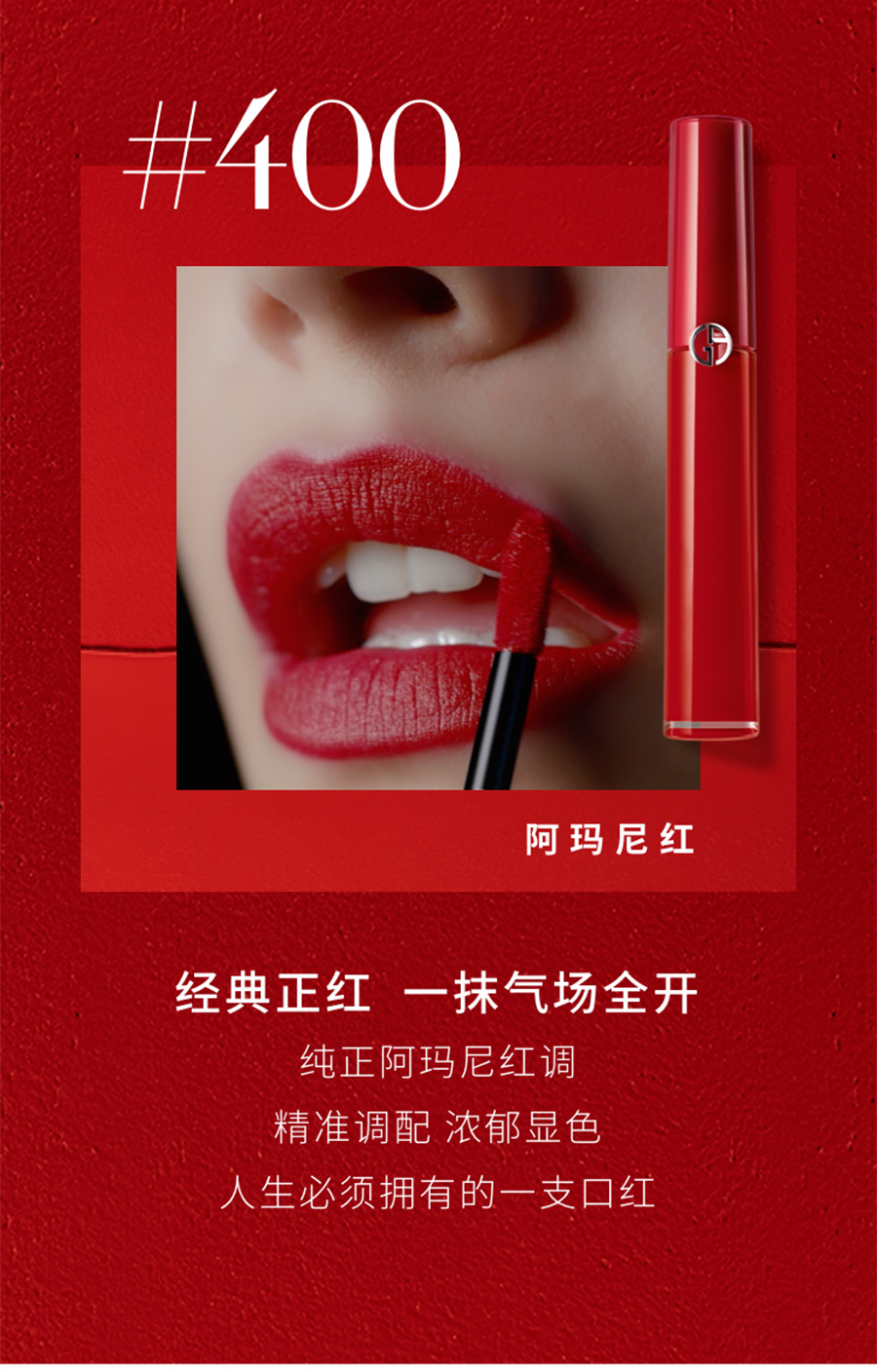 Armani/阿玛尼传奇红管臻致丝绒哑光唇釉 400 阿玛尼红