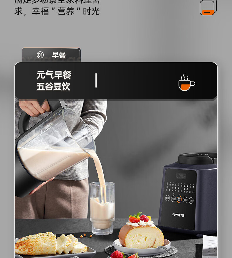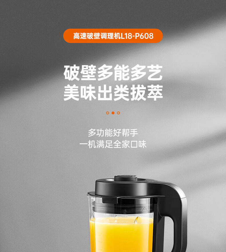 九阳(Joyoung)破壁机 12h智能预约 调理机 低音降噪 免滤婴儿辅食 多功能 L18-P608