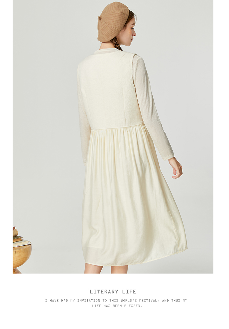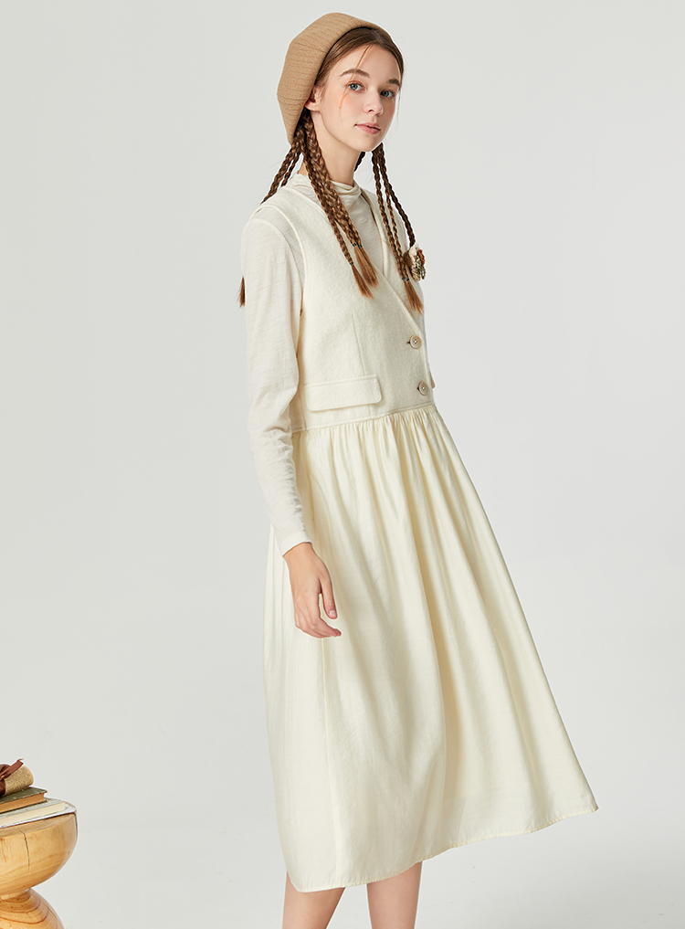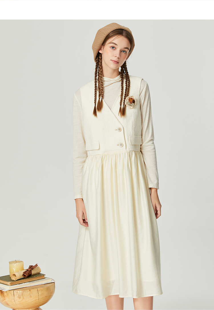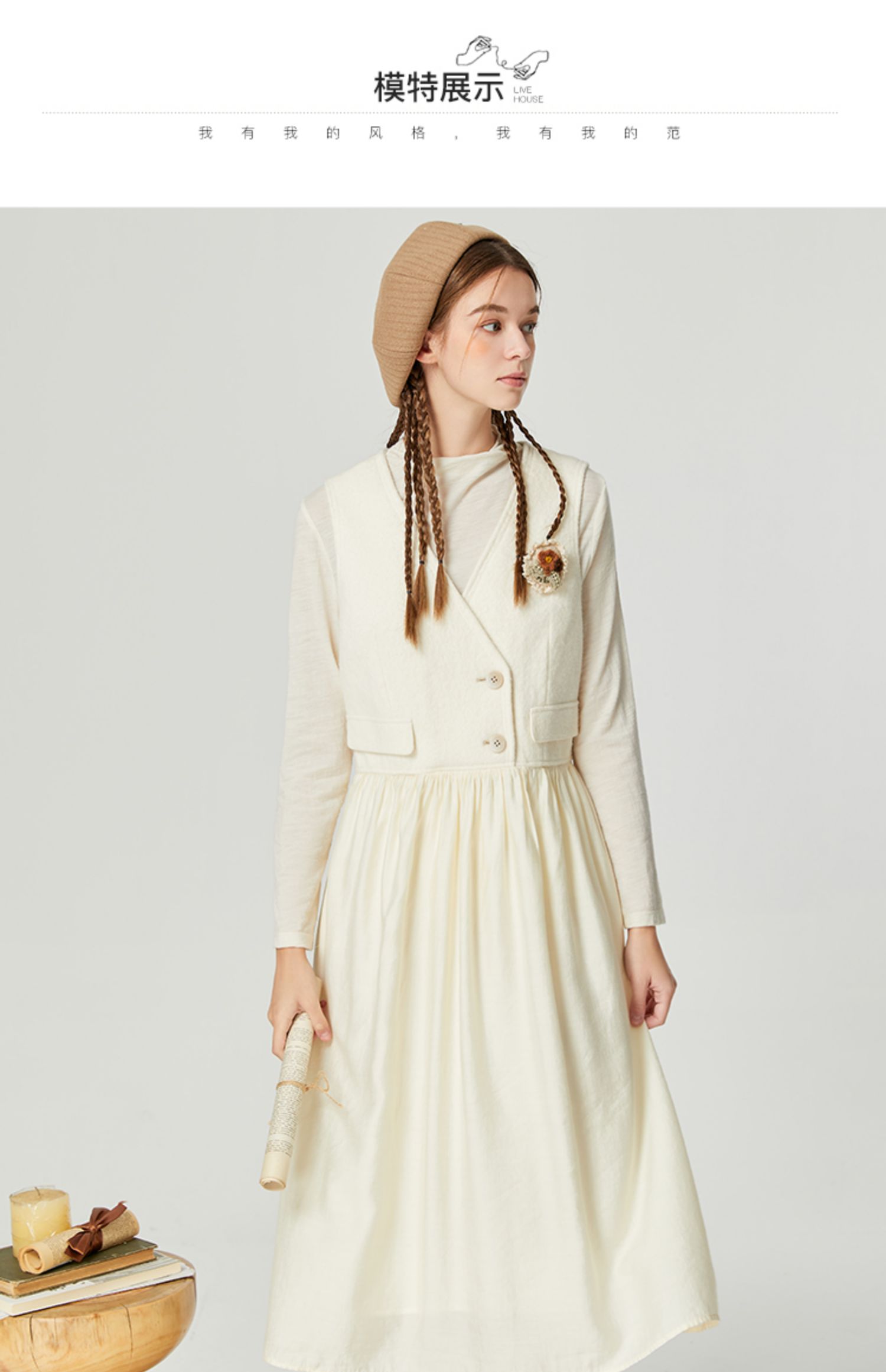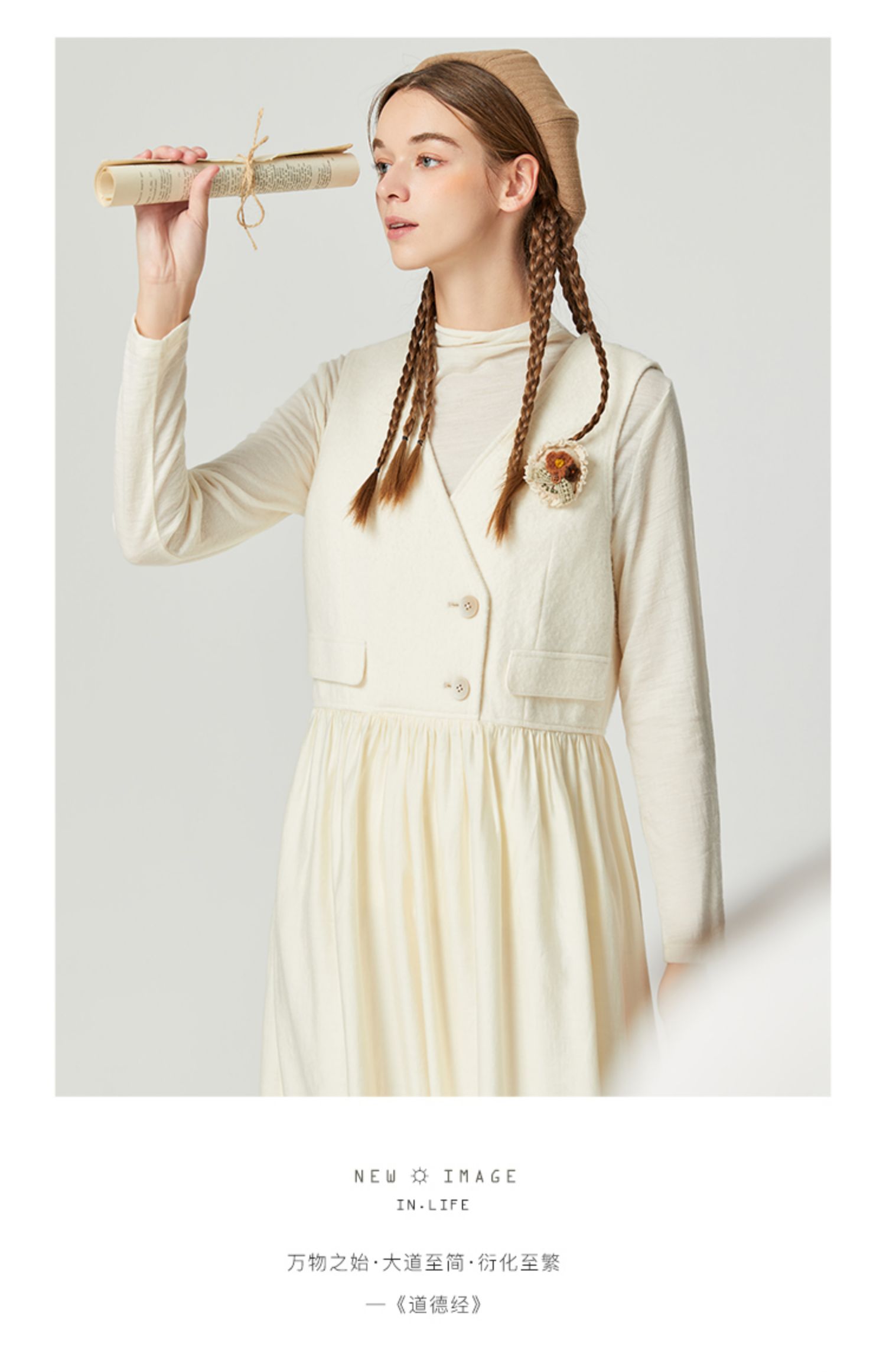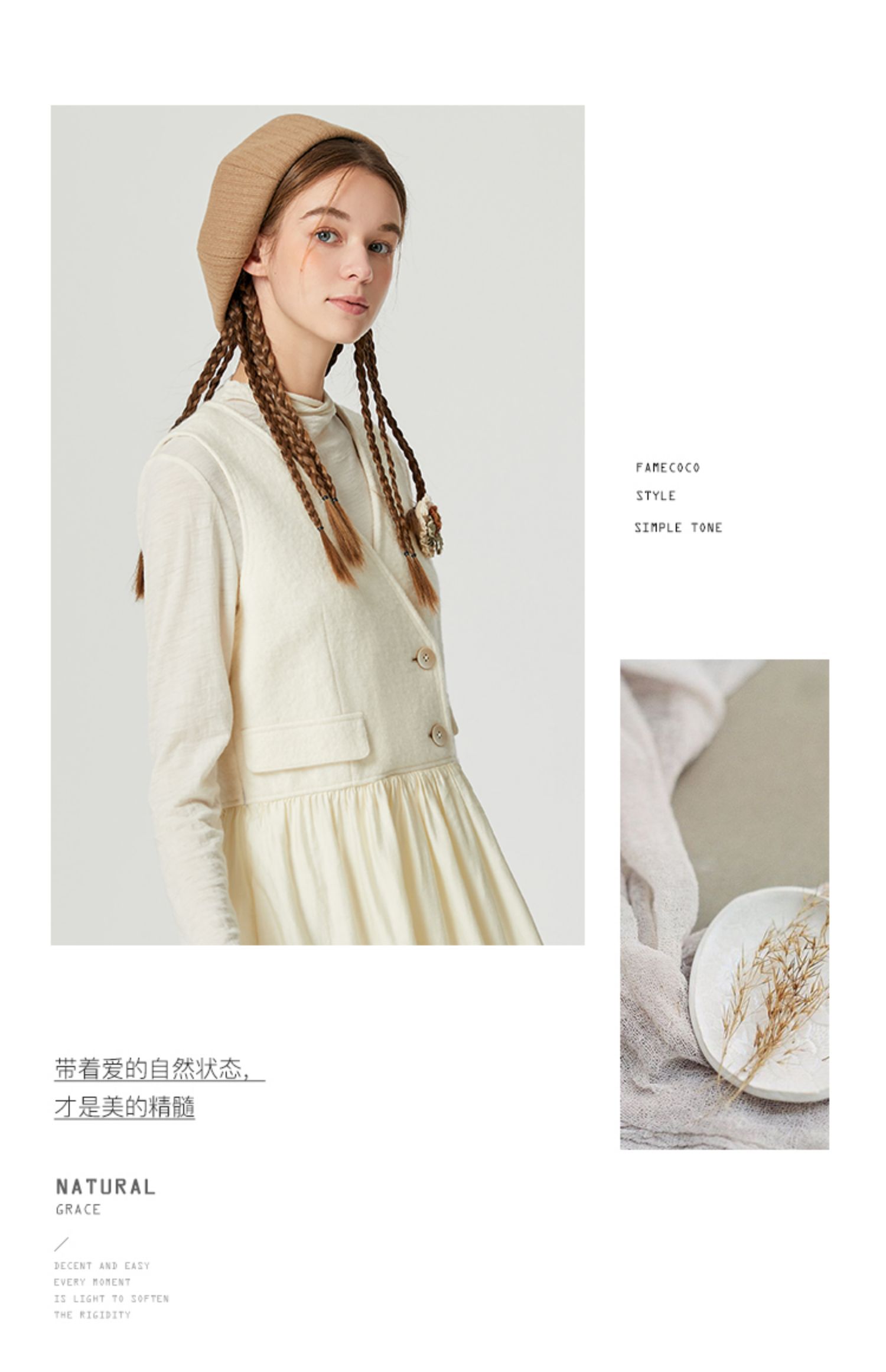 Famecoco范可儿小香风甜美无袖连衣裙秋款别致温柔马甲裙