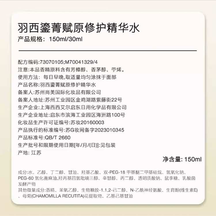 【炸炸妙妙屋专属】羽西鎏菁赋原修复精华水150ml
