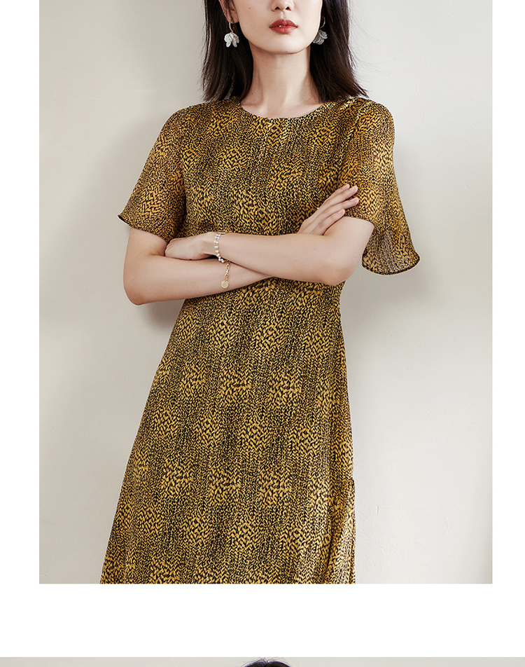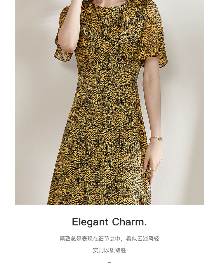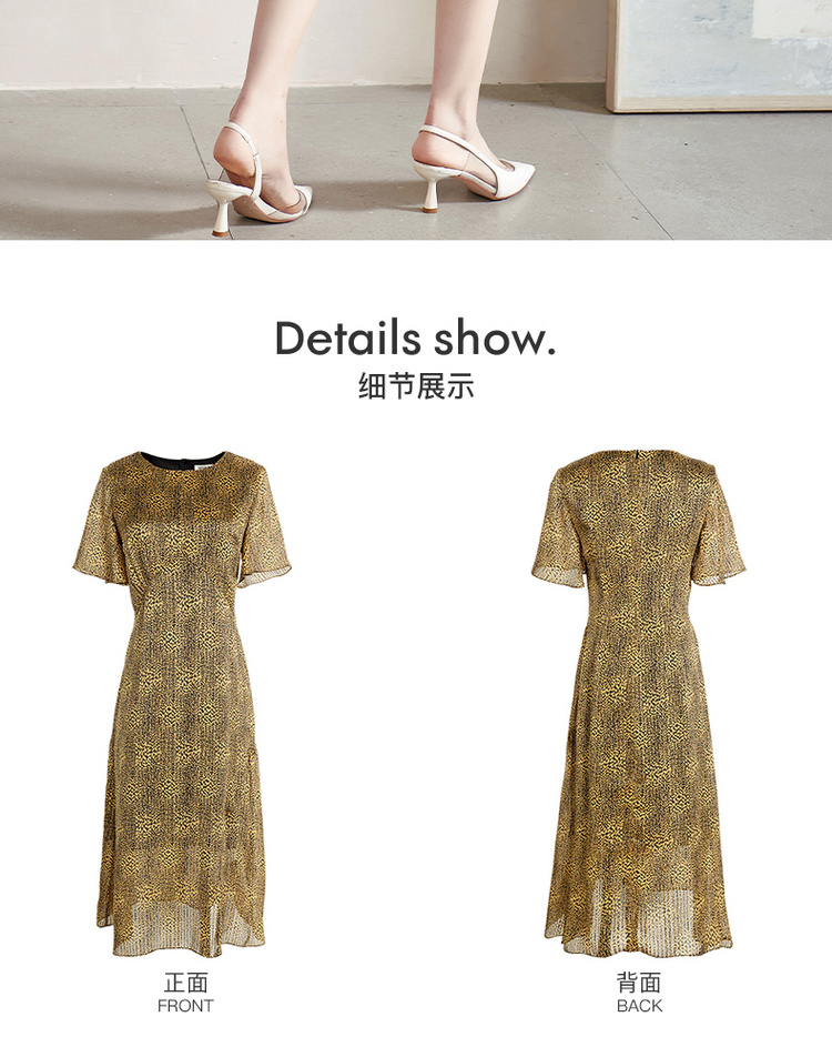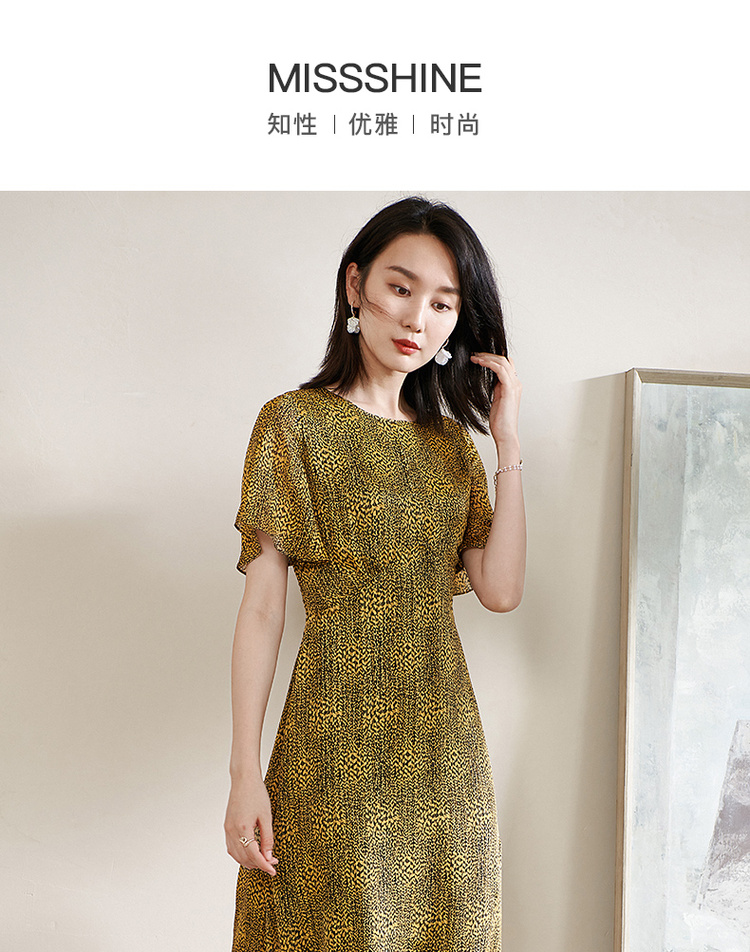 剩S/M/L 米思阳2025夏季新款气质复古印花中长裙修身显瘦短袖连衣裙1109