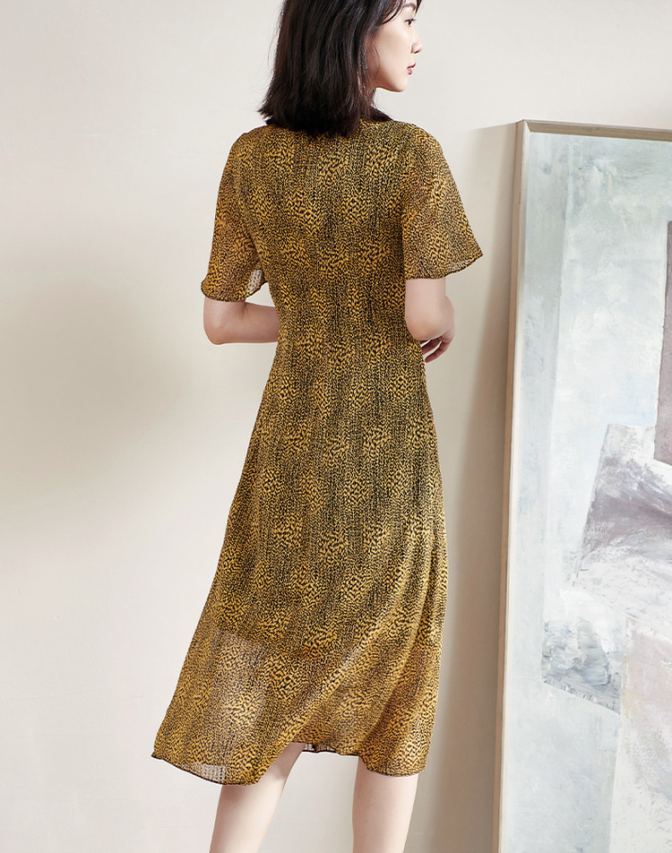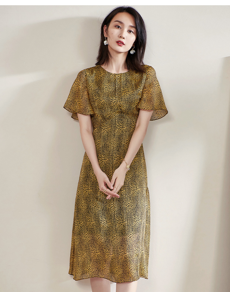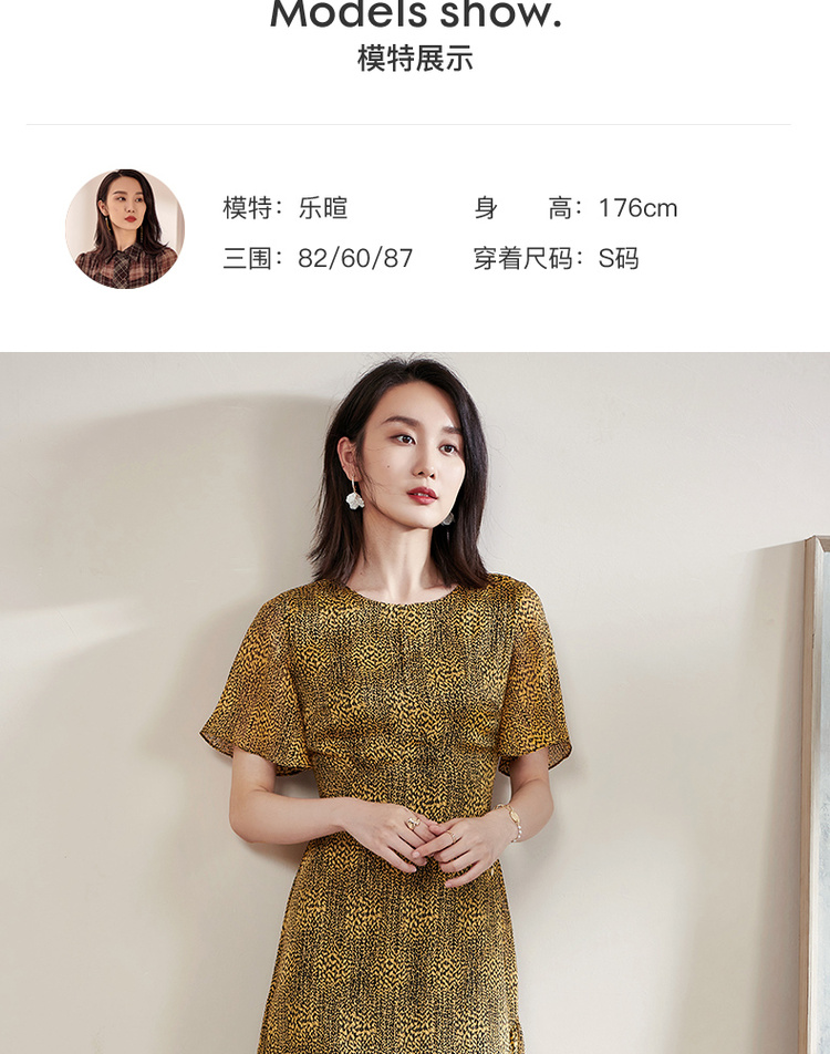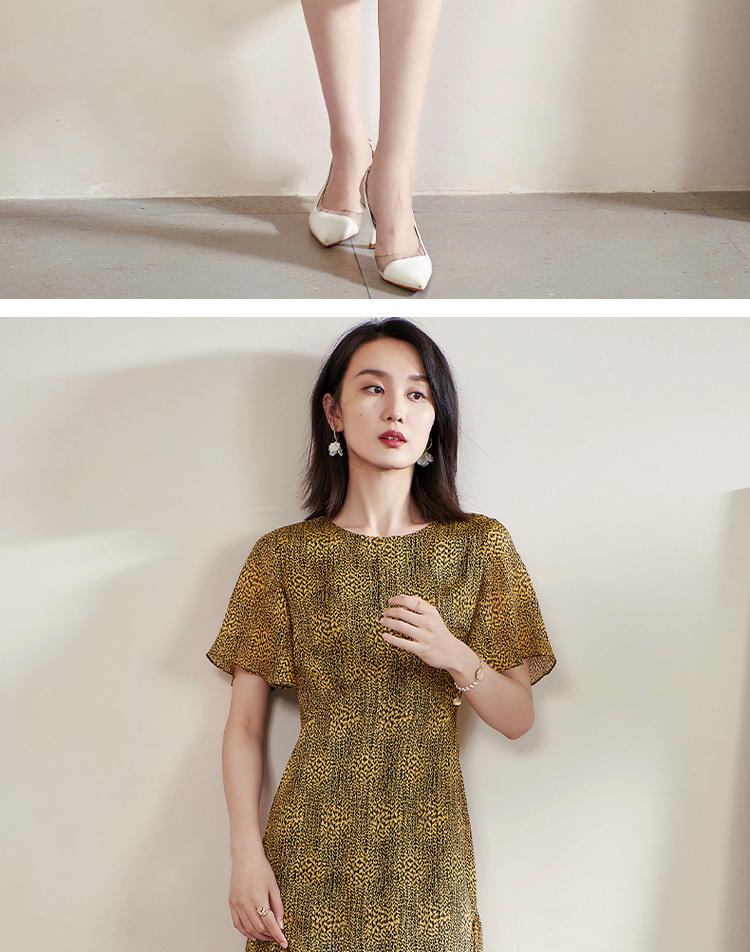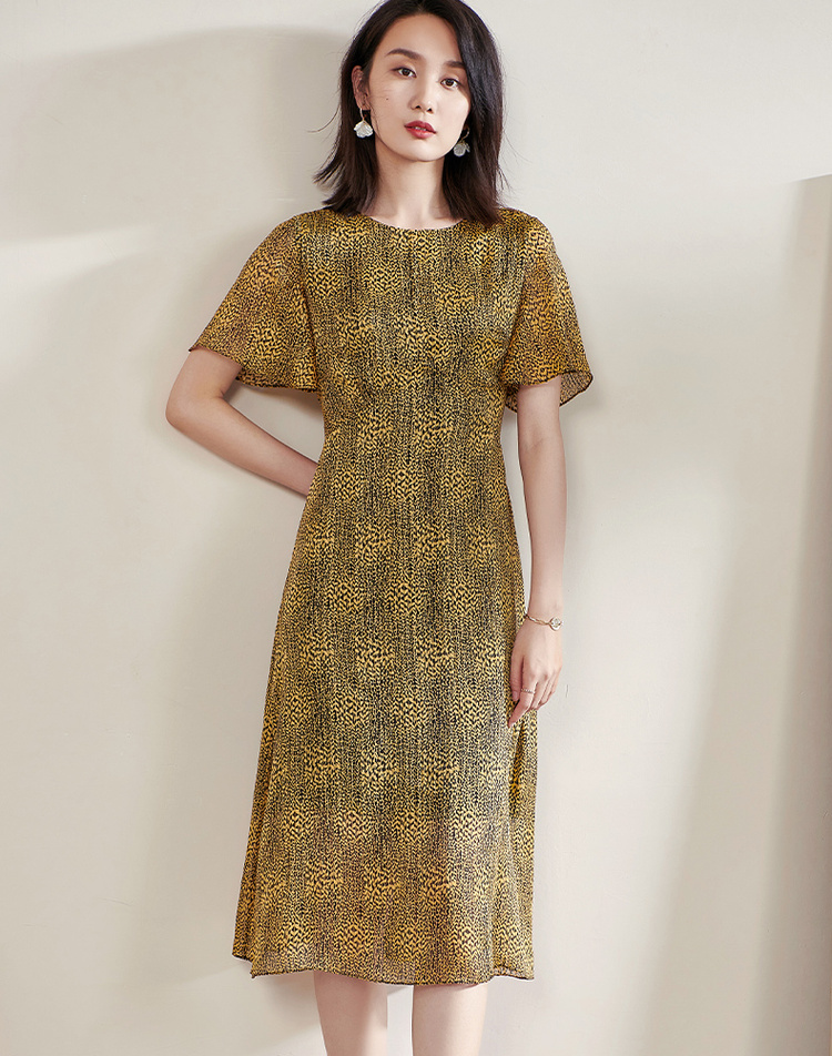 剩S/M/L 米思阳2025夏季新款气质复古印花中长裙修身显瘦短袖连衣裙1109