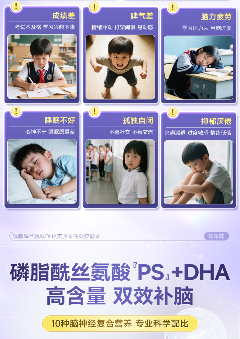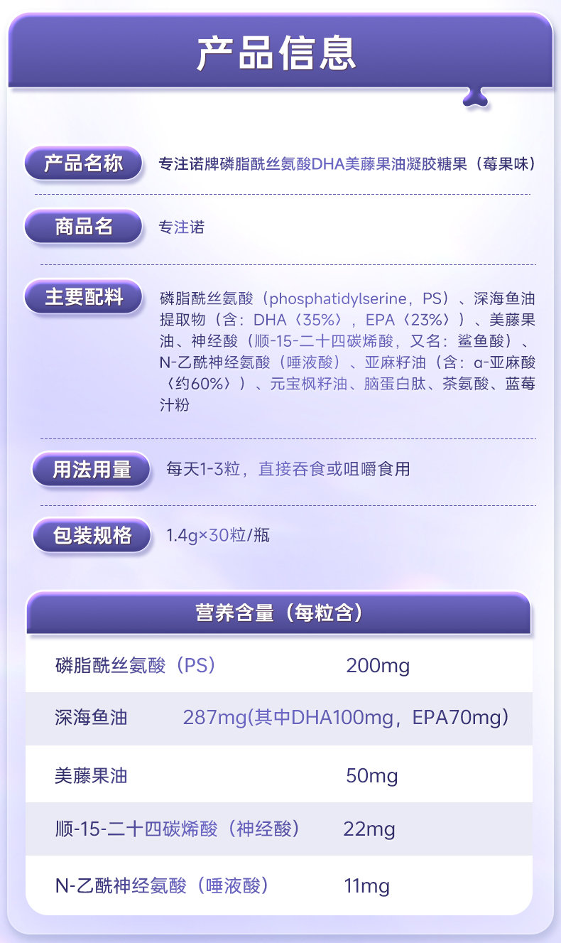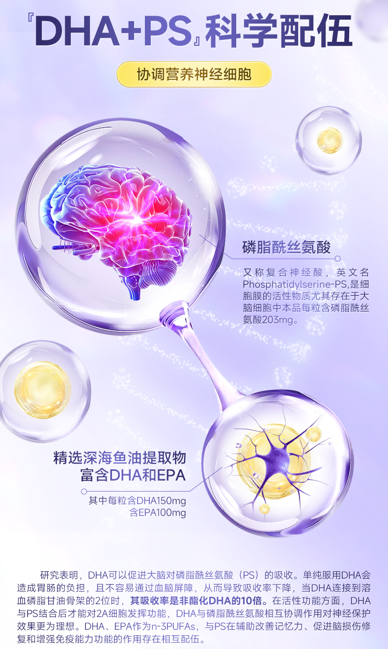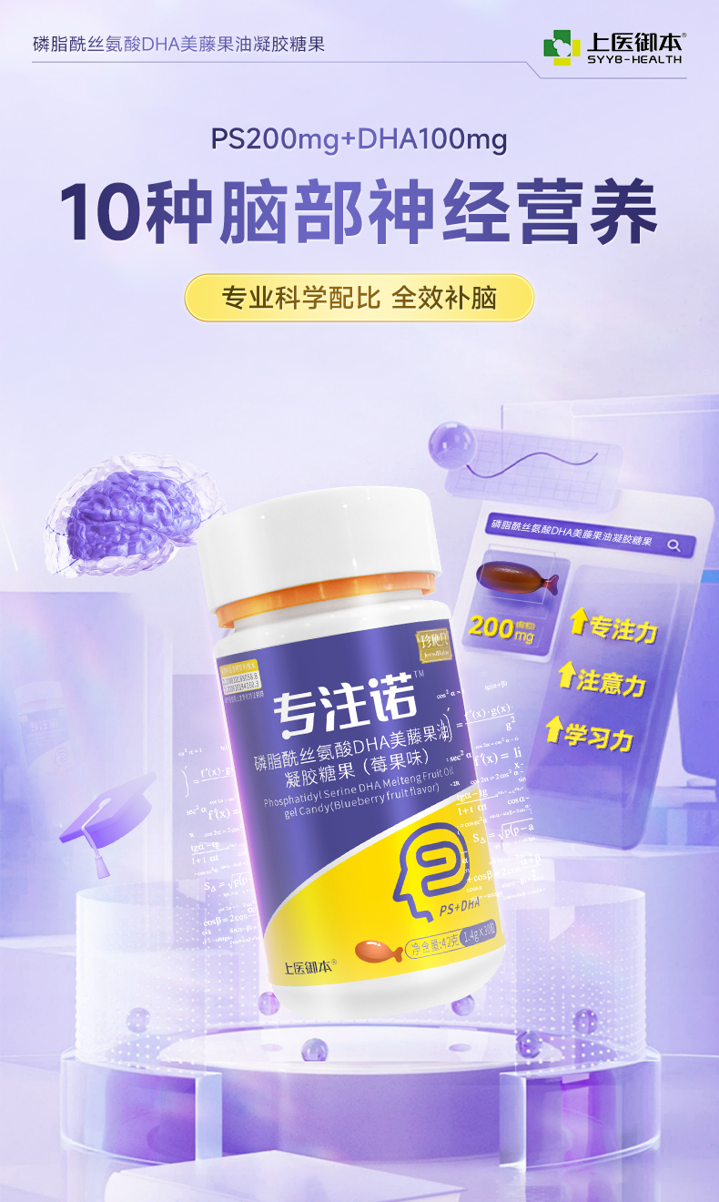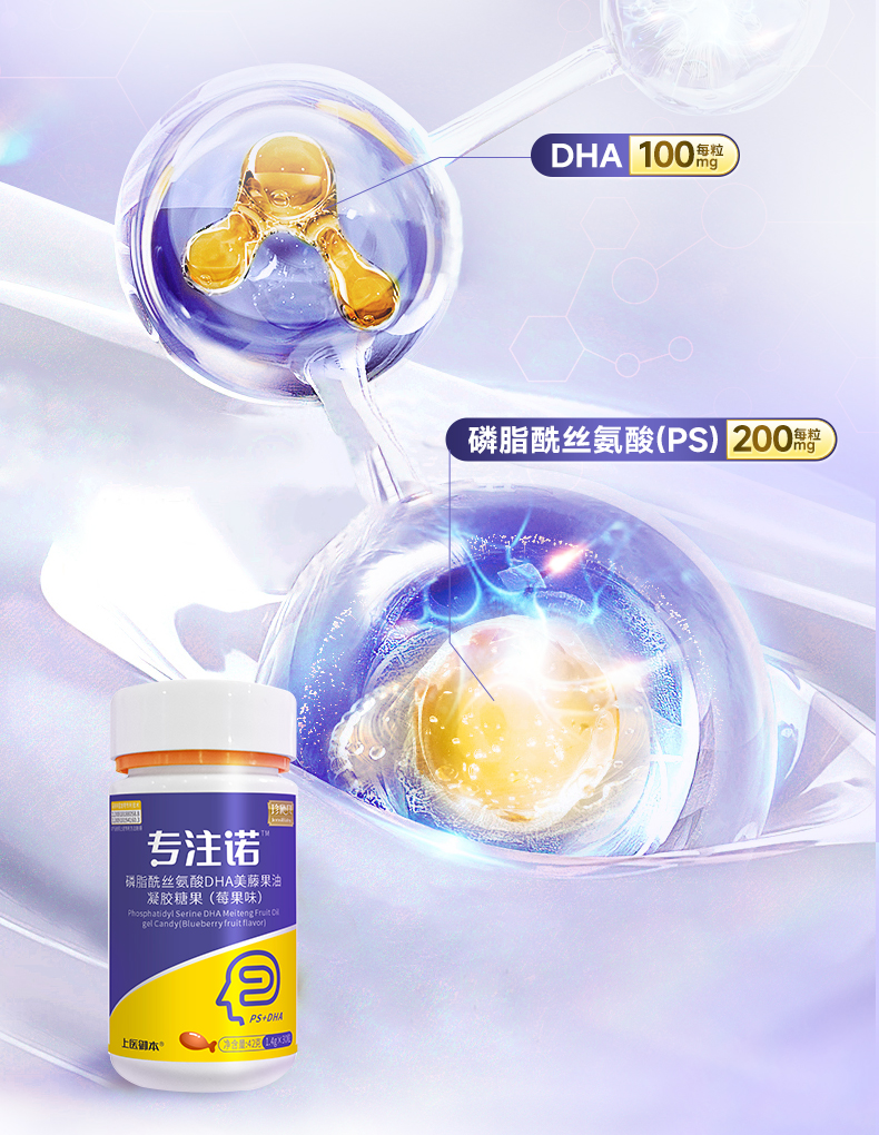 专注诺DHA磷酯酰丝氨酸高含量PS神经酸脑部发育多动抽动注意缺陷