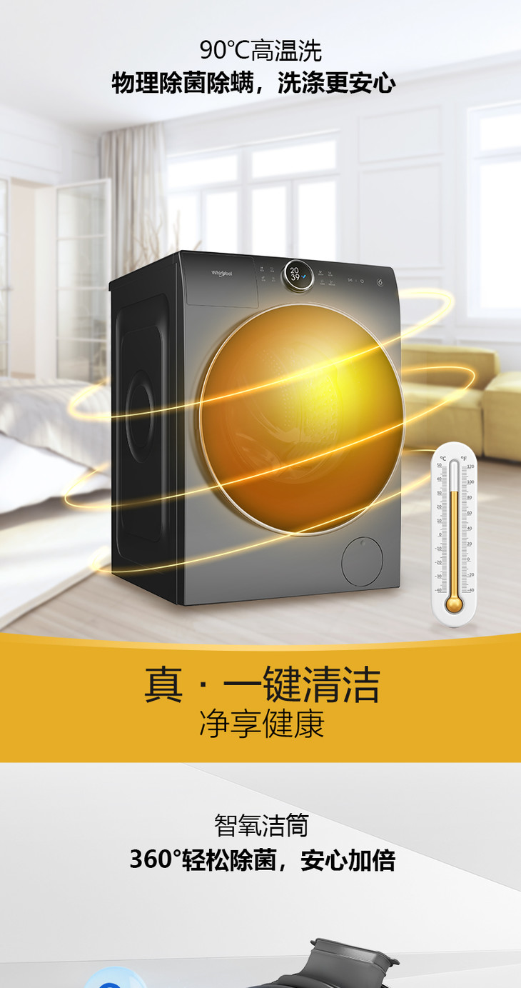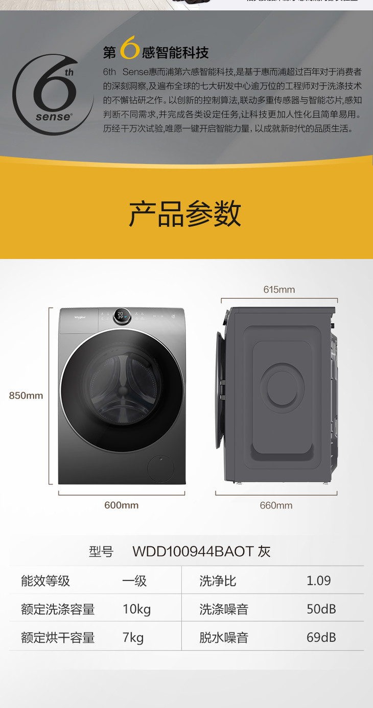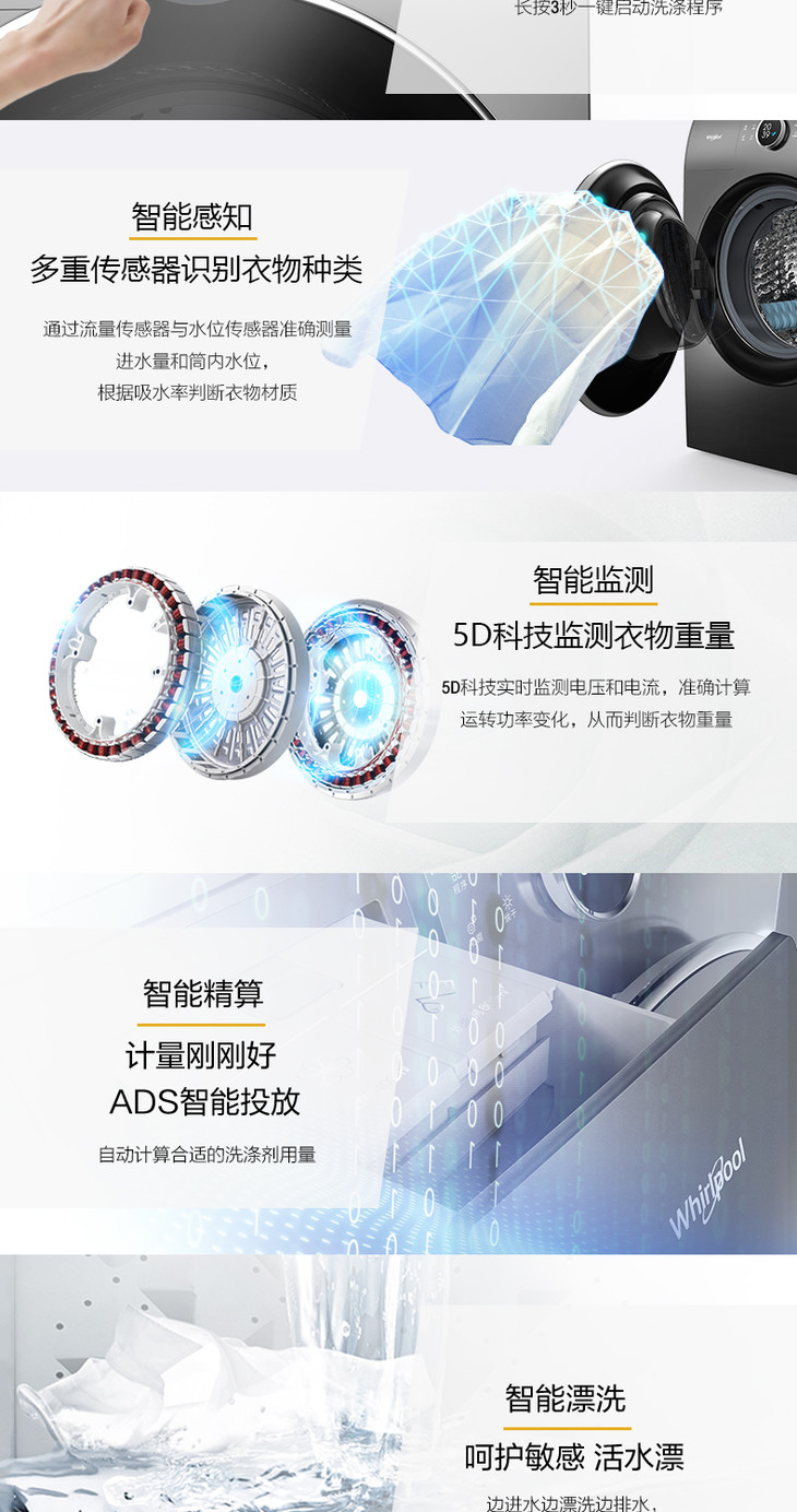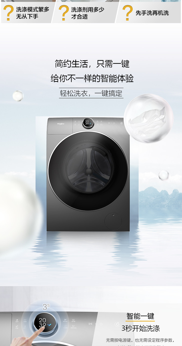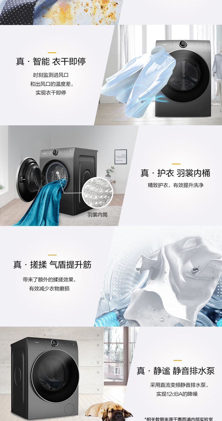 惠而浦(Whirlpool)(251749)帝王系列智能滚筒洗衣机WDD100944BAOT 星云灰