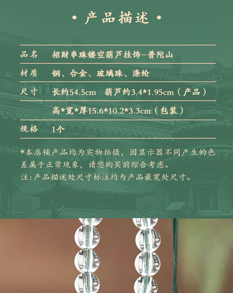 普陀山招财串珠镂空葫芦挂饰