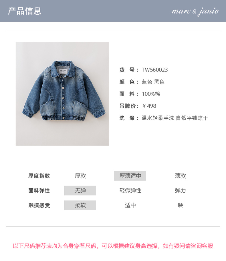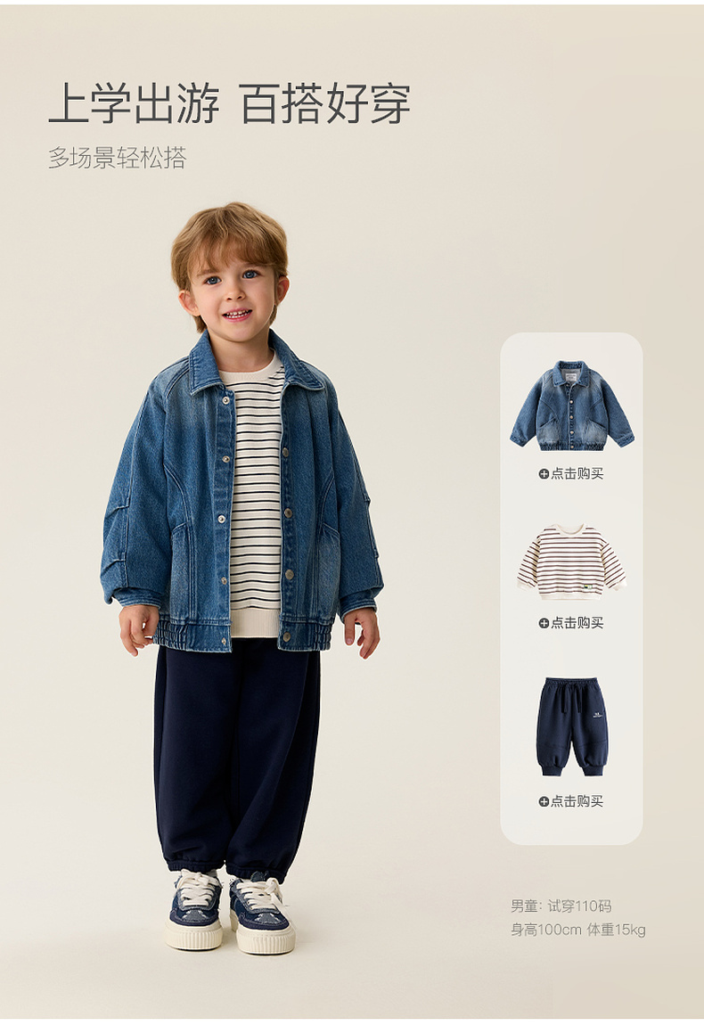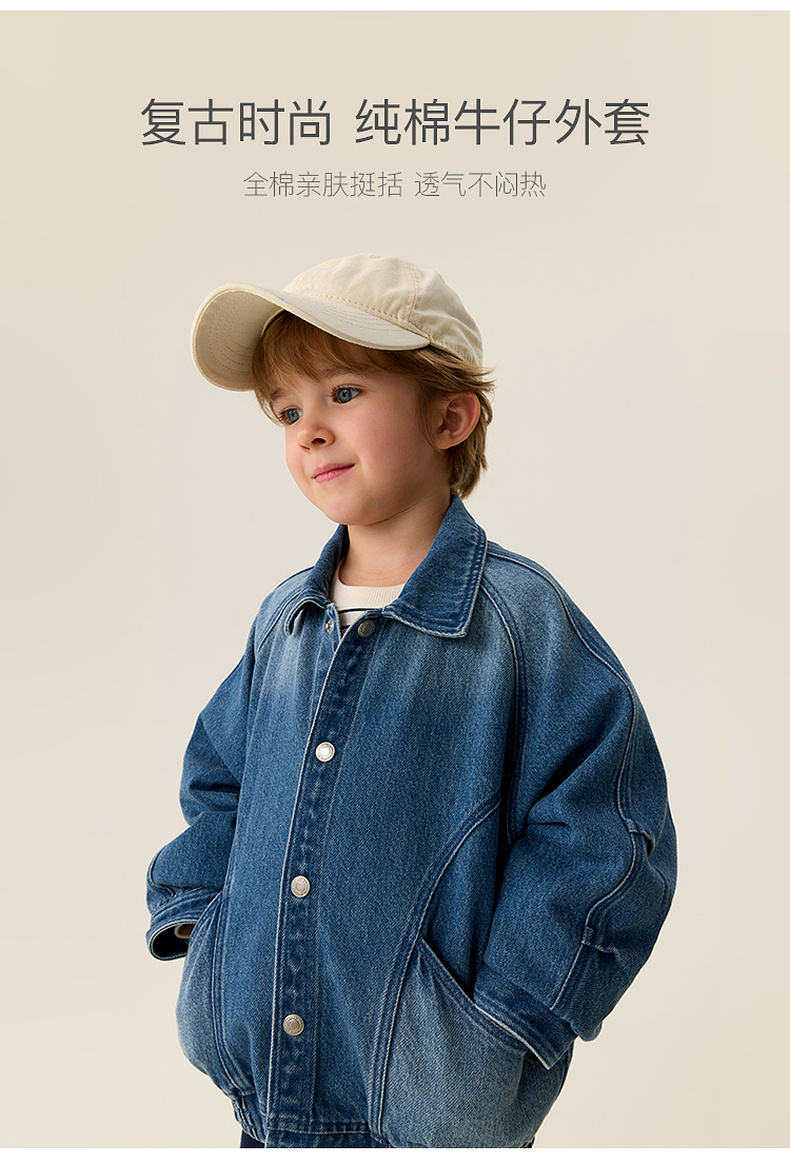 马克珍妮复古时尚男童纯棉牛仔外套宝宝夹克2026年春装新款560023