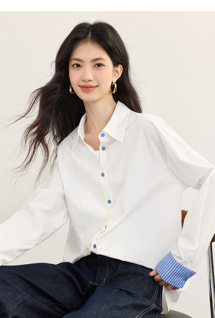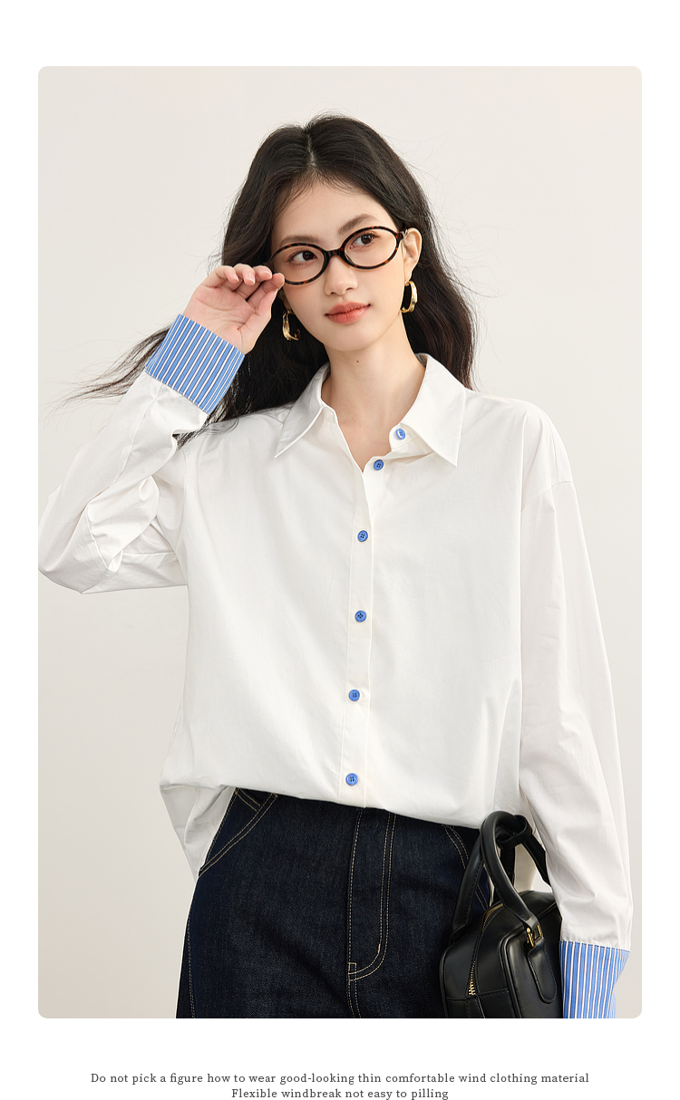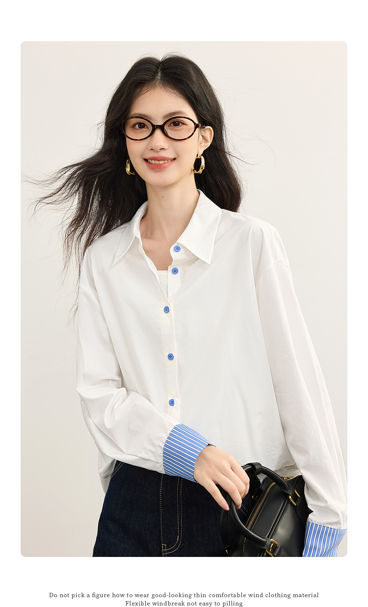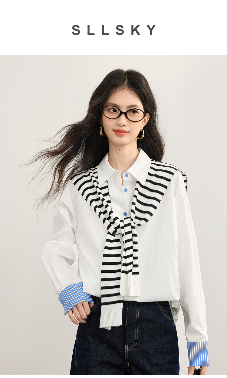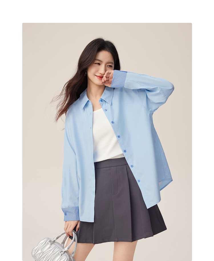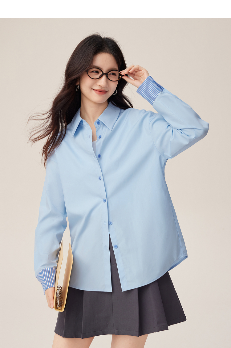 【周末秒杀】熙世界miu系天丝棉长袖衬衫女2025秋季新款条纹翻袖气质宽松衬衣
