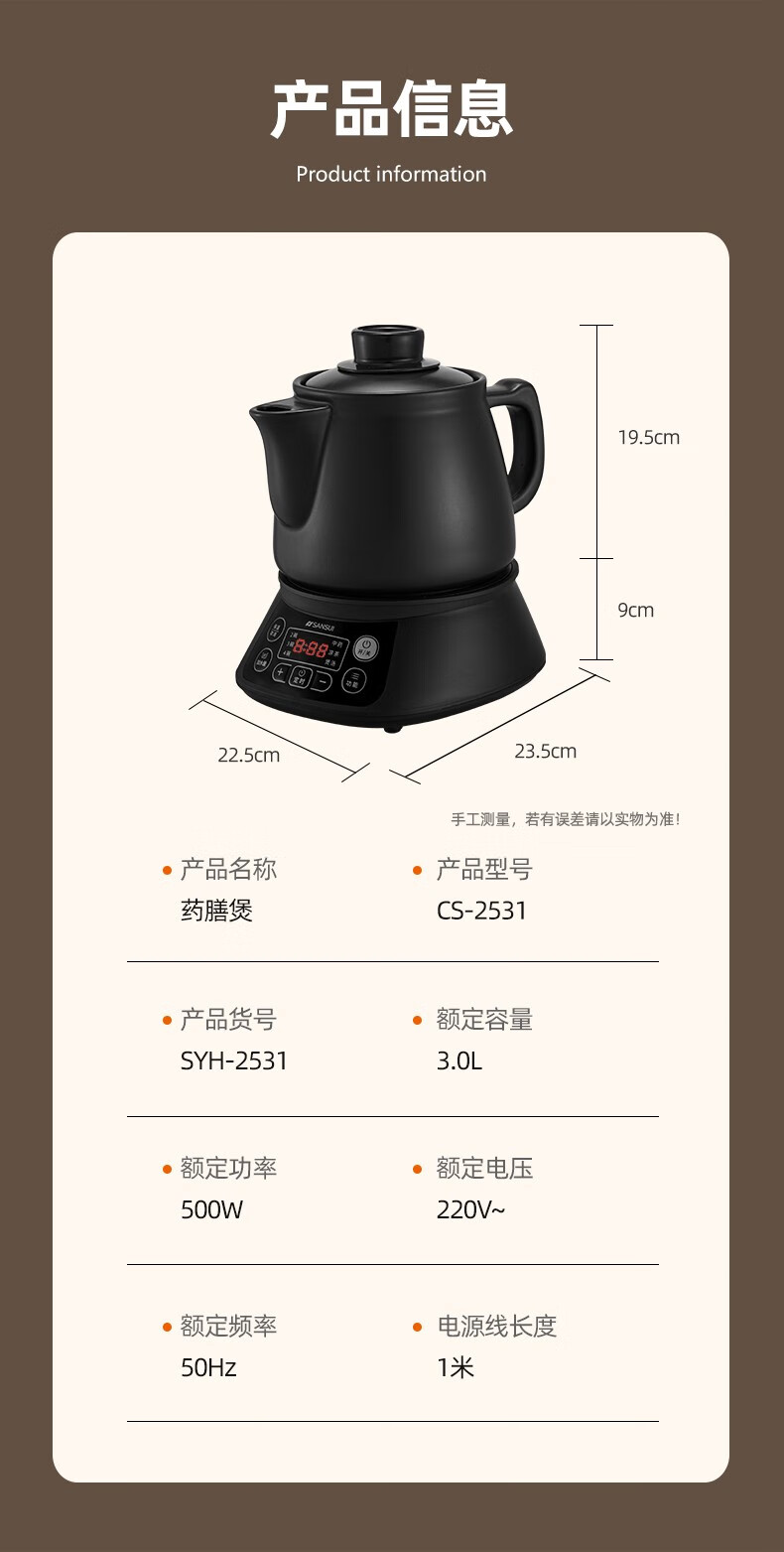 山水(SANSUI)3L养生药膳煲SYH-2531