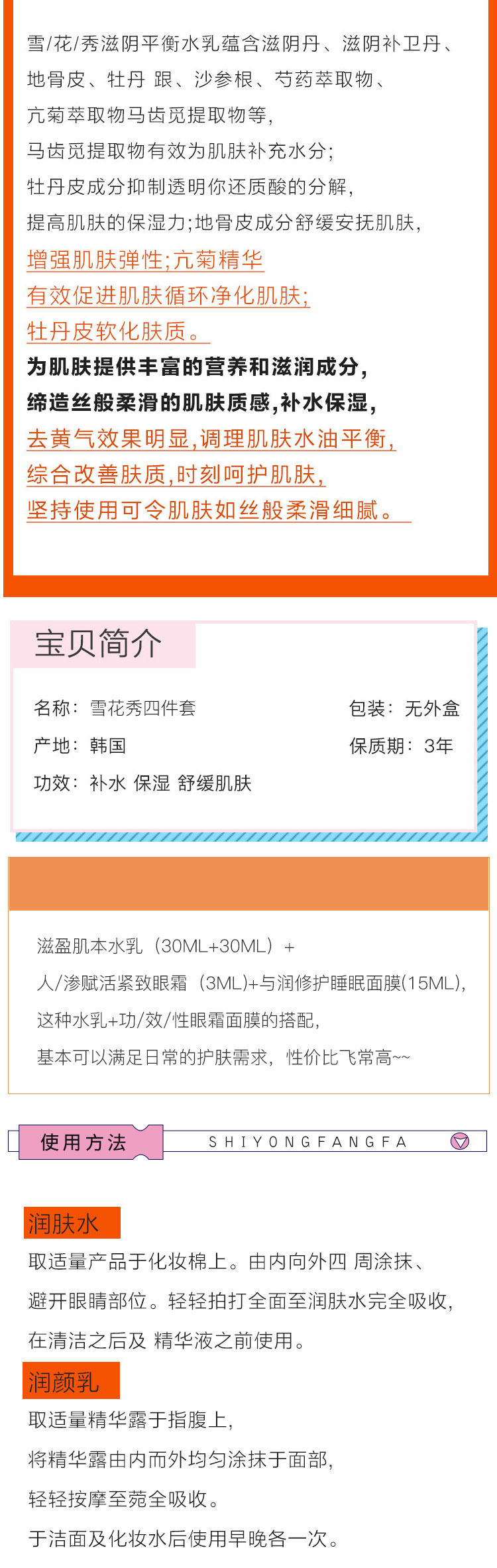 包邮小样雪花秀滋盈肌本润颜水润颜各乳30ml 眼霜3ml面膜15ml套装JPY带授权招加盟代理