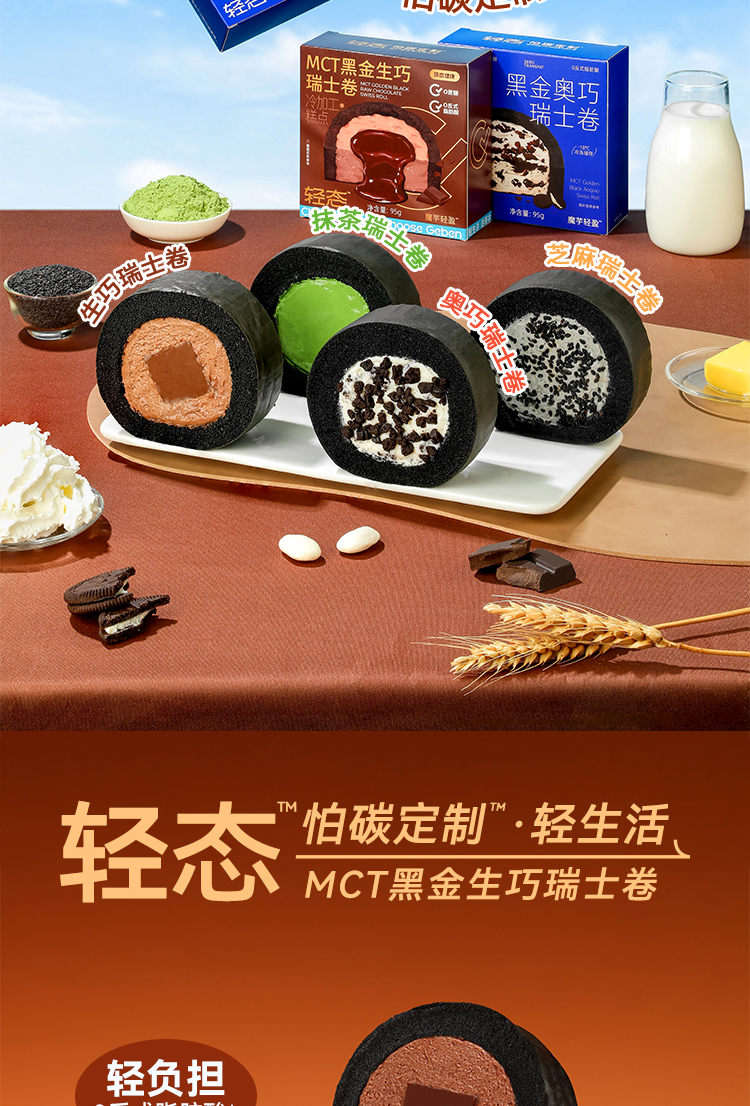 【闪电旗舰店】【预售5天】【冷链产品不支持无理由退货】MCT黑金抹茶/奥巧芝士/芝麻芝士/黑金生巧四口味瑞士卷95g/盒