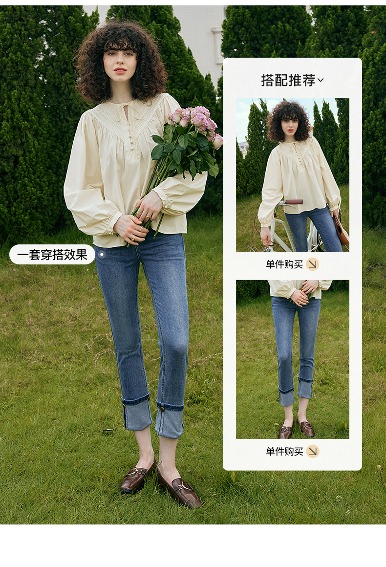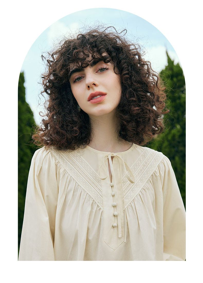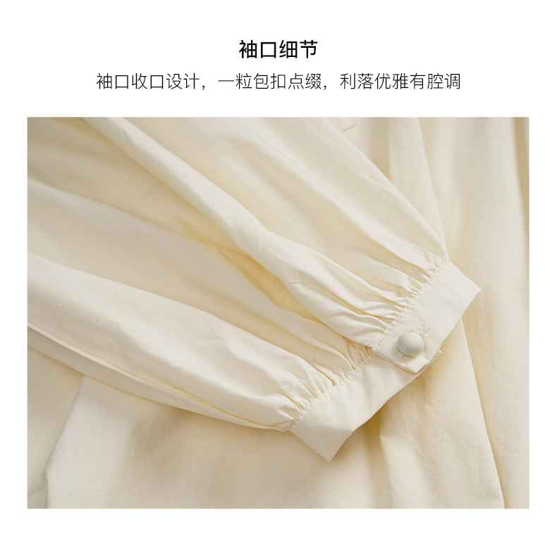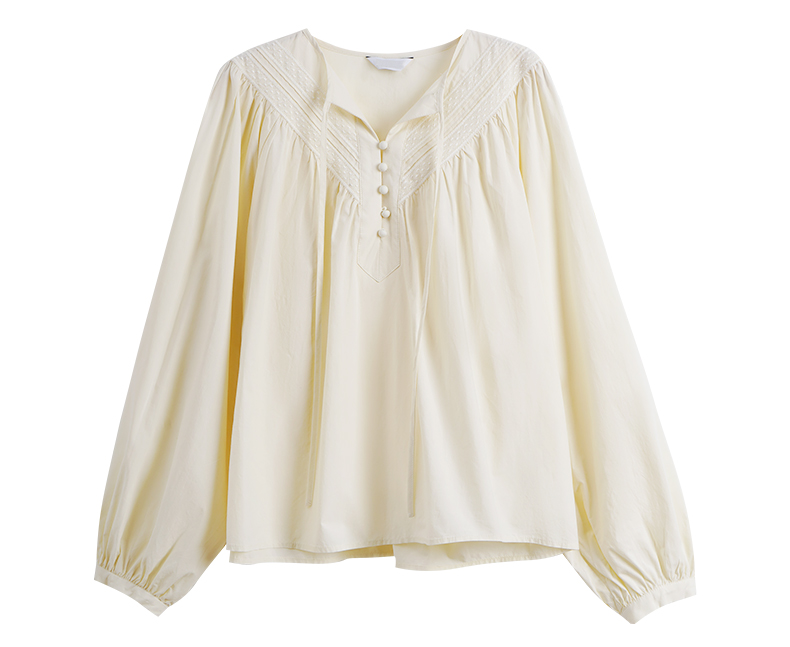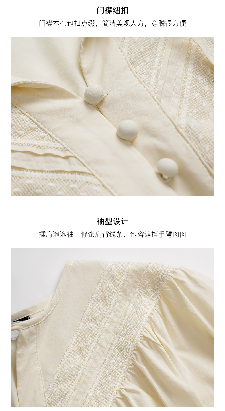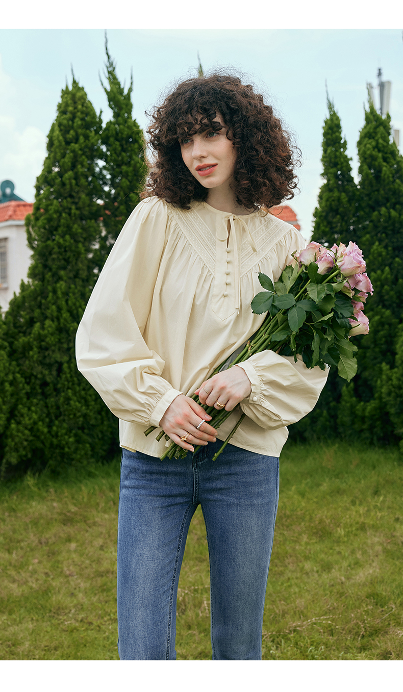 OLrain欧芮儿奶油杏蕾丝雪纺衫女初秋2023年新款宽松法式系带小衫