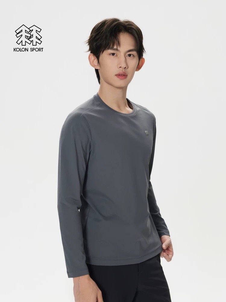 春新款户外休闲男士速干运动微拉绒圆领长袖T恤