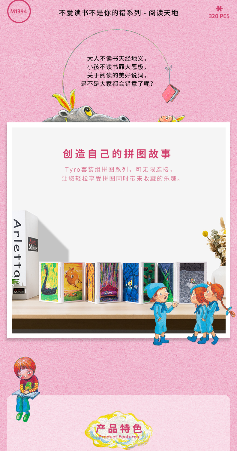 【折扣商品 不退不换】320片 套装拼图 塑料拼图 M1394 不爱读书不是你的错系列- 阅读天地