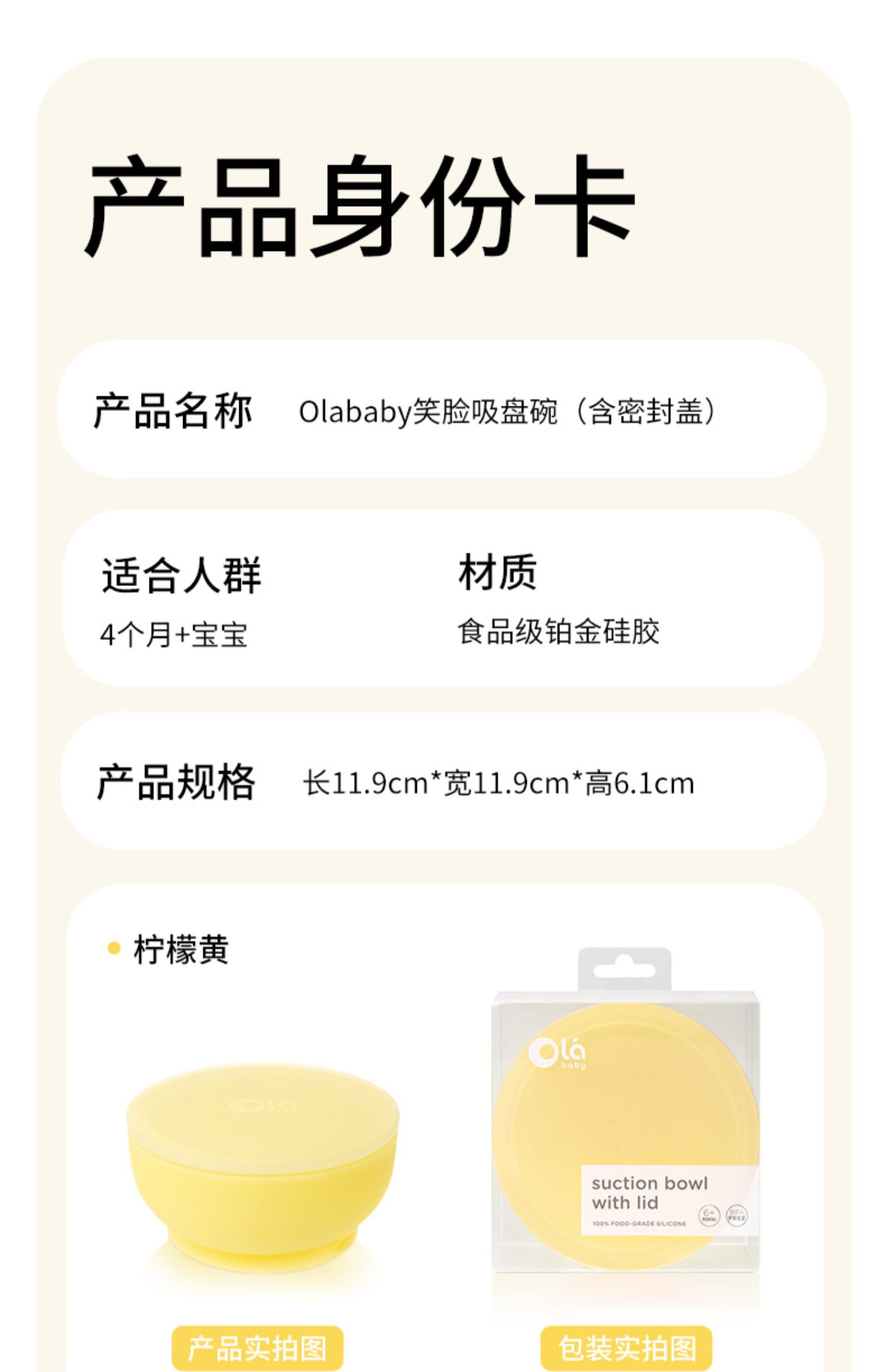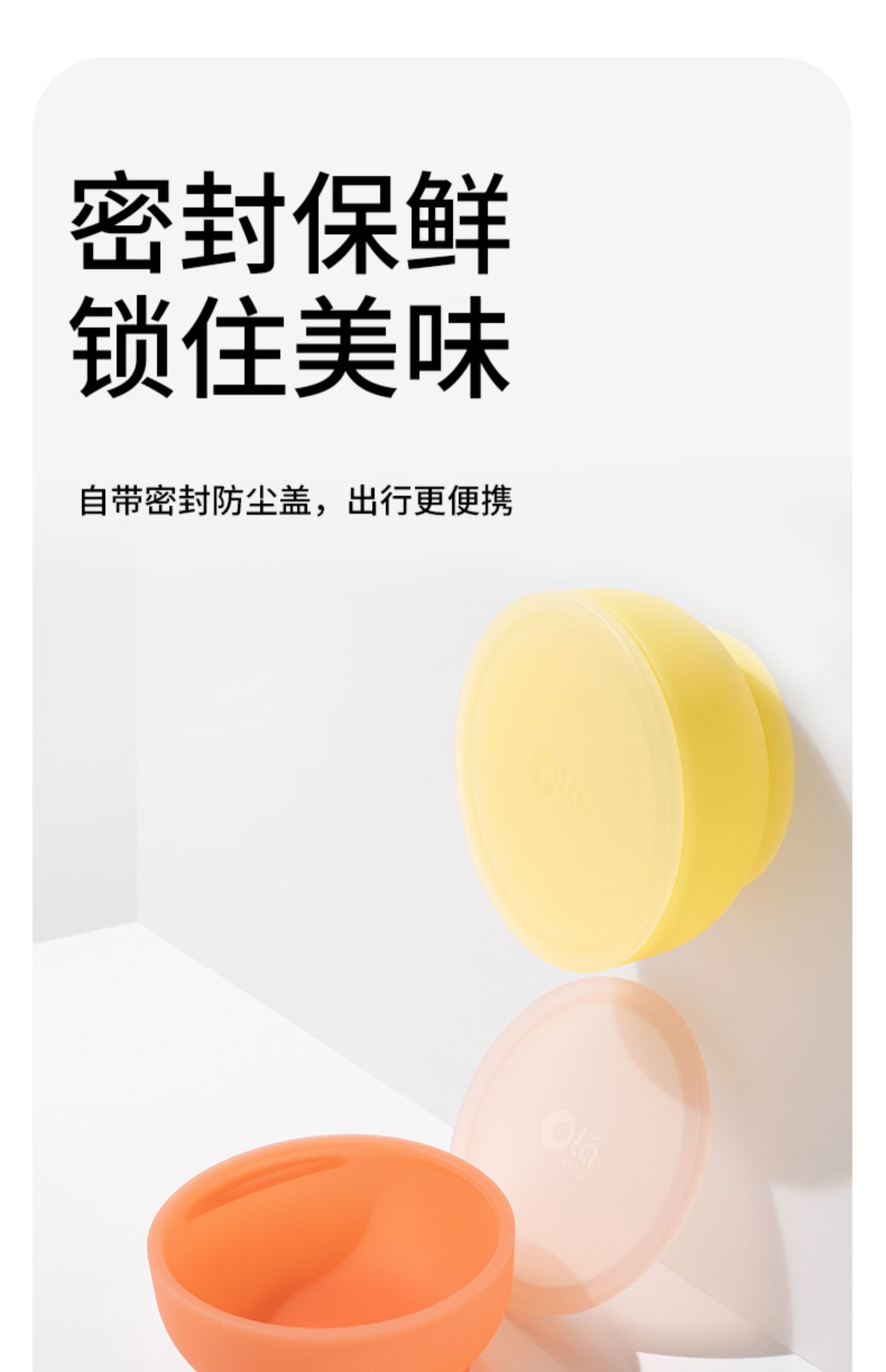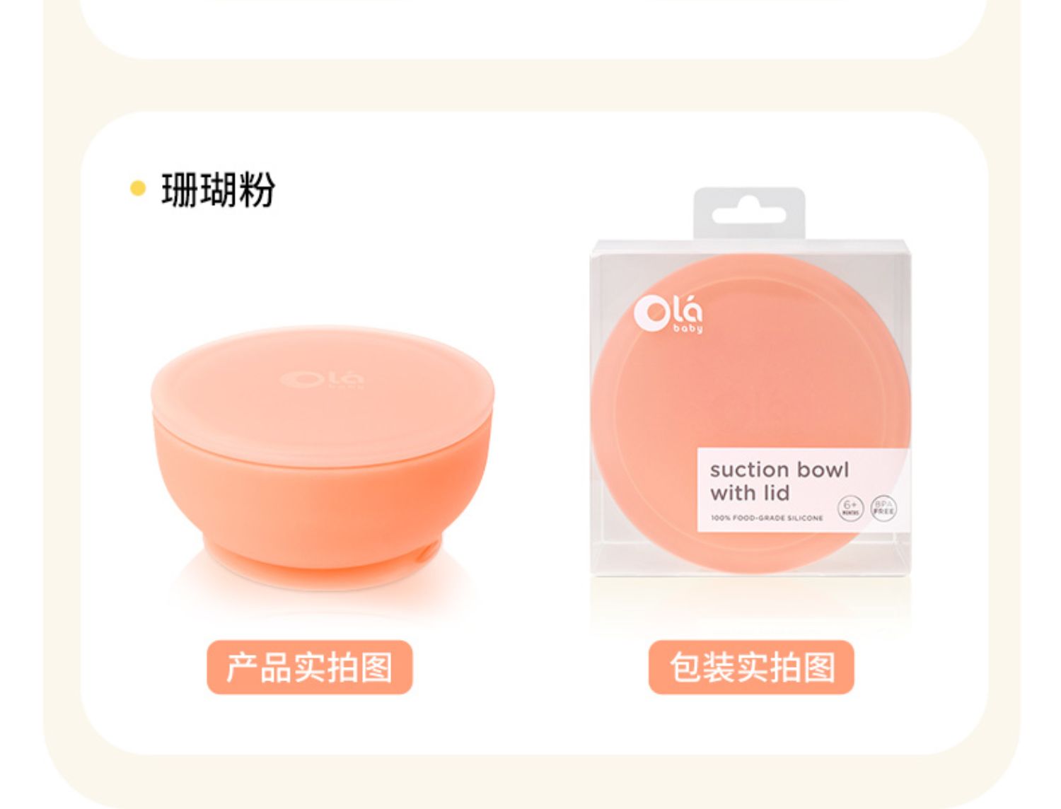 *Olababy笑脸吸盘碗(含密封盖 可蒸煮) 食品级铂金硅胶 辅食好工具(餐具属个人卫生产品,一经拍下不支持七天无理由退换货)