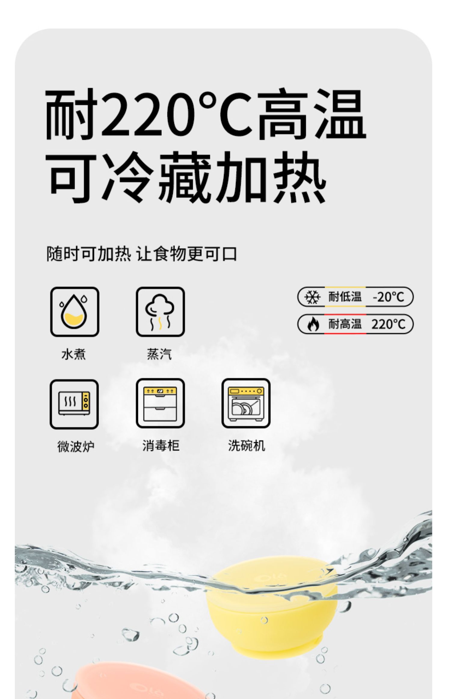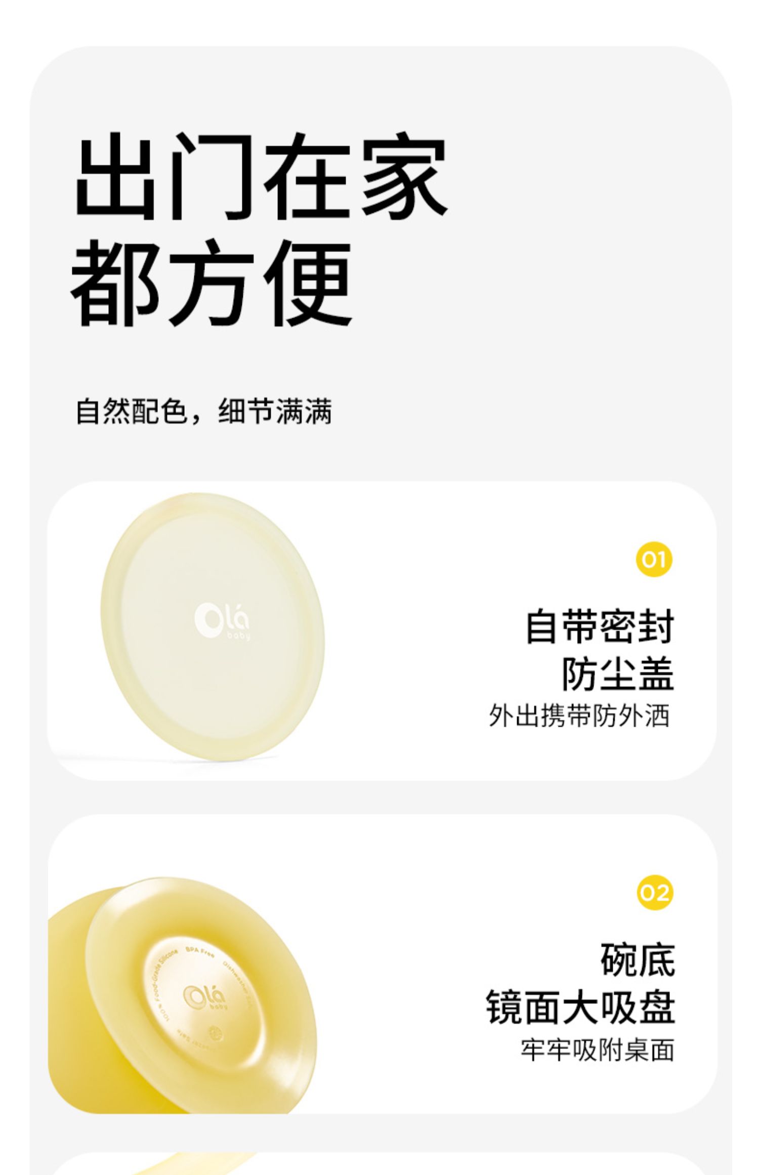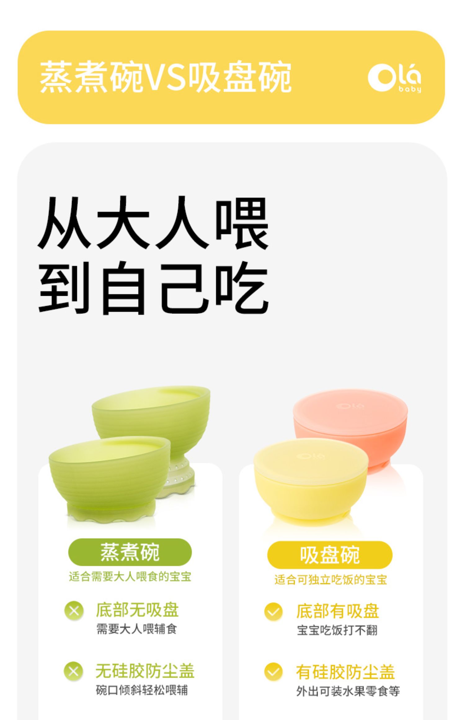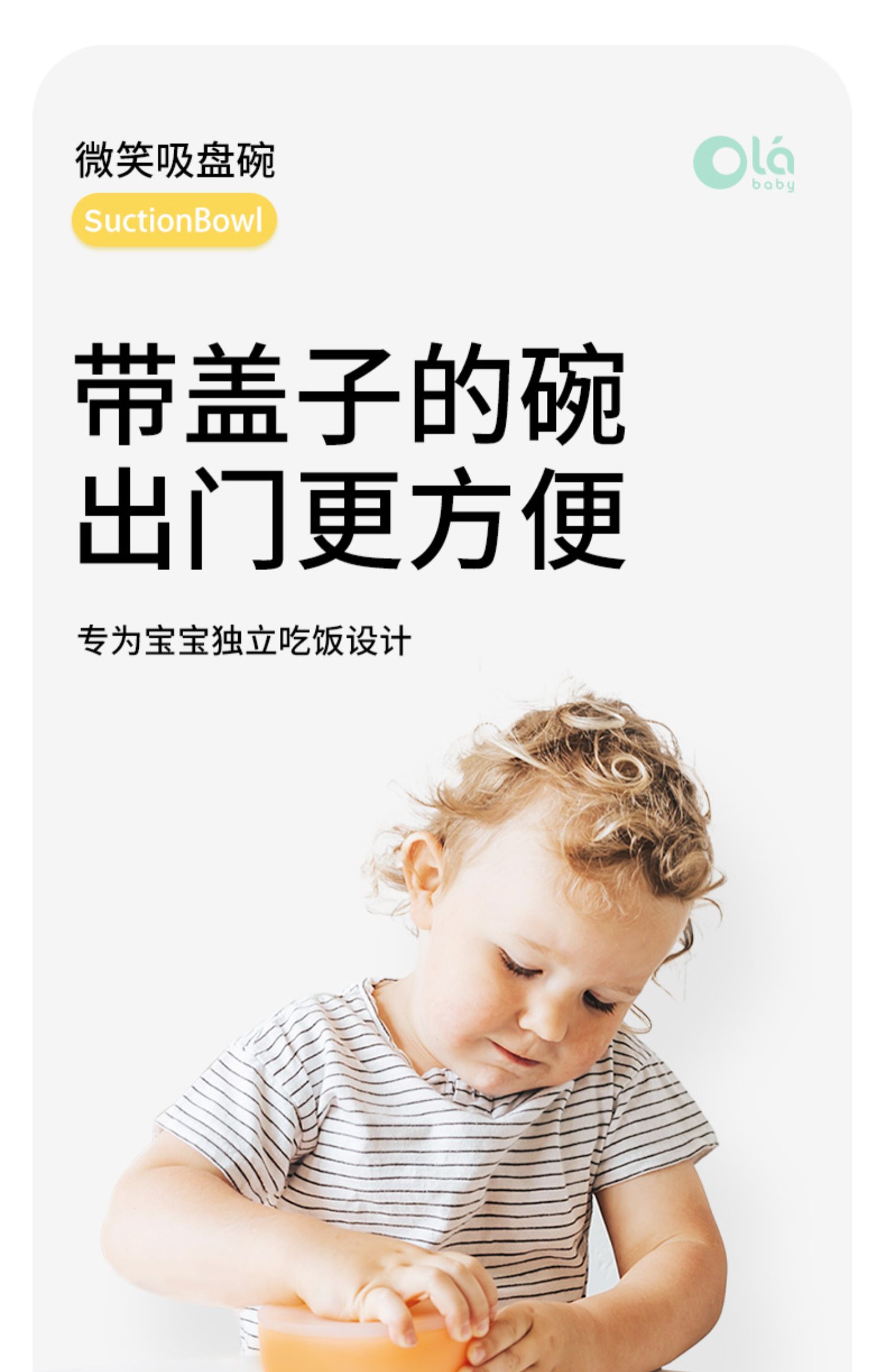 *Olababy笑脸吸盘碗(含密封盖 可蒸煮) 食品级铂金硅胶 辅食好工具(餐具属个人卫生产品,一经拍下不支持七天无理由退换货)