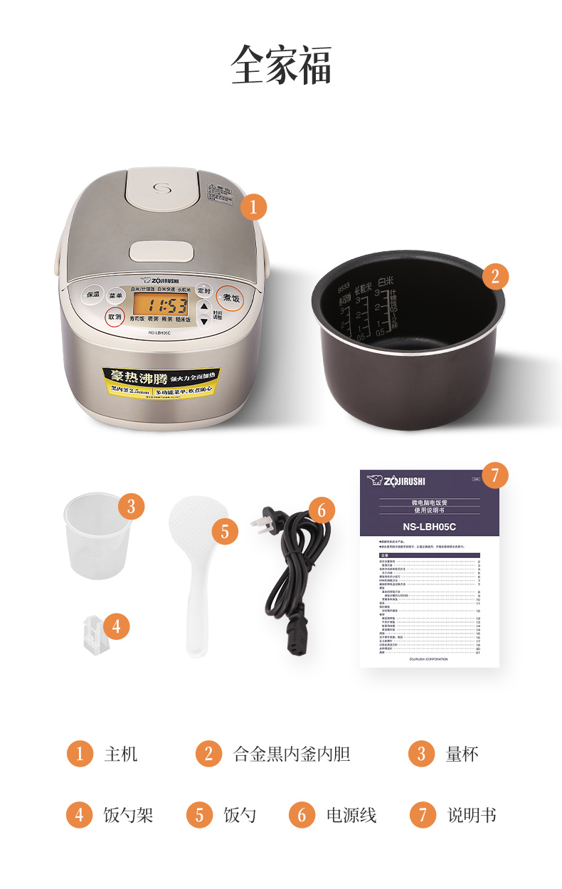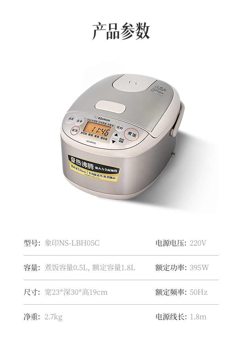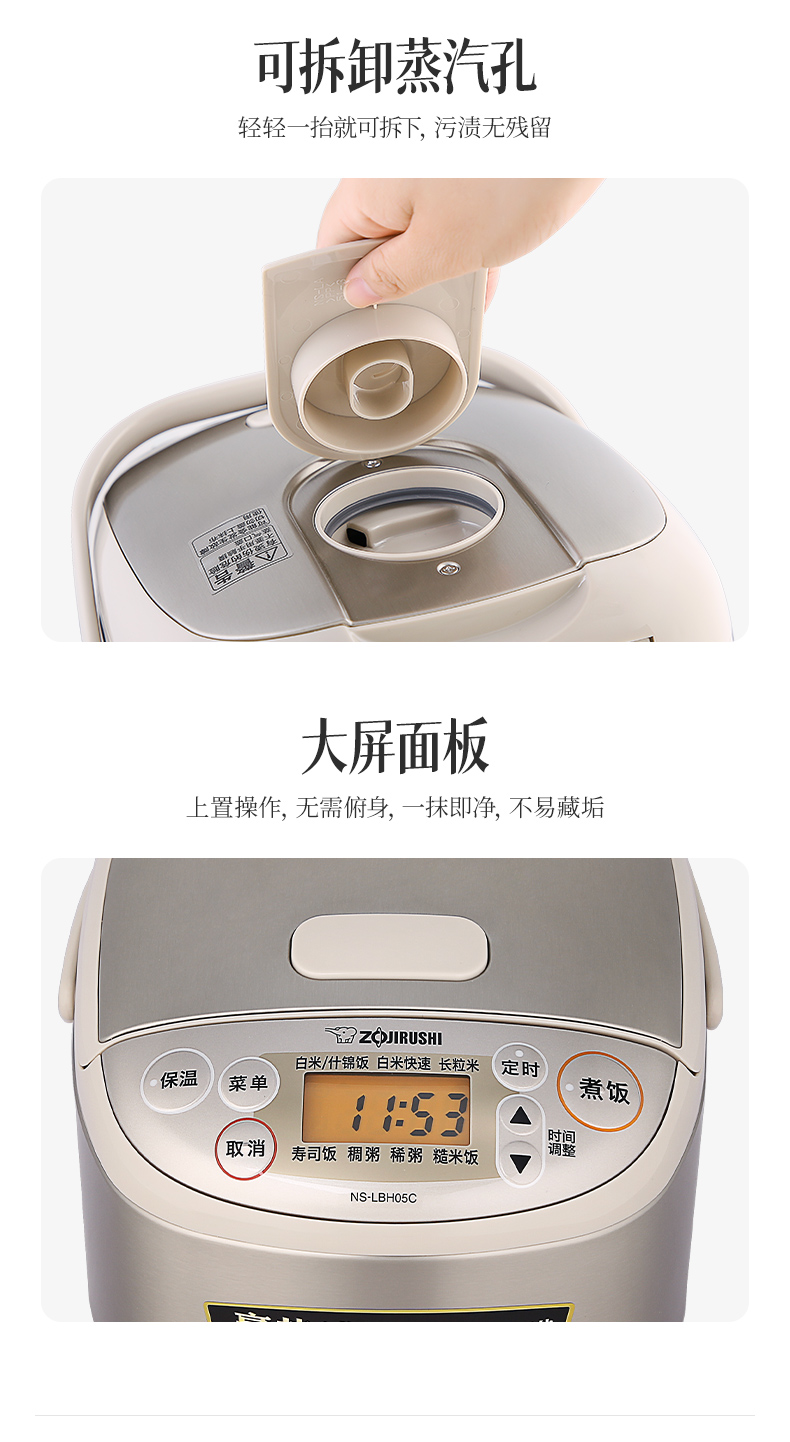 象印(ZO JIRUSHI)电饭煲电饭锅微电脑多功能迷你NS-LBH05C(1.8L 1-3人份)
