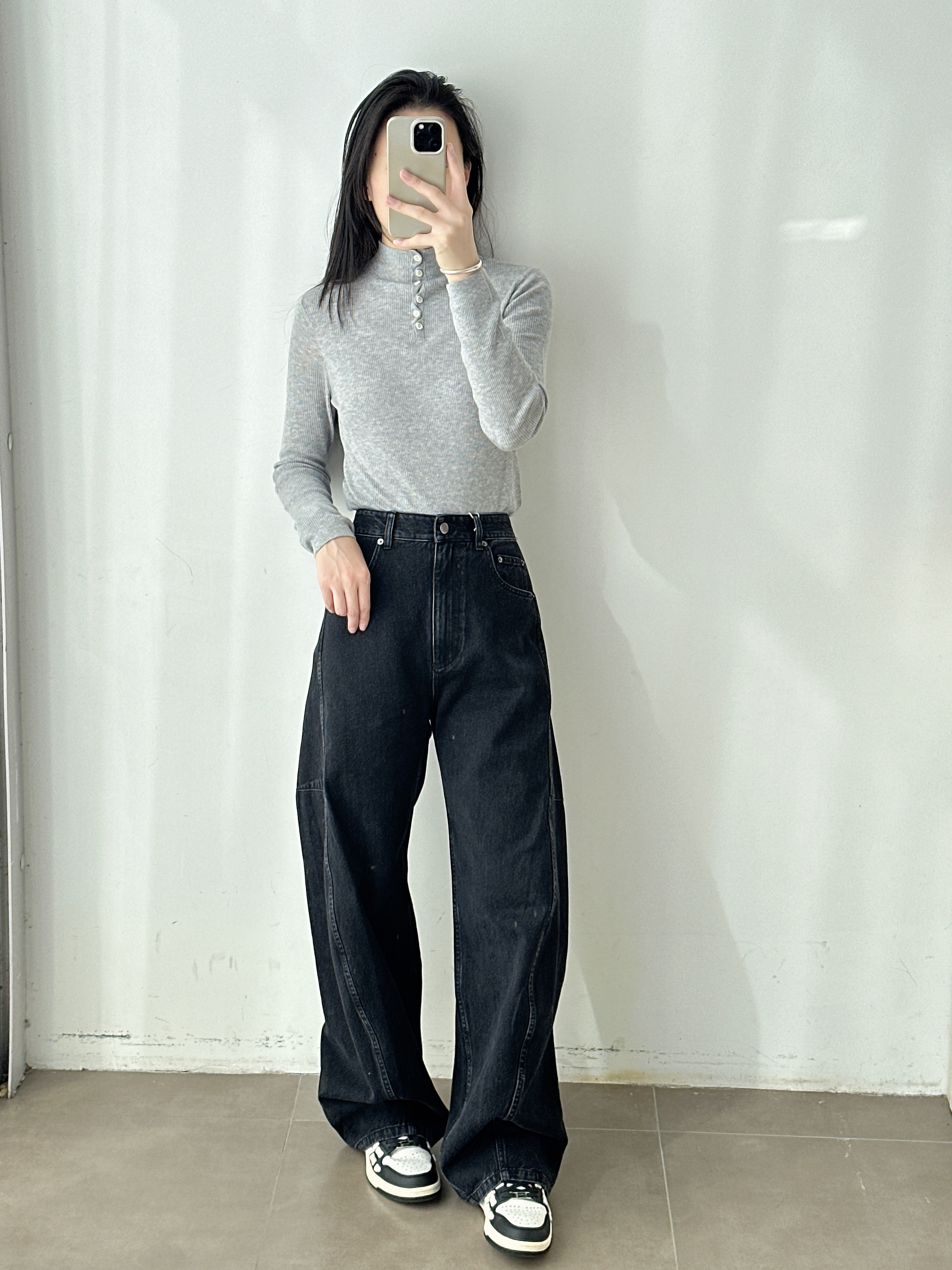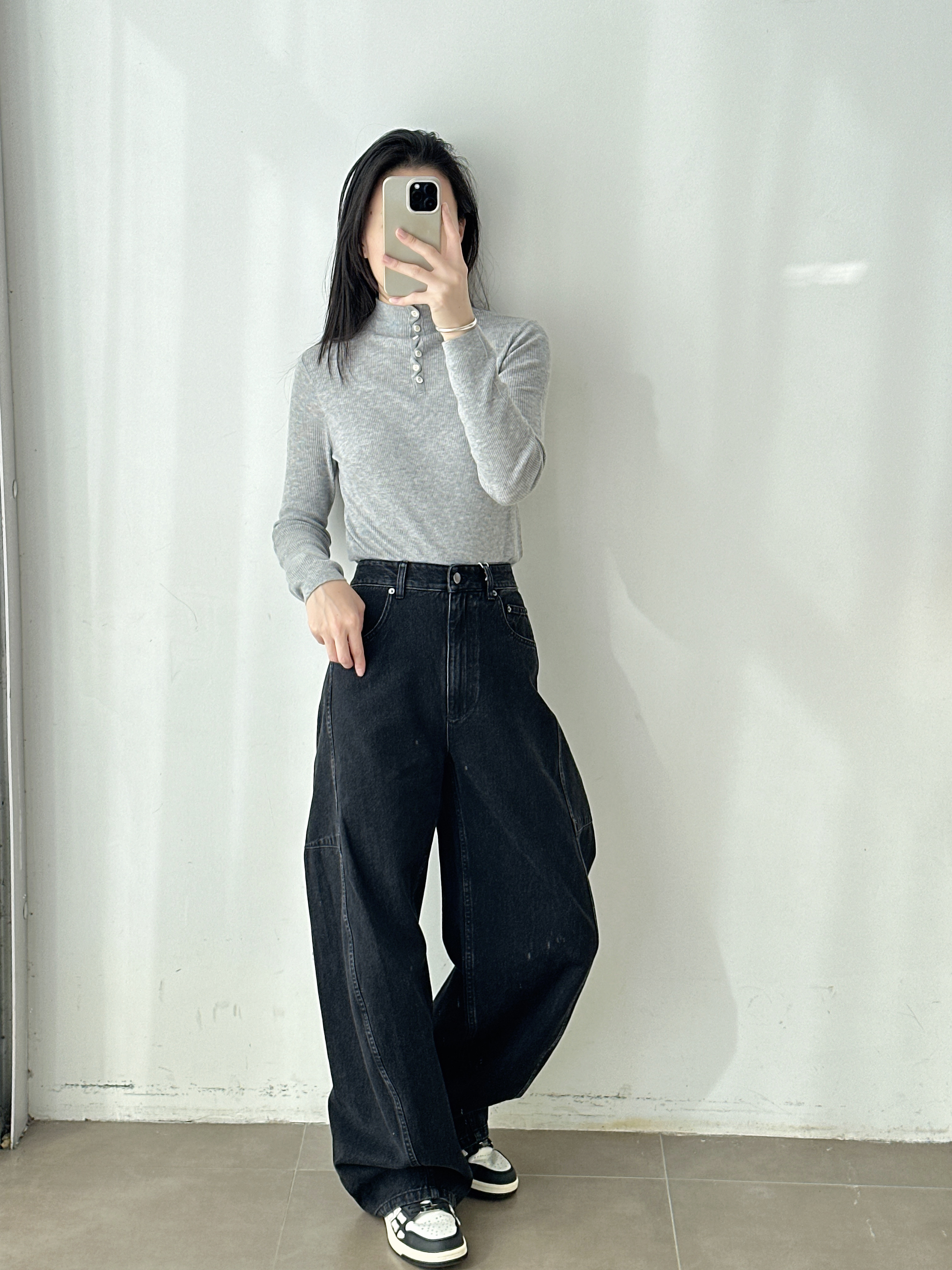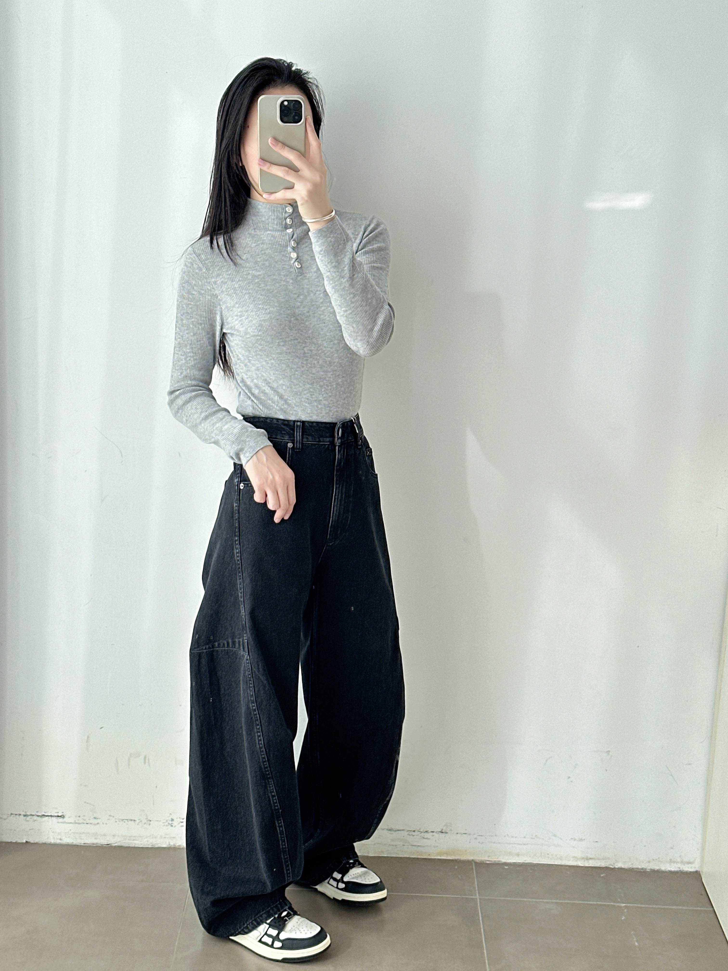 小众设计感半高领羊毛针织衫女秋冬新款纽扣修身弹力内搭打底上衣