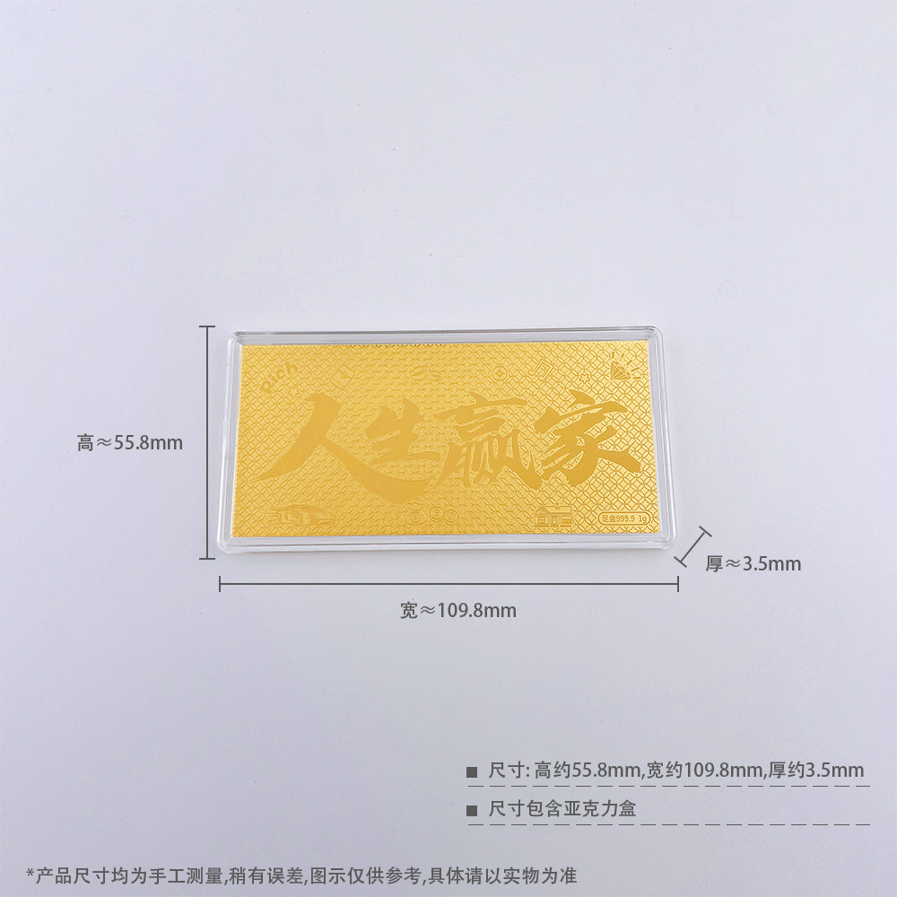 【限时克减150元】【1克】足金999.9 1g实心金条人生赢家吉言金钞(配图片红包、亚克力盒)(ZJJC00182)(预售产品下单后不退款不退货不换货不补差价)