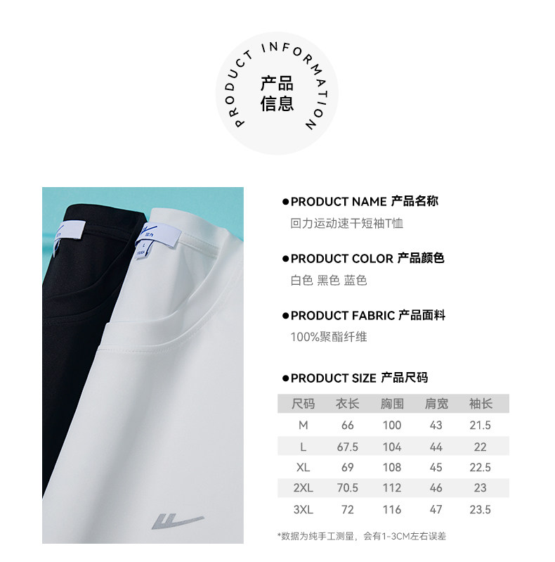回力速干短袖T恤男夏季2025新款健身跑步上衣宽松冰丝运动短袖男