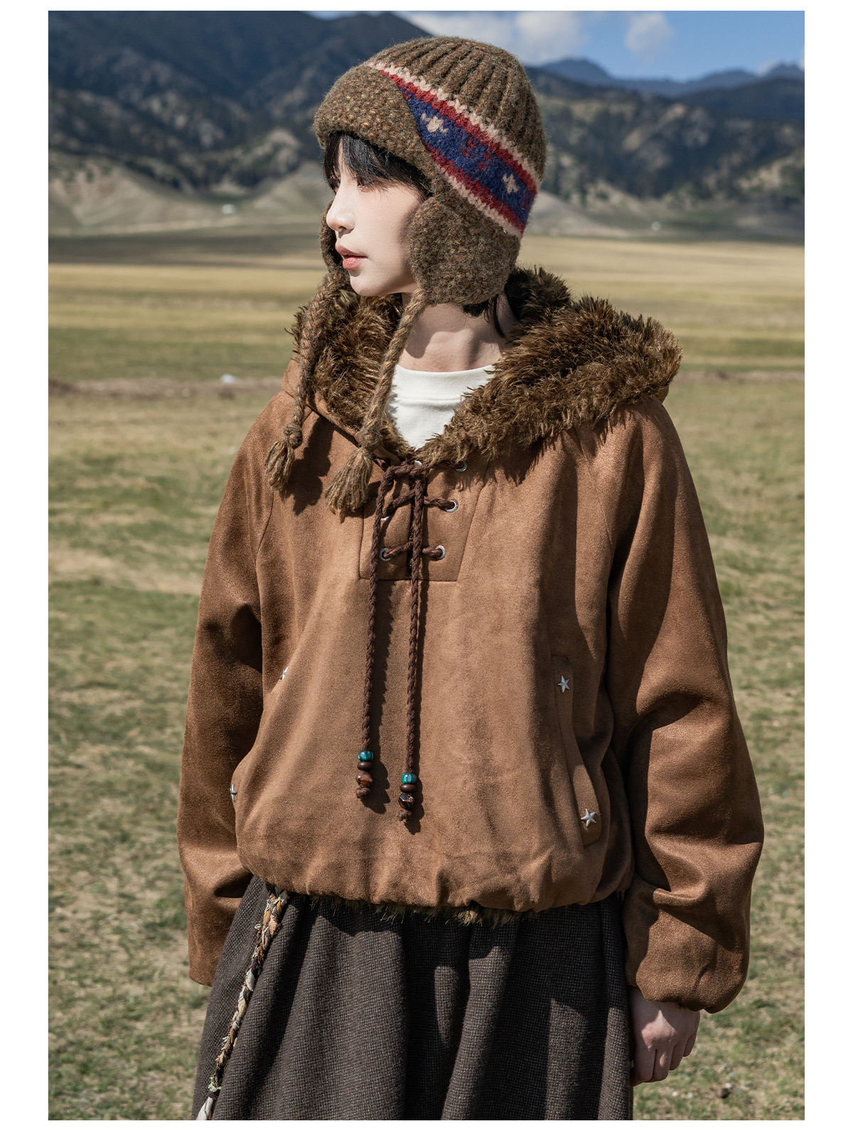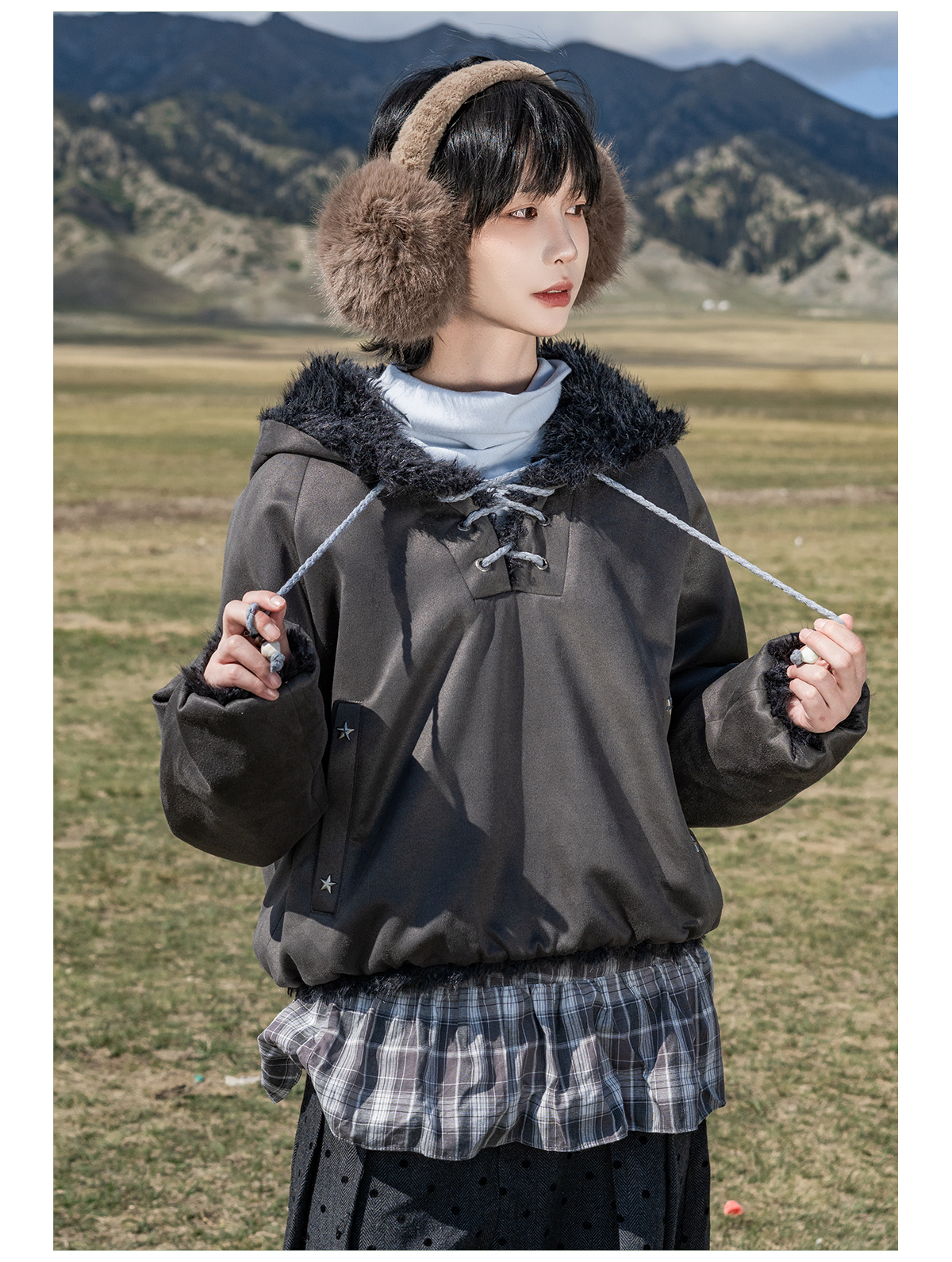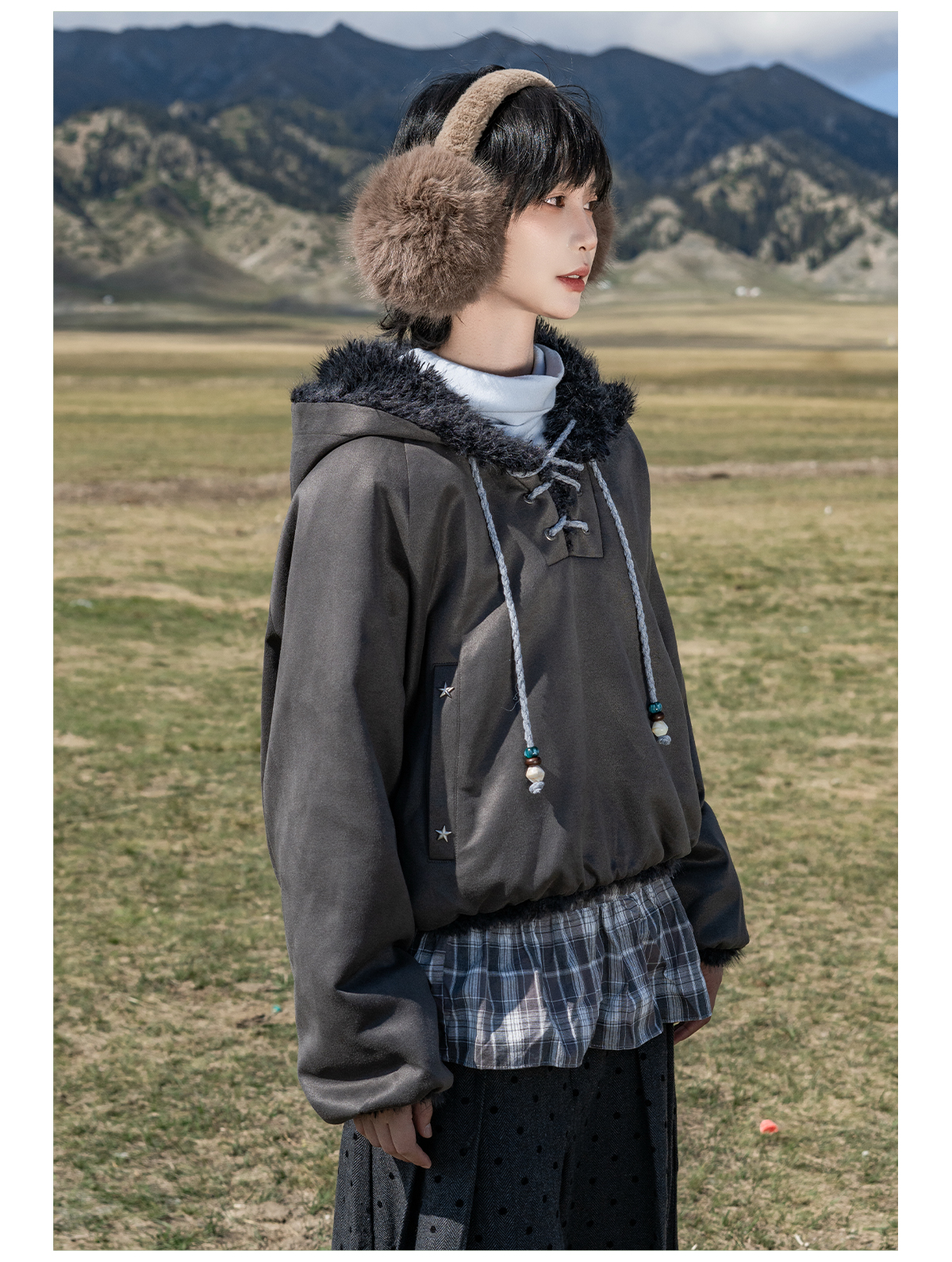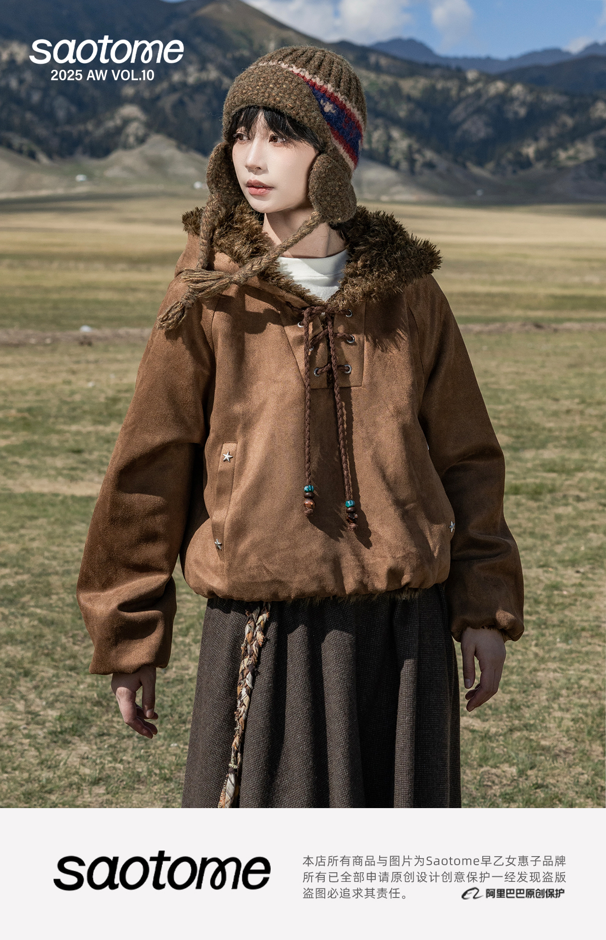 早乙女惠子saotome/STMWY14003/毛领麂皮夹棉卫衣