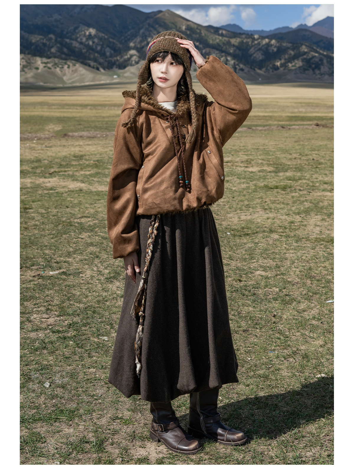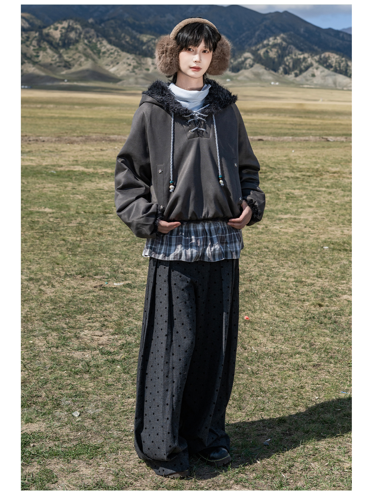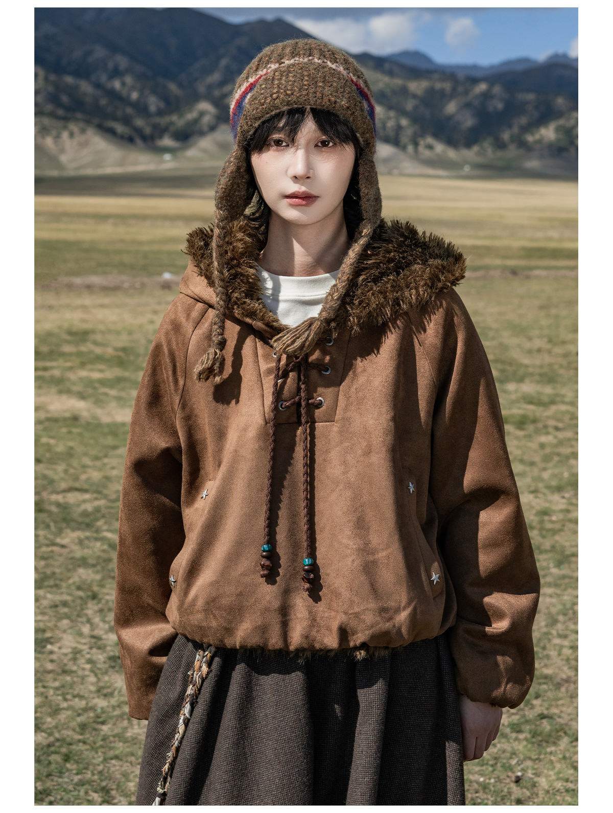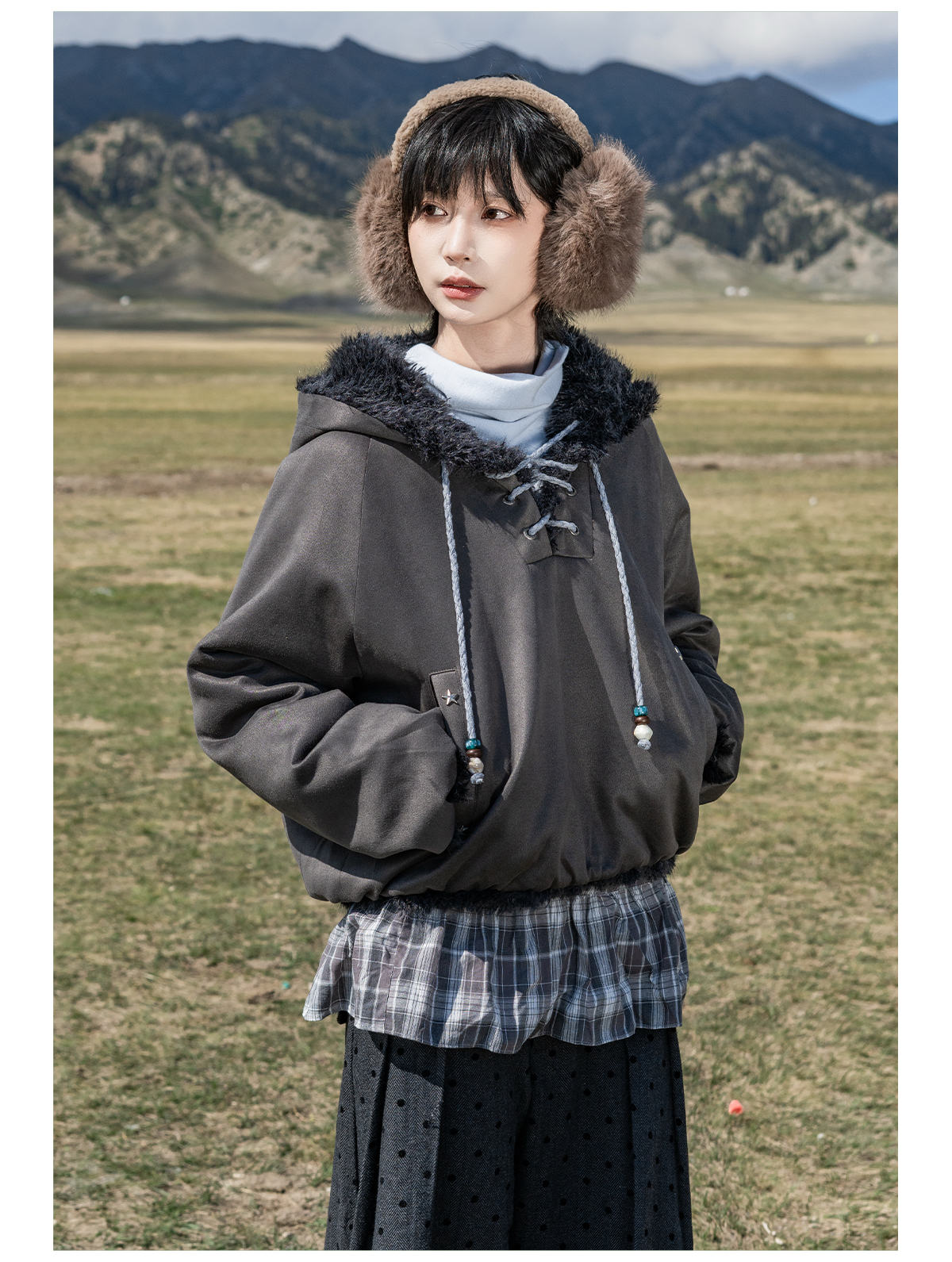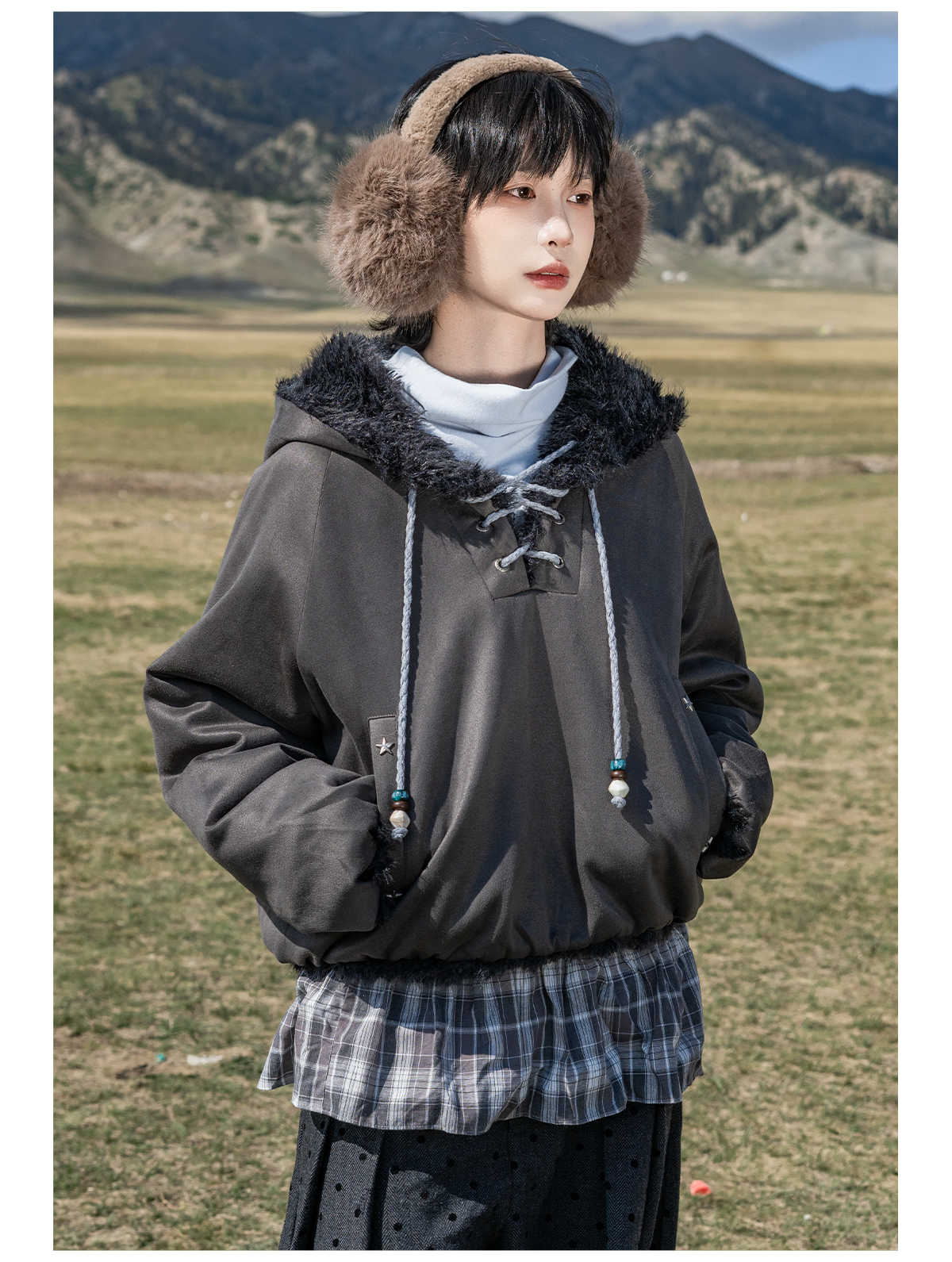 早乙女惠子saotome/STMWY14003/毛领麂皮夹棉卫衣