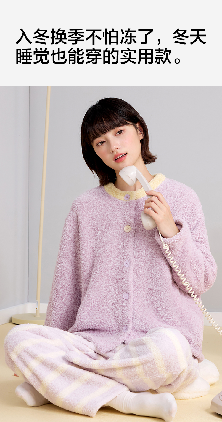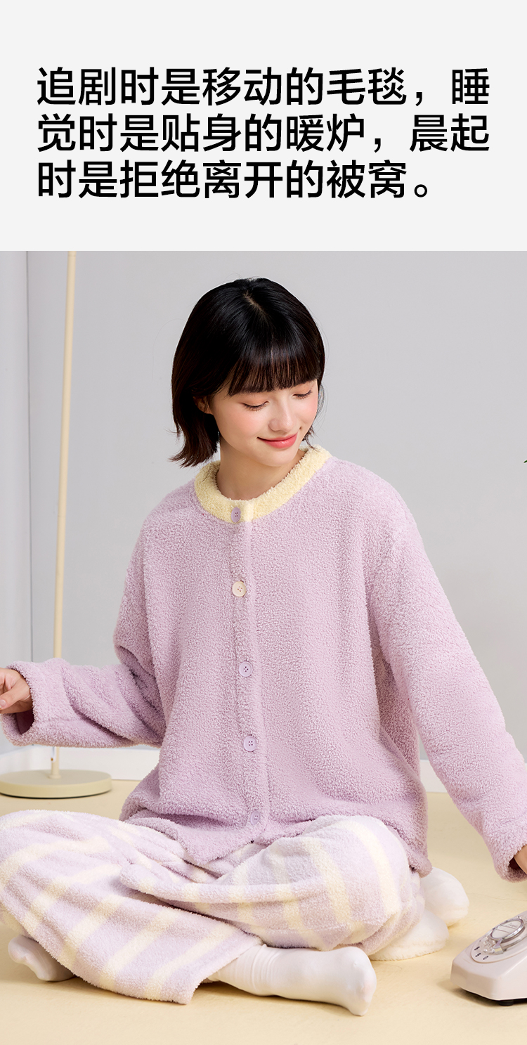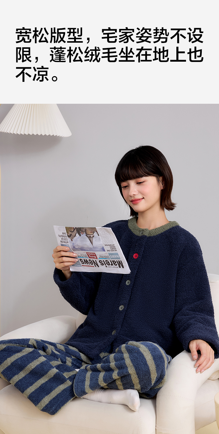 【M-XXL】【有棵树】女士半边绒家居服套装