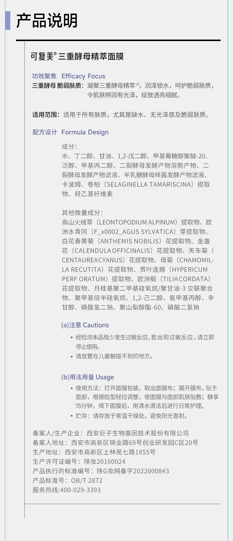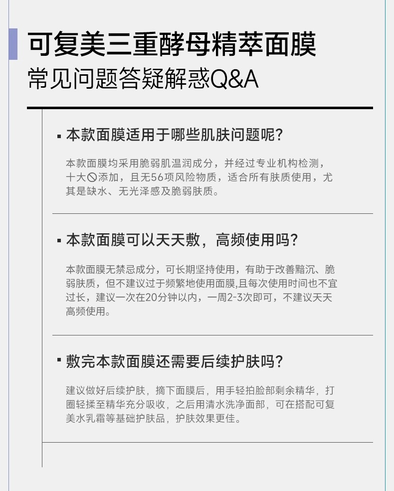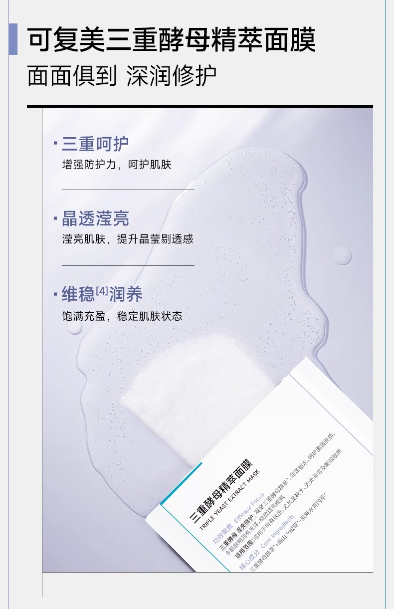 【打包链接】可复美三重酵母精萃面膜补水保湿修护男女贴片面膜1片