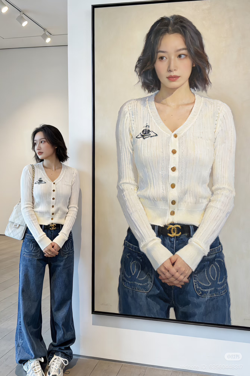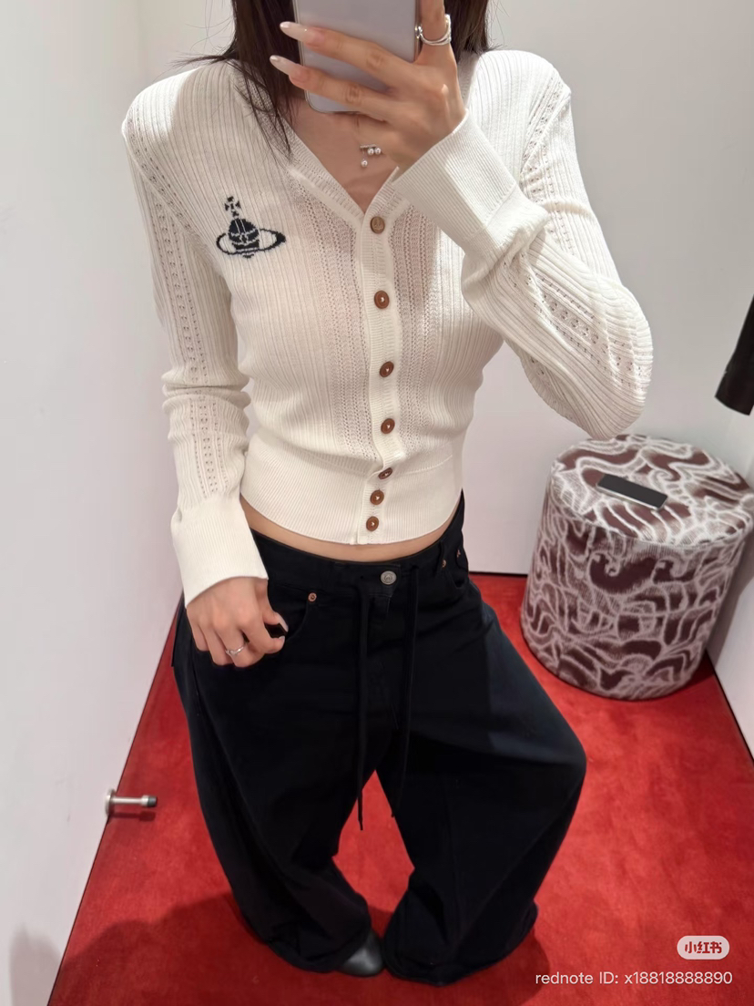 312-6 纯原尾货 土星刺绣 时髦针织小开衫