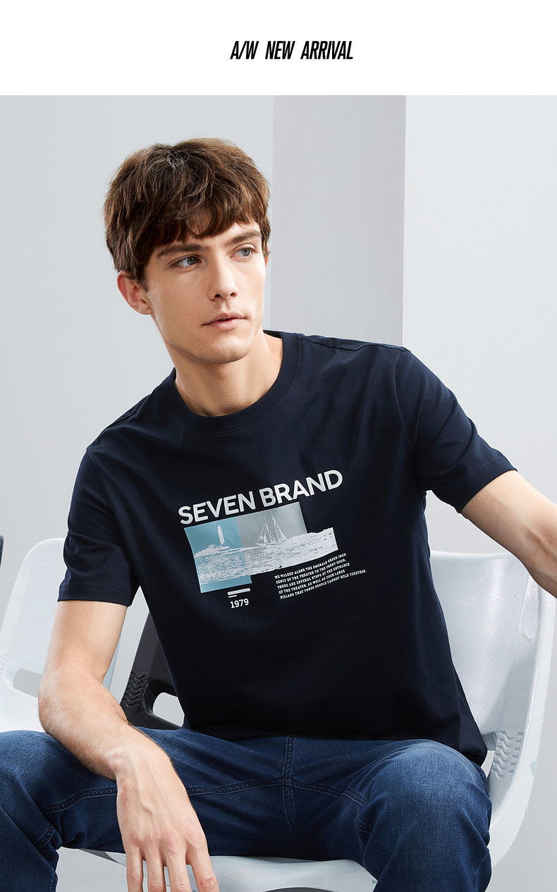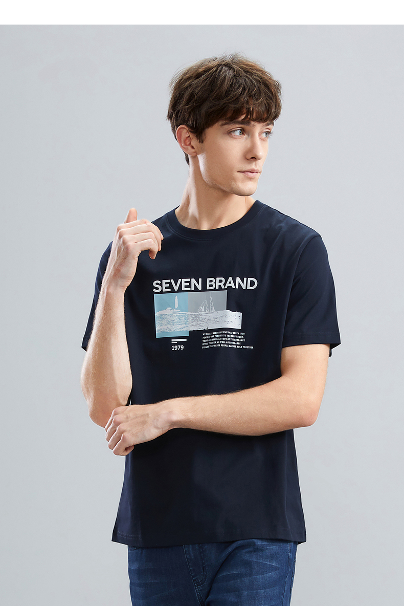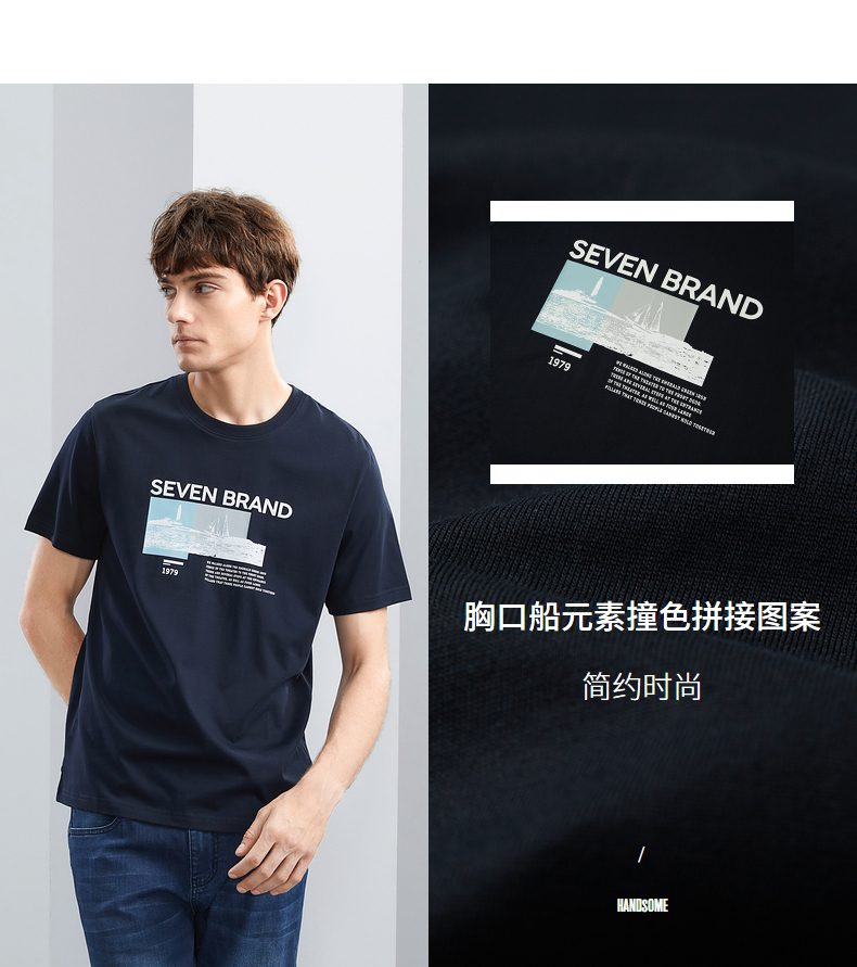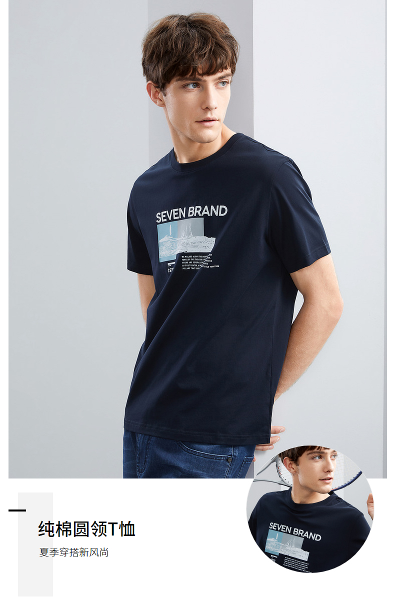 【特价】柒牌男士短袖T恤夏季新品时尚潮流青年撞色纯棉透气圆领上衣124T73120