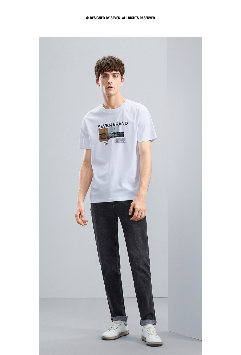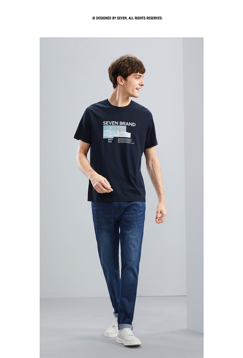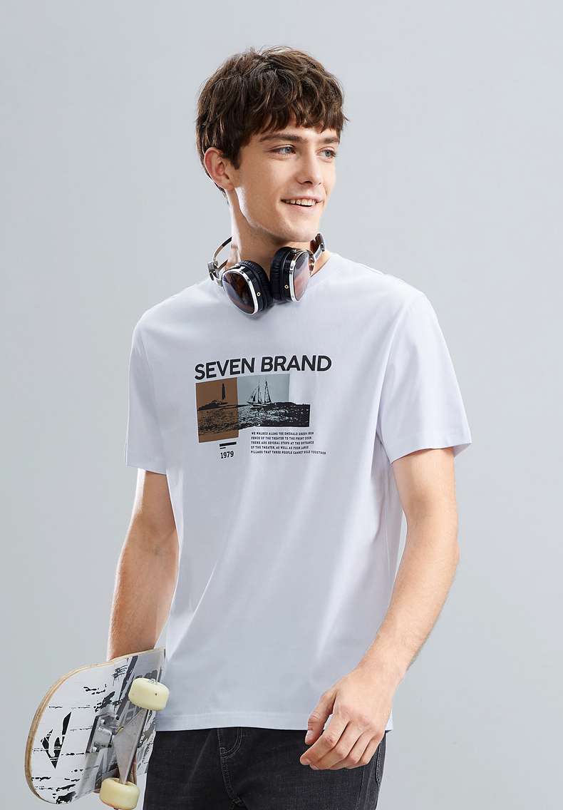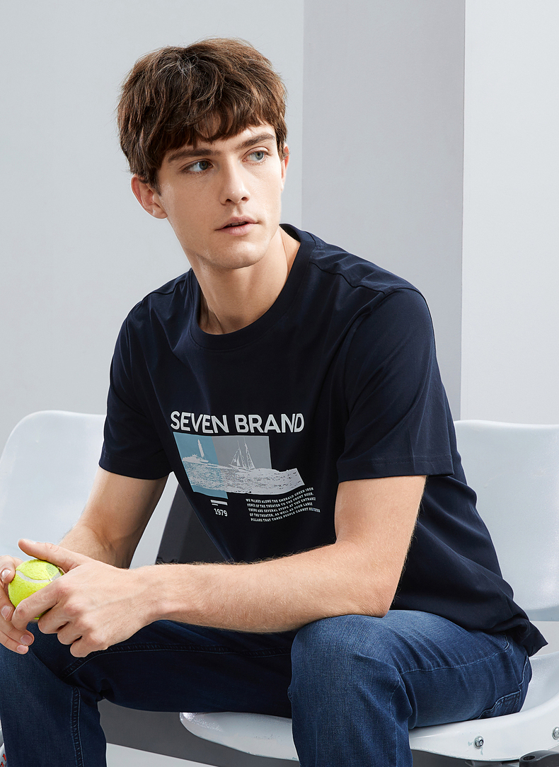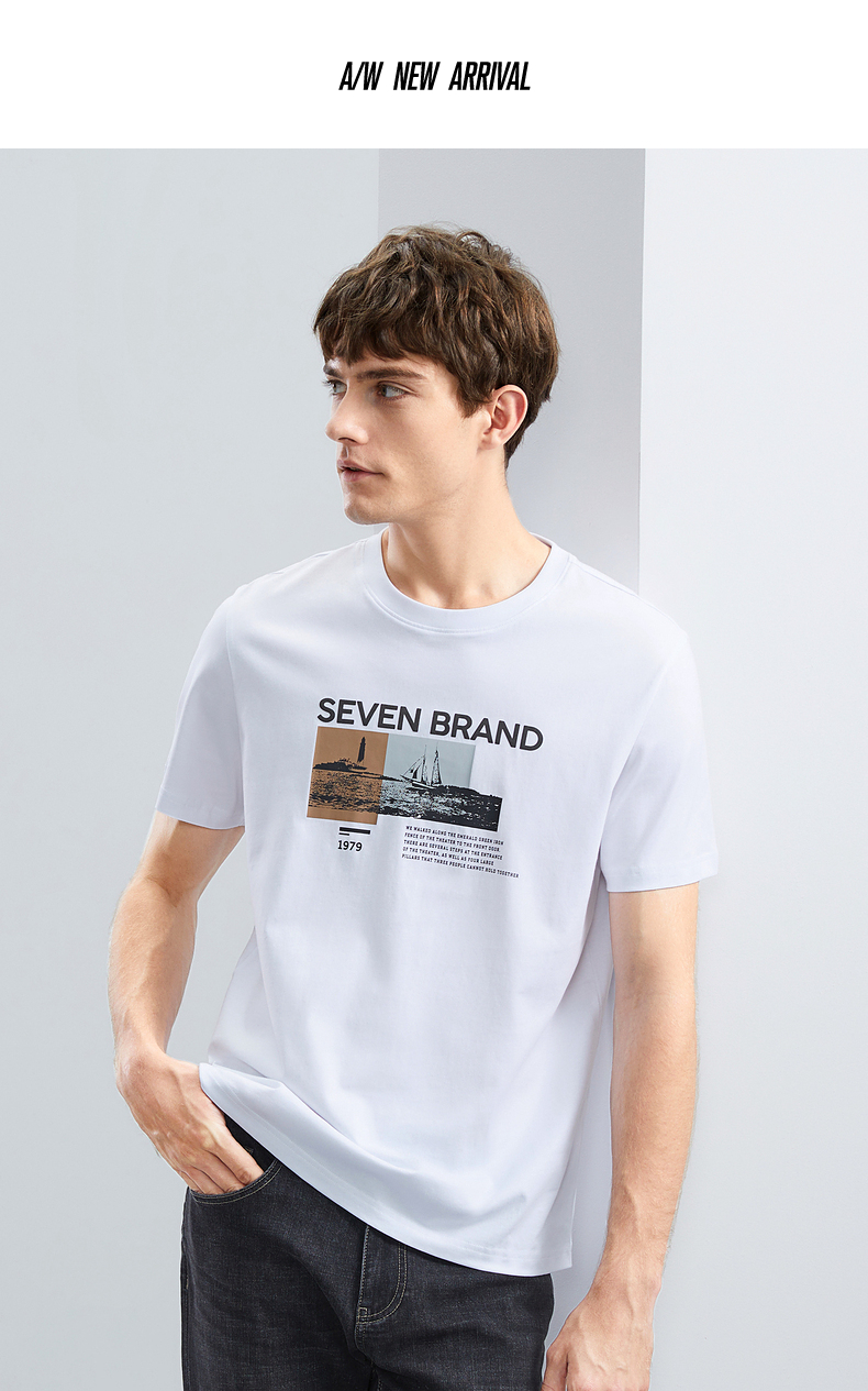 【特价】柒牌男士短袖T恤夏季新品时尚潮流青年撞色纯棉透气圆领上衣124T73120
