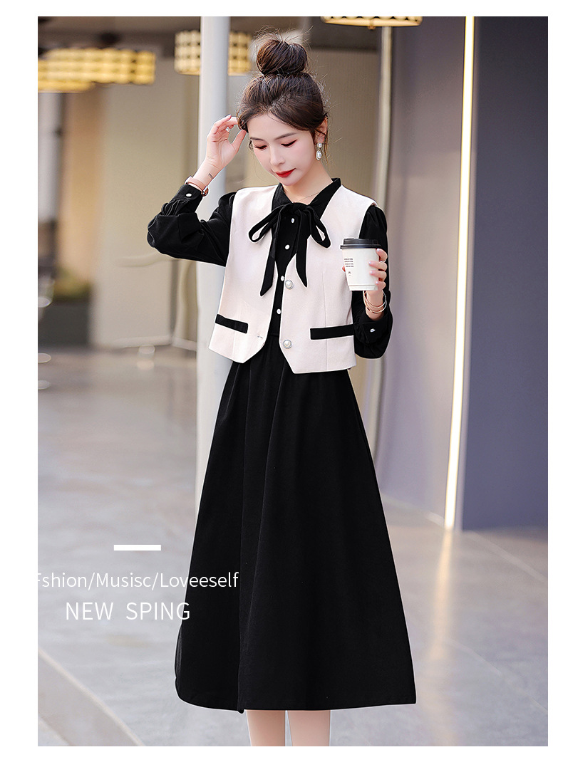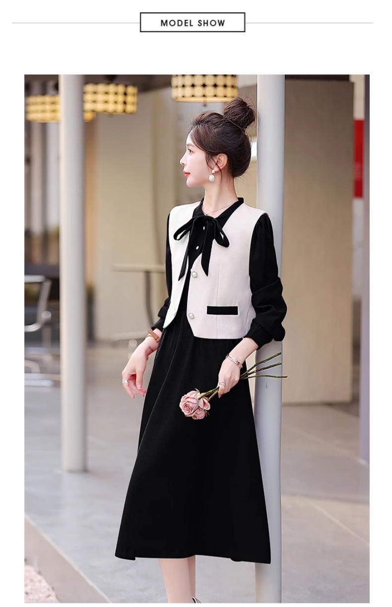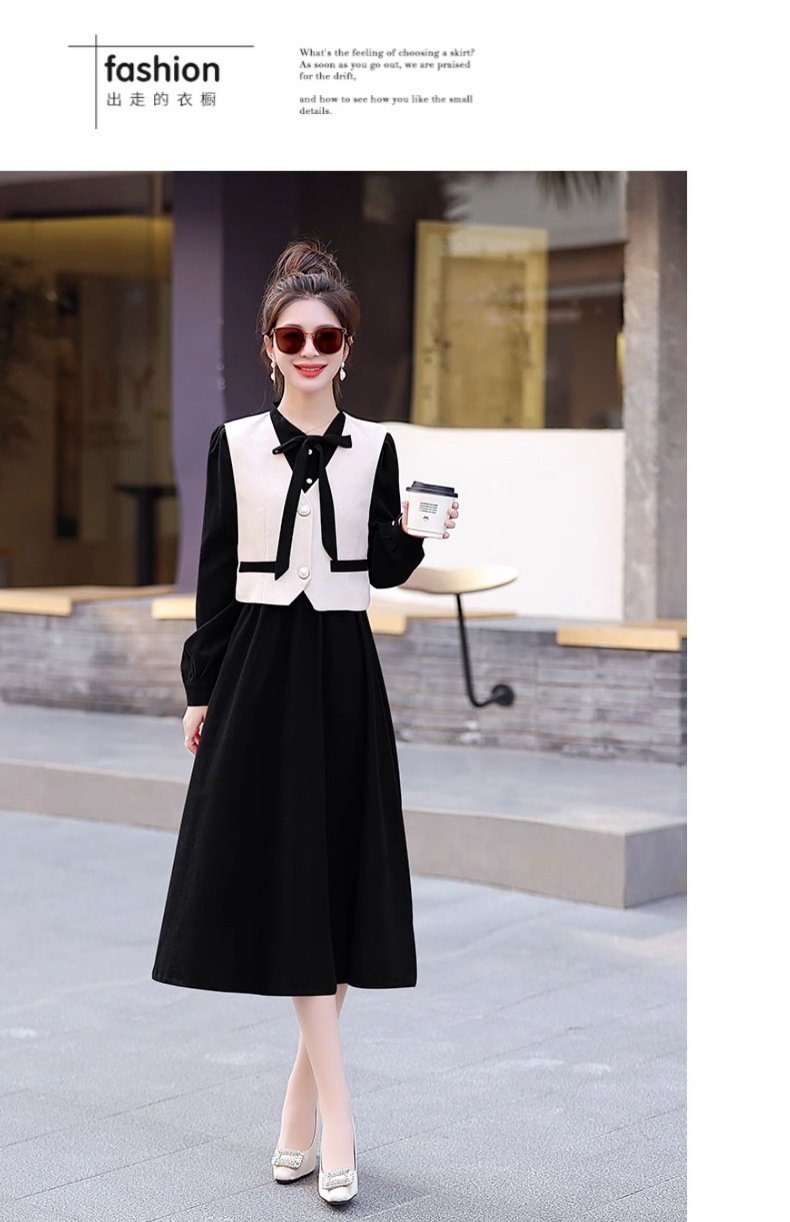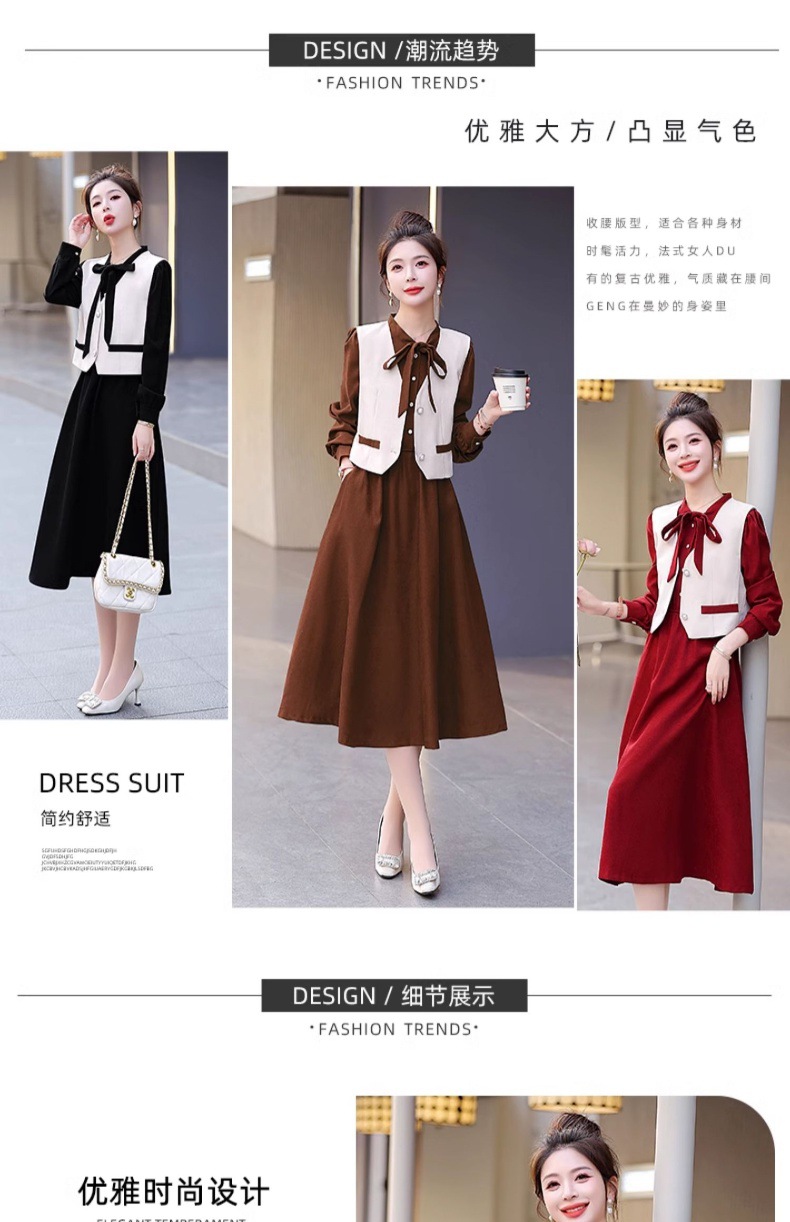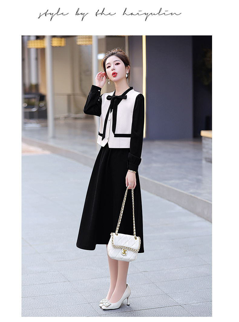 2024新款春季时尚洋气修身显瘦小香风气质长袖裙子两件套连衣裙HR-HMQY5176