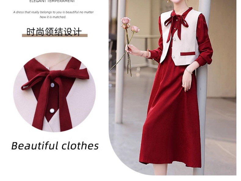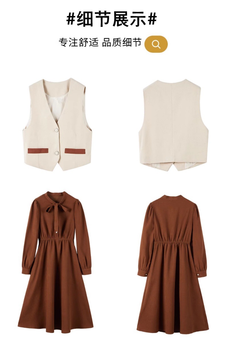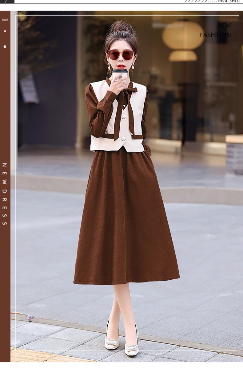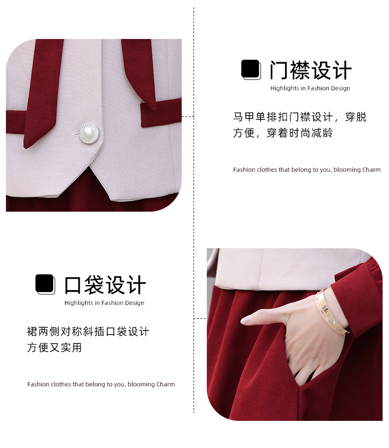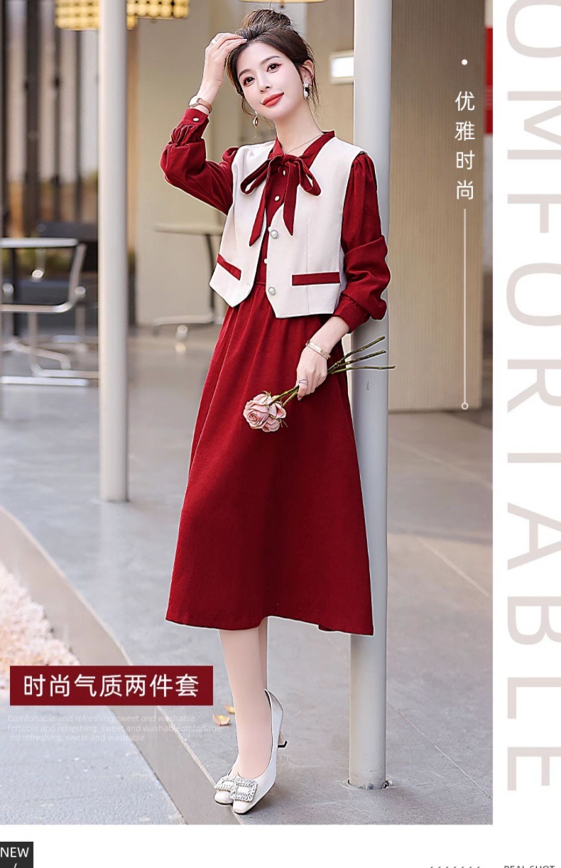 2024新款春季时尚洋气修身显瘦小香风气质长袖裙子两件套连衣裙HR-HMQY5176