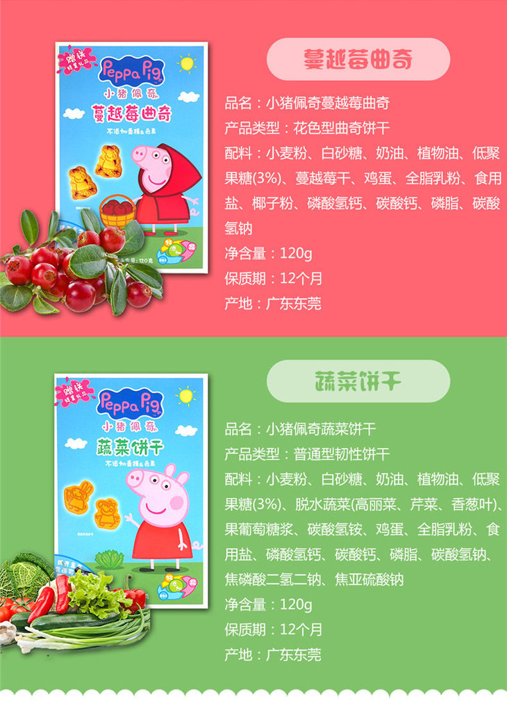亿智小猪佩奇曲奇饼干120g宝宝儿童零食