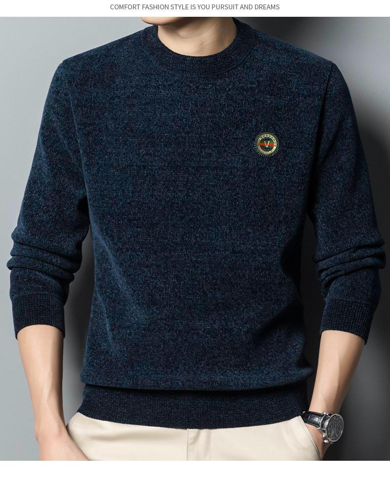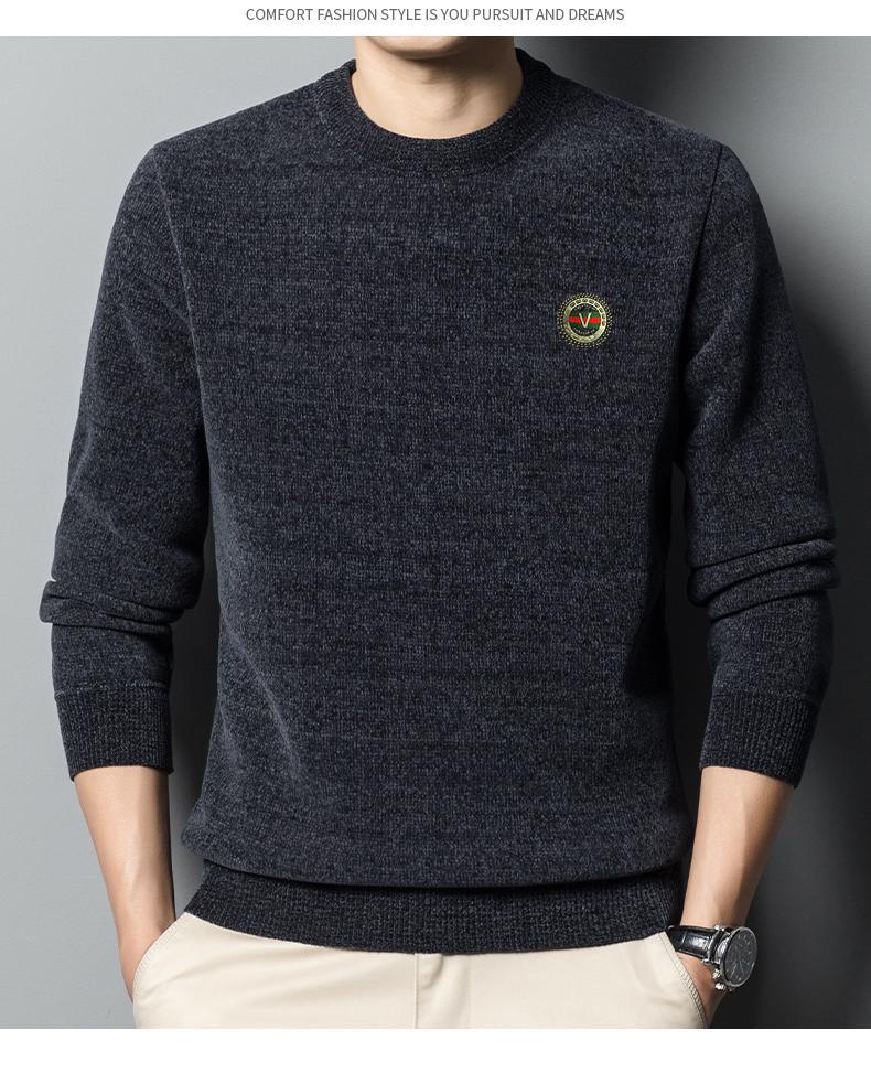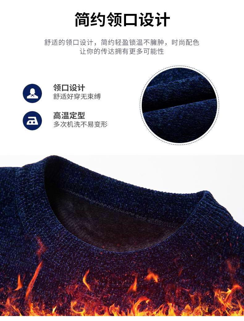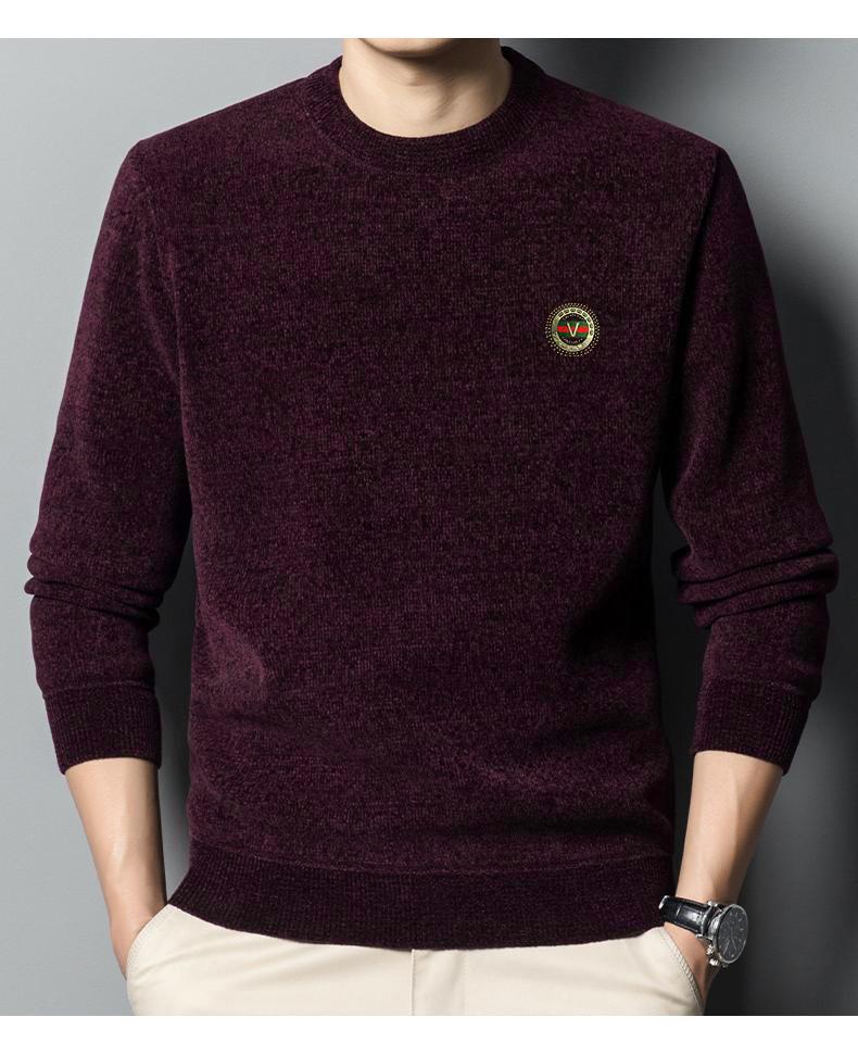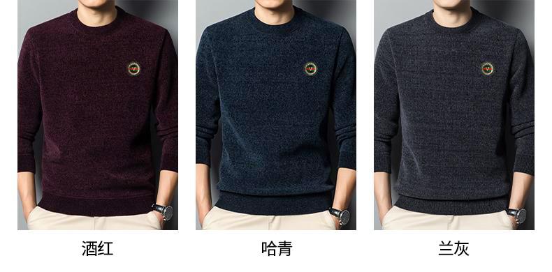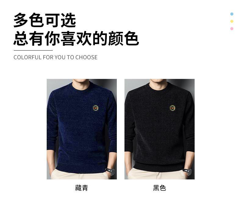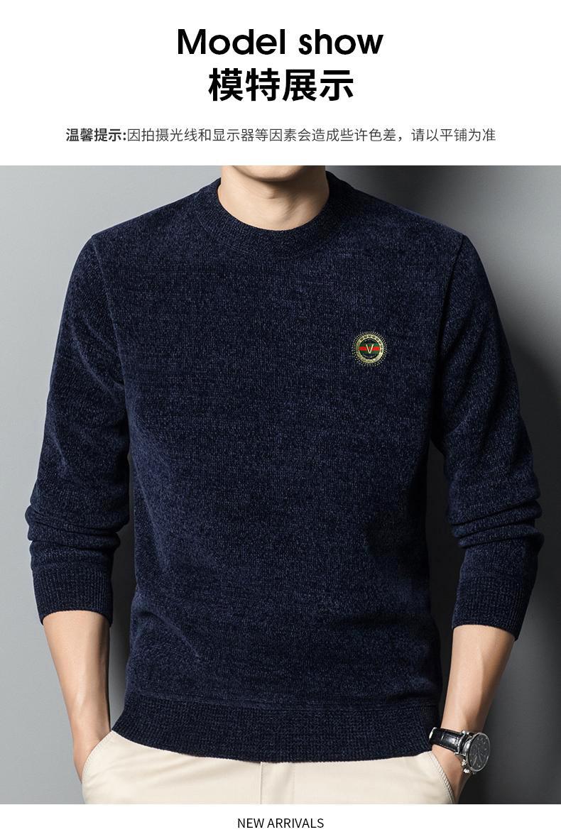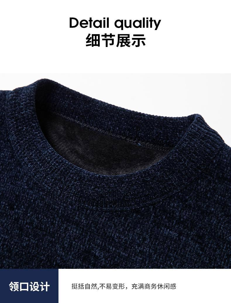 冬季新款雪尼尔男士加绒加厚百搭圆领毛衣