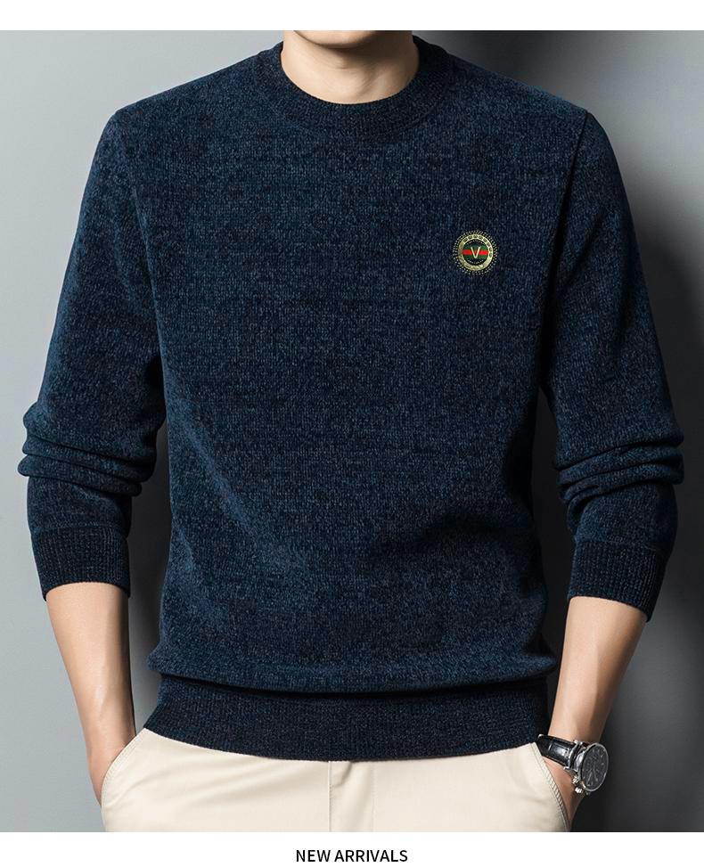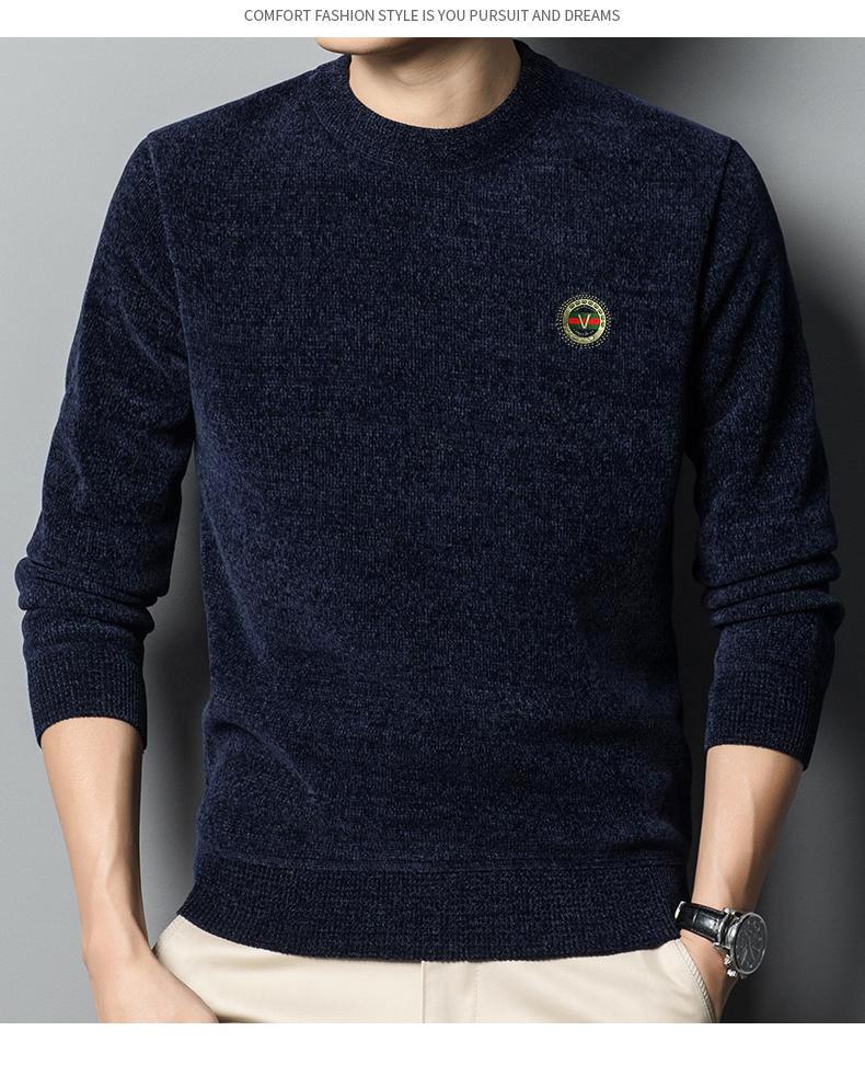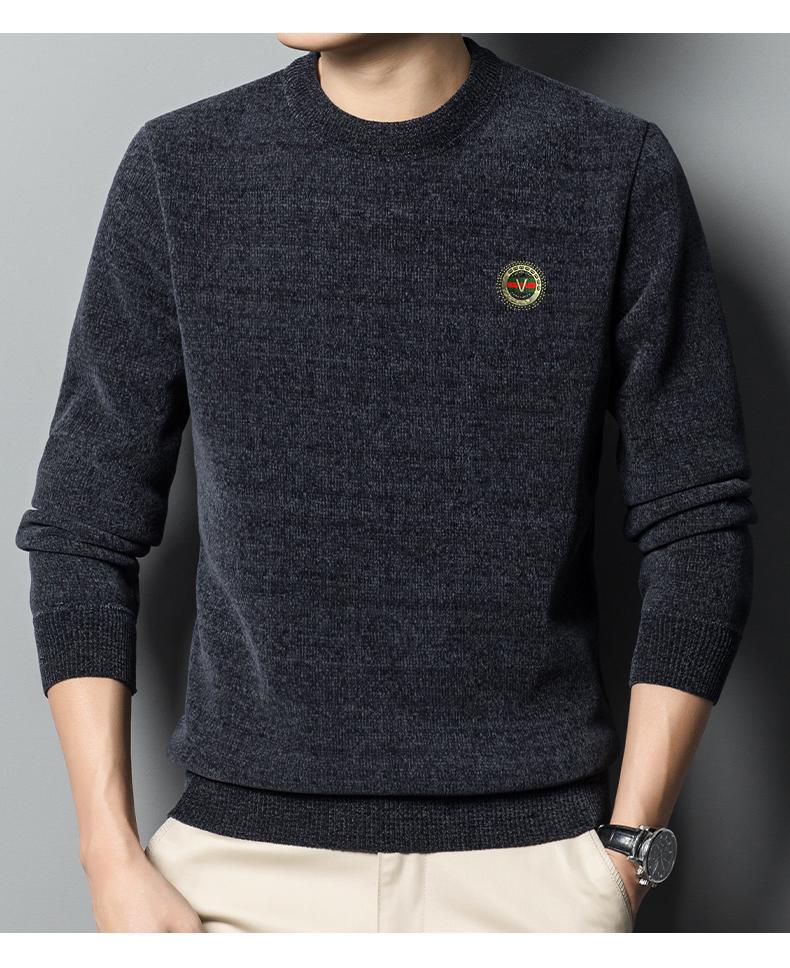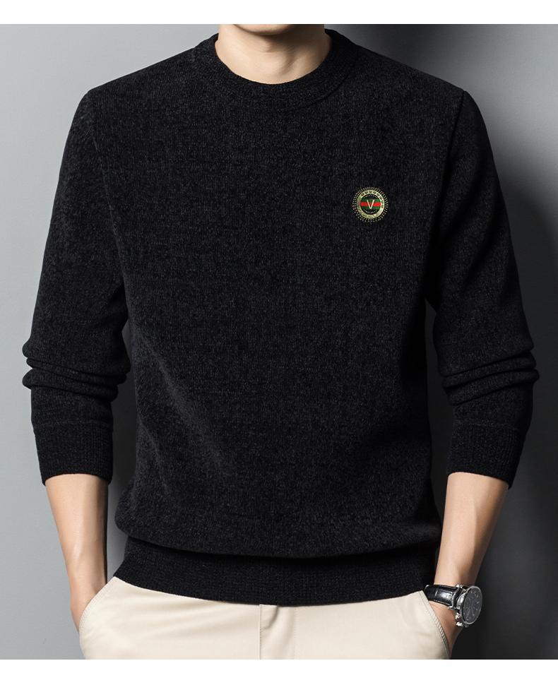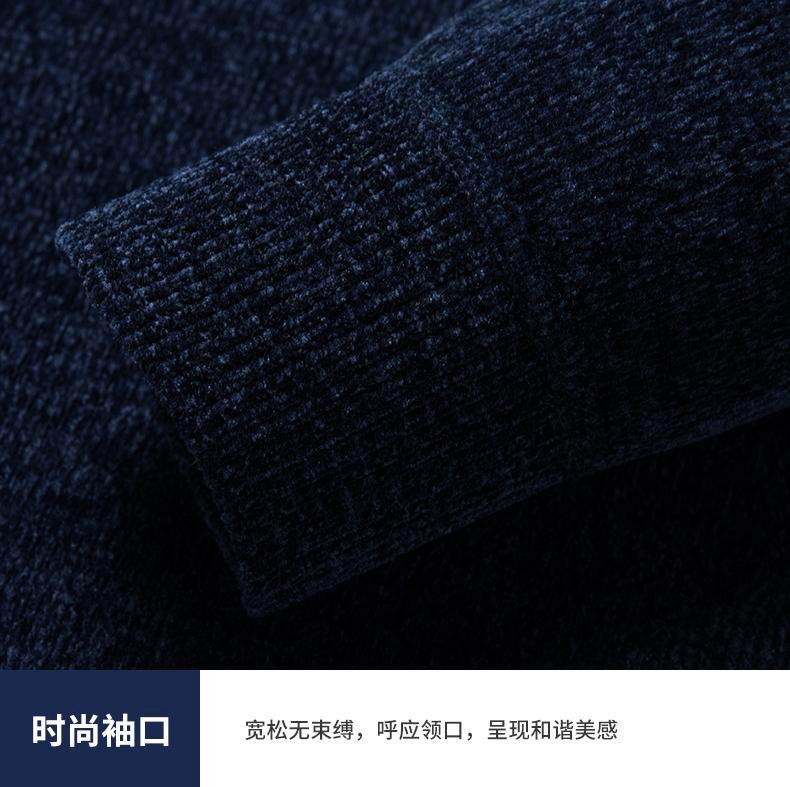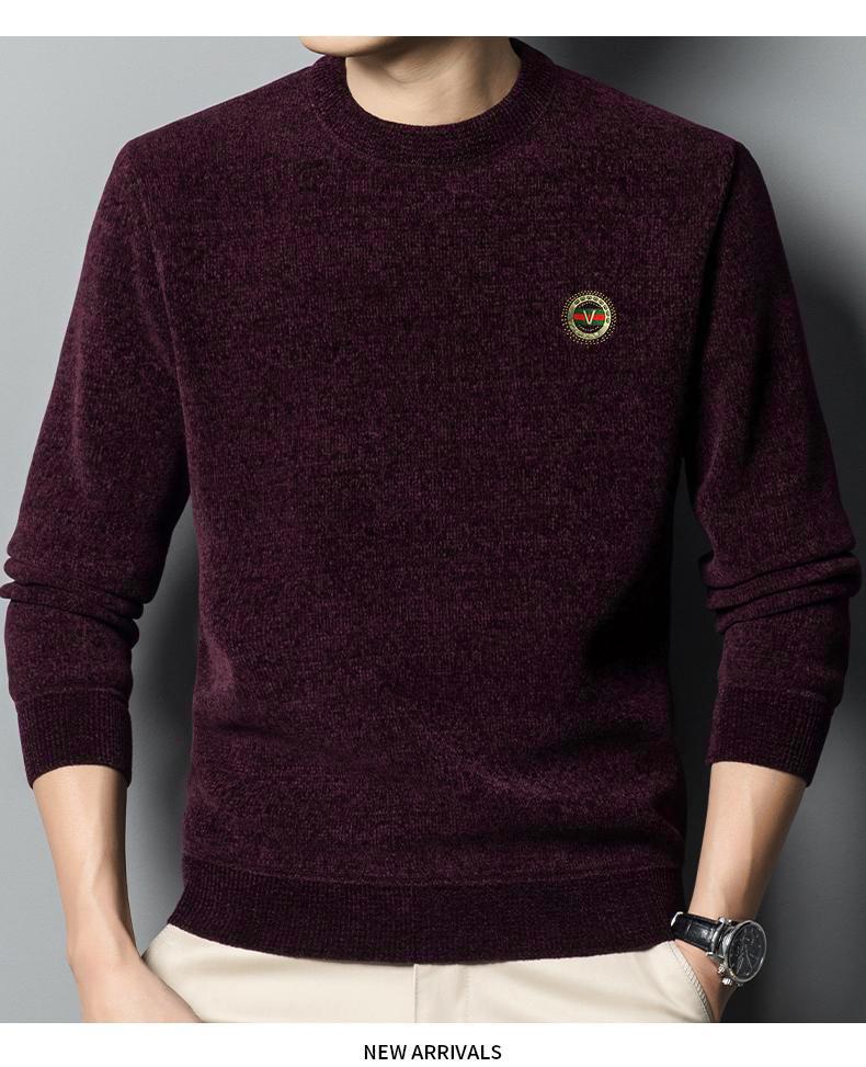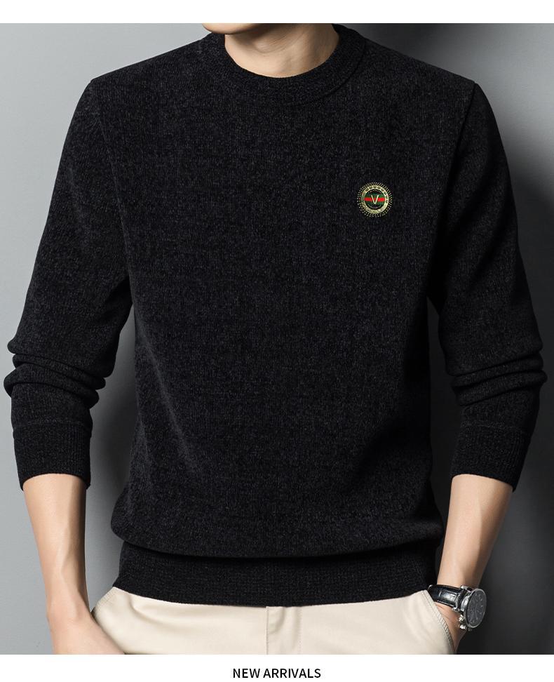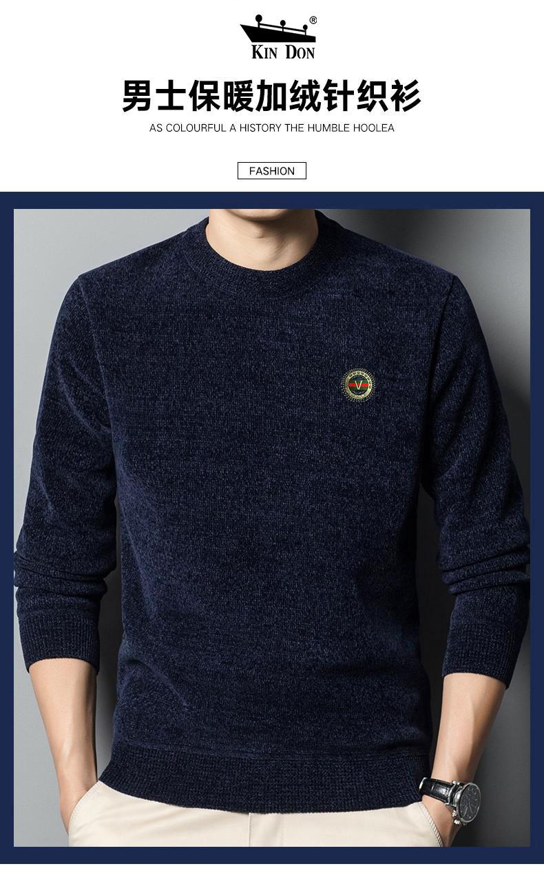 冬季新款雪尼尔男士加绒加厚百搭圆领毛衣