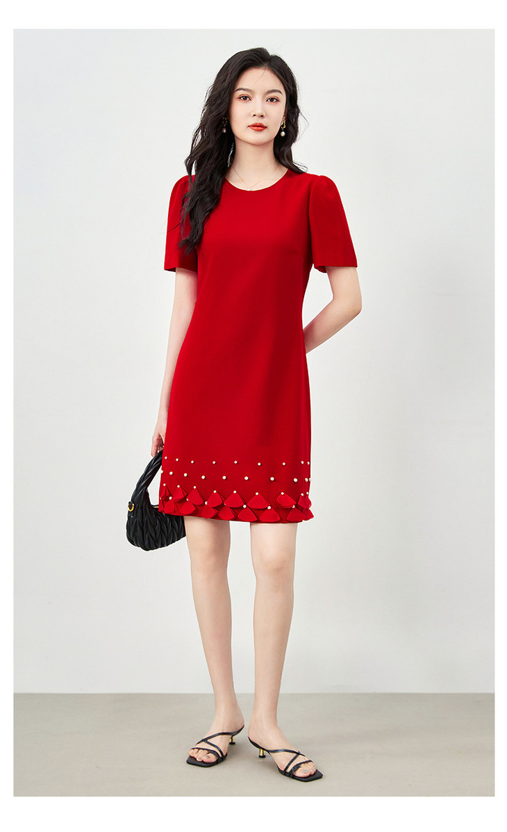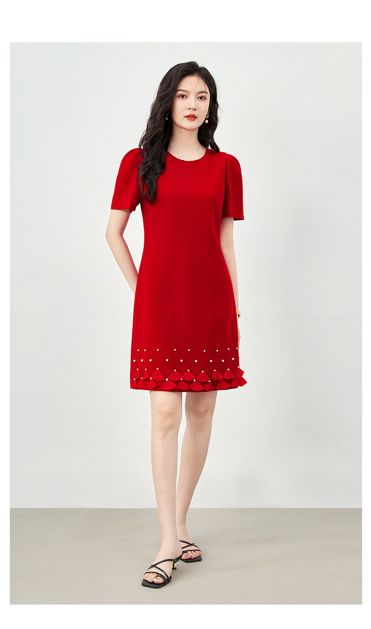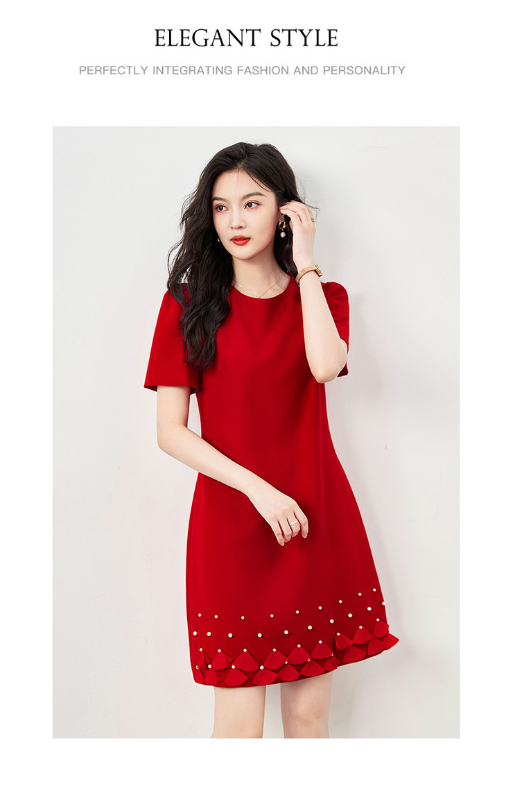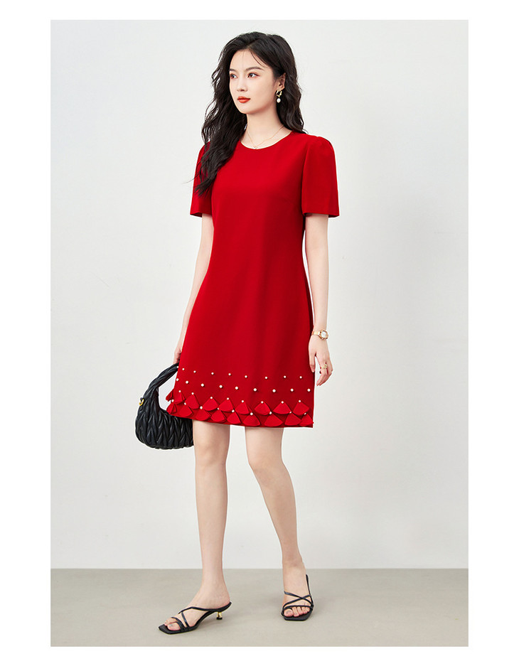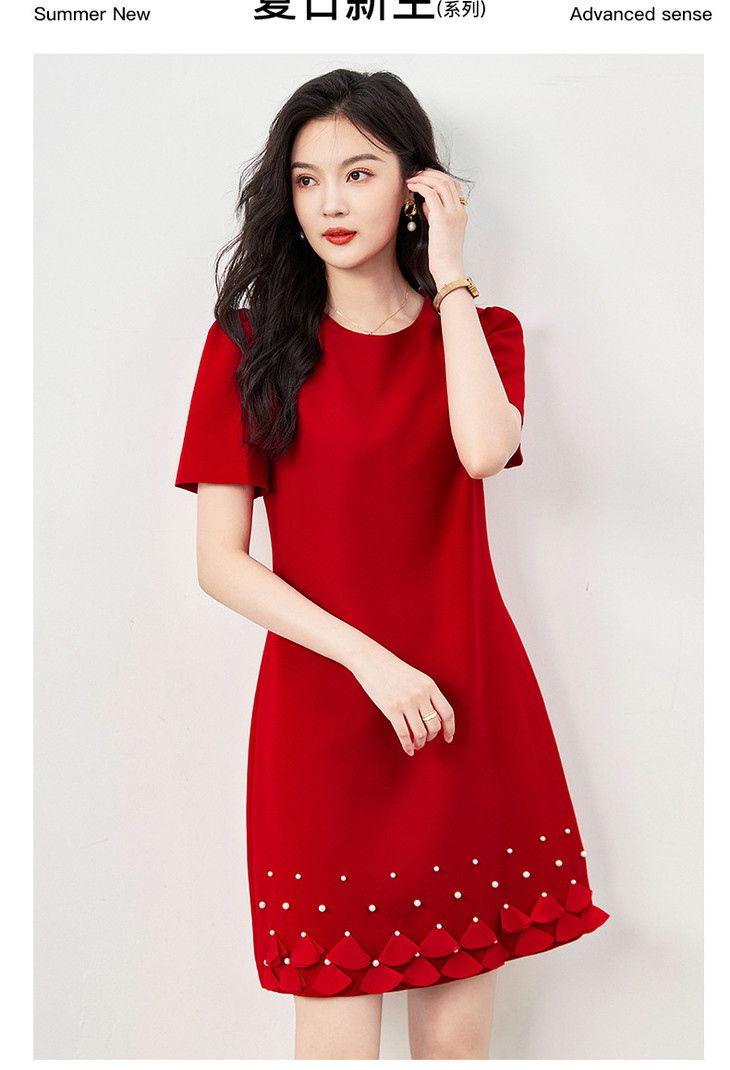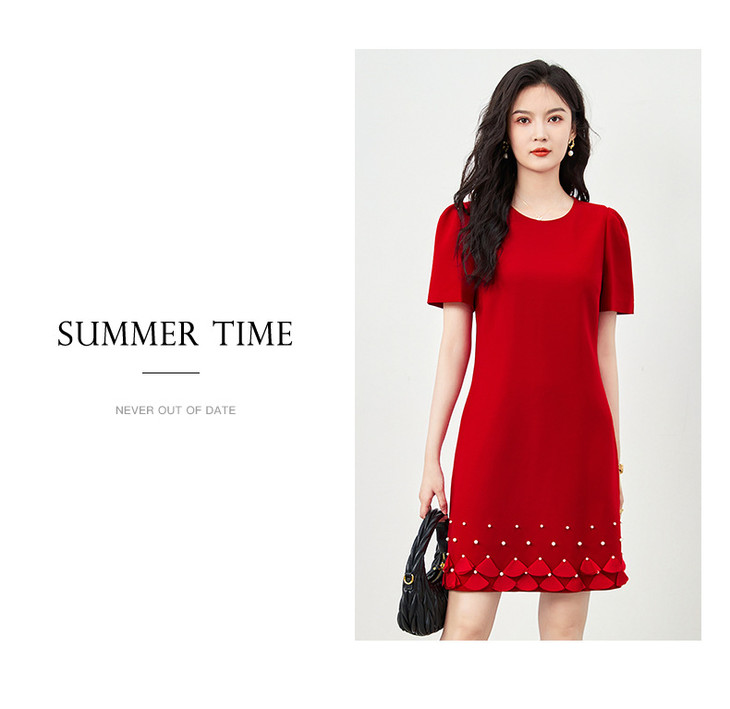 重工钉珠法式气质轻奢高级显瘦连衣裙夏新品WLZD2421507